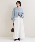 ・ロングスカートを合わせて、甘さをプラスしたスタイリングに。