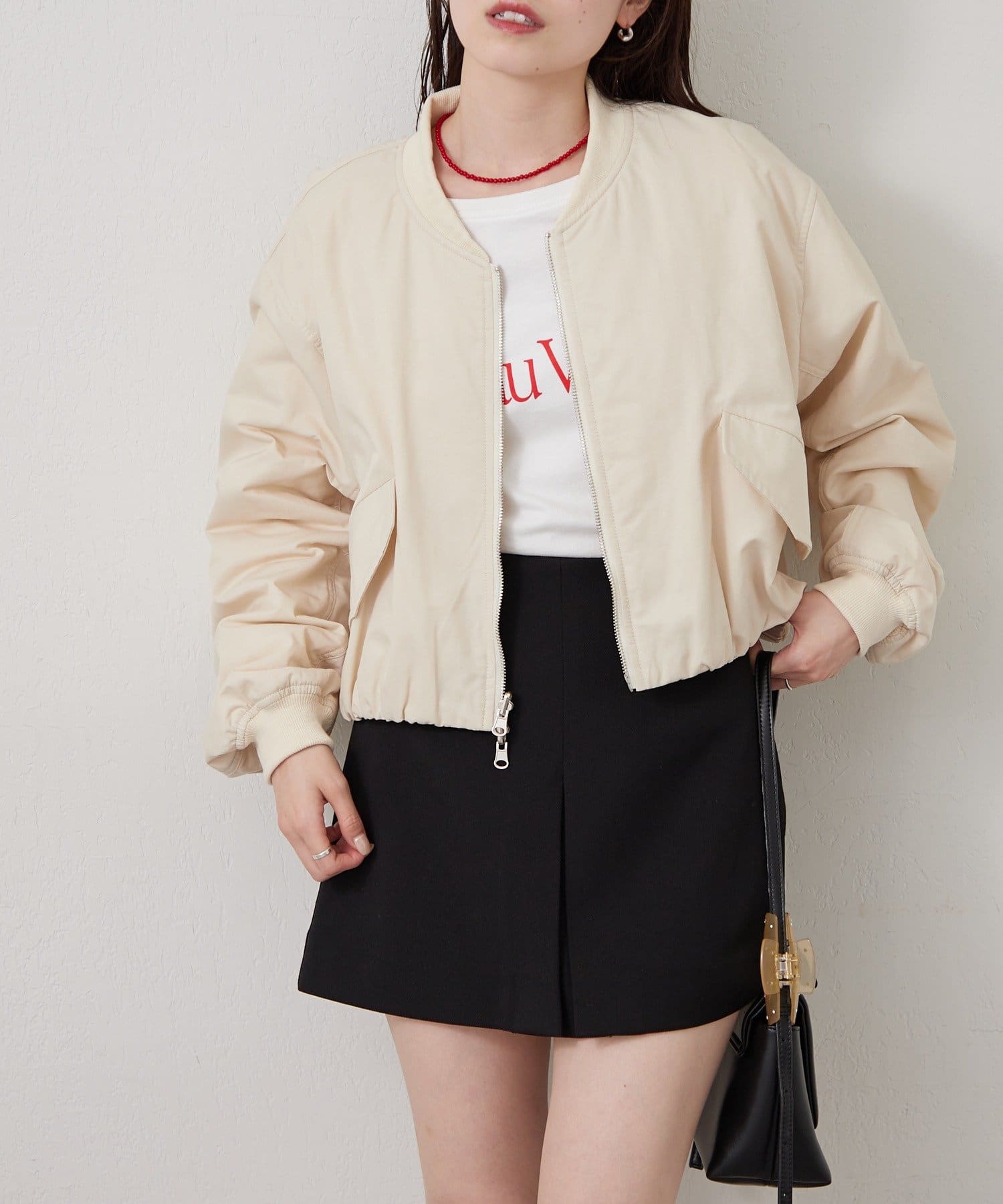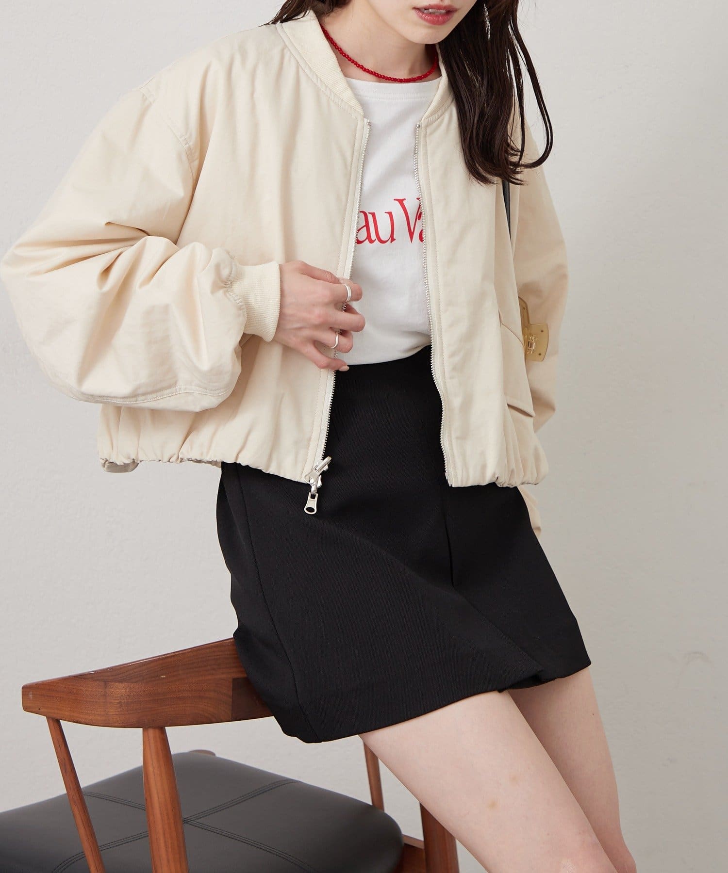 ロゴロンTを中に合わせて、ブルゾンのフロントをオープンにするのも可愛く着られました。