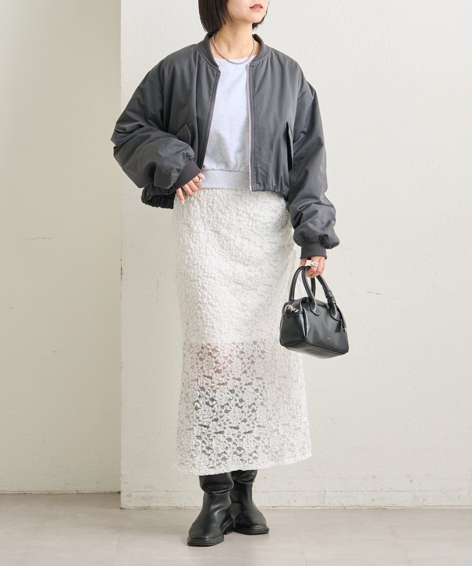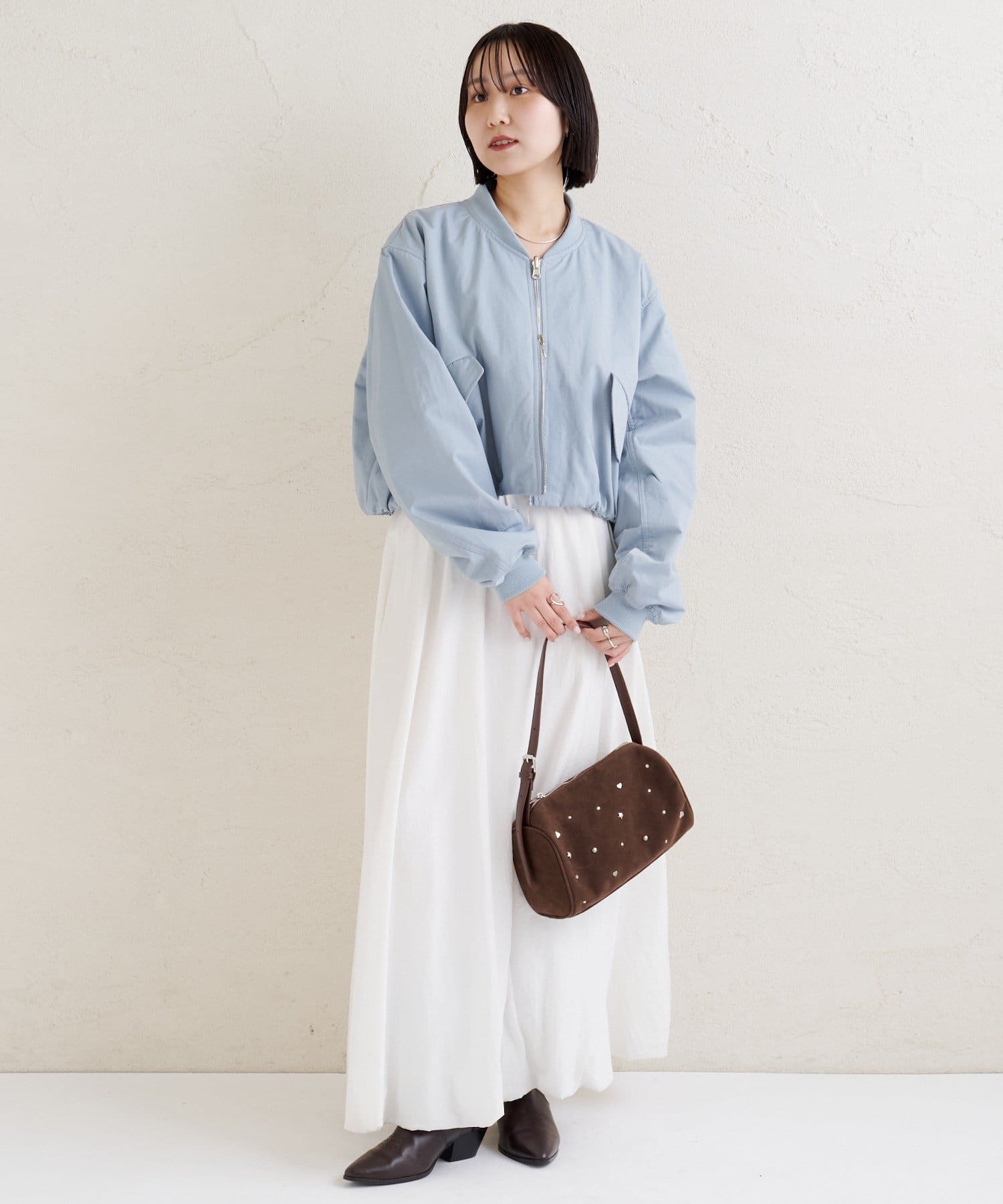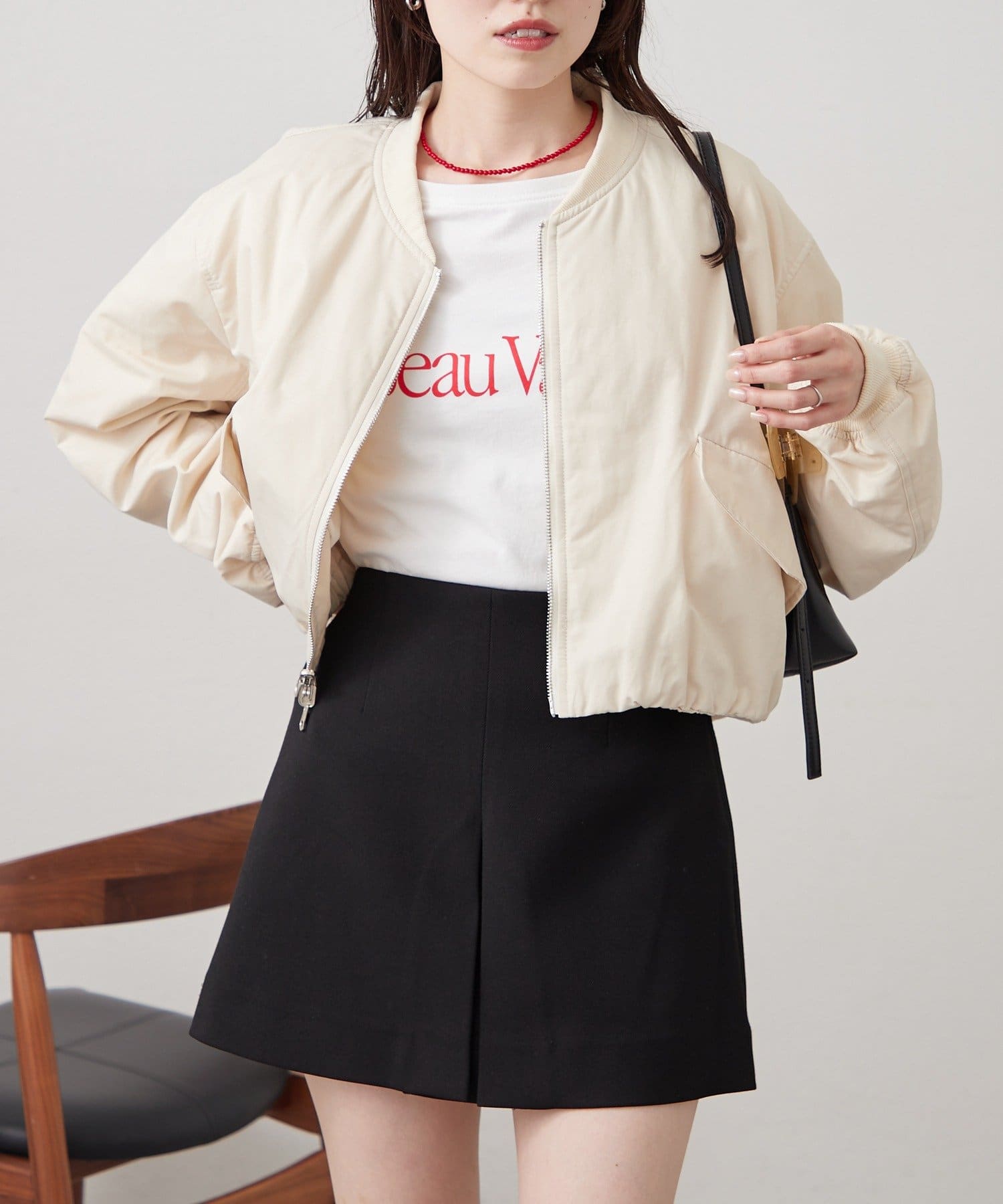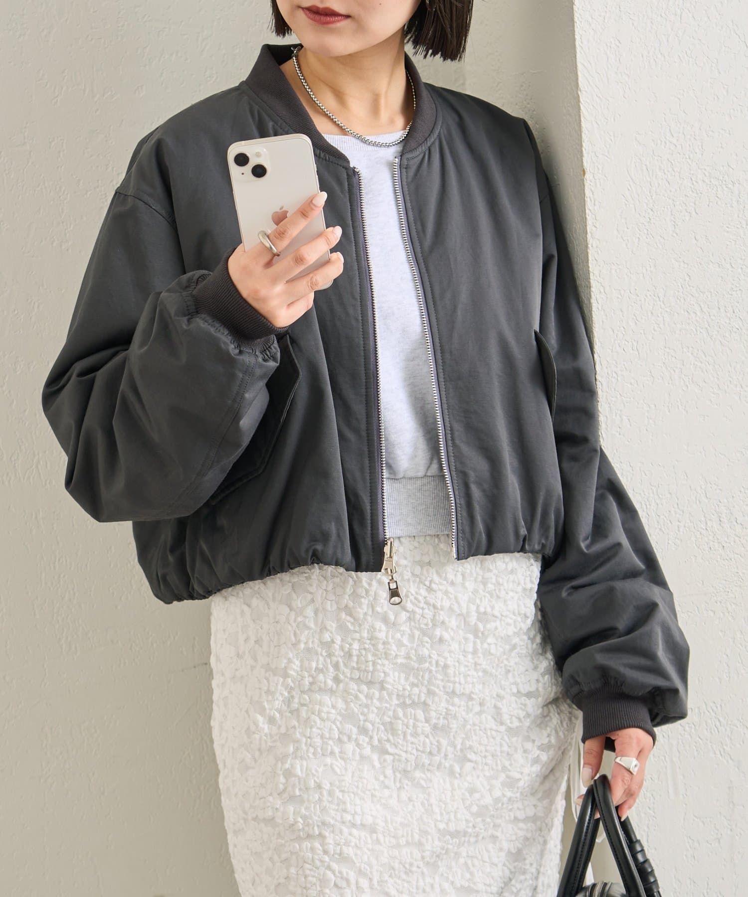 ・ショート丈と丸みのあるシルエットが、羽織るだけでバランスよく決まるデザイン。