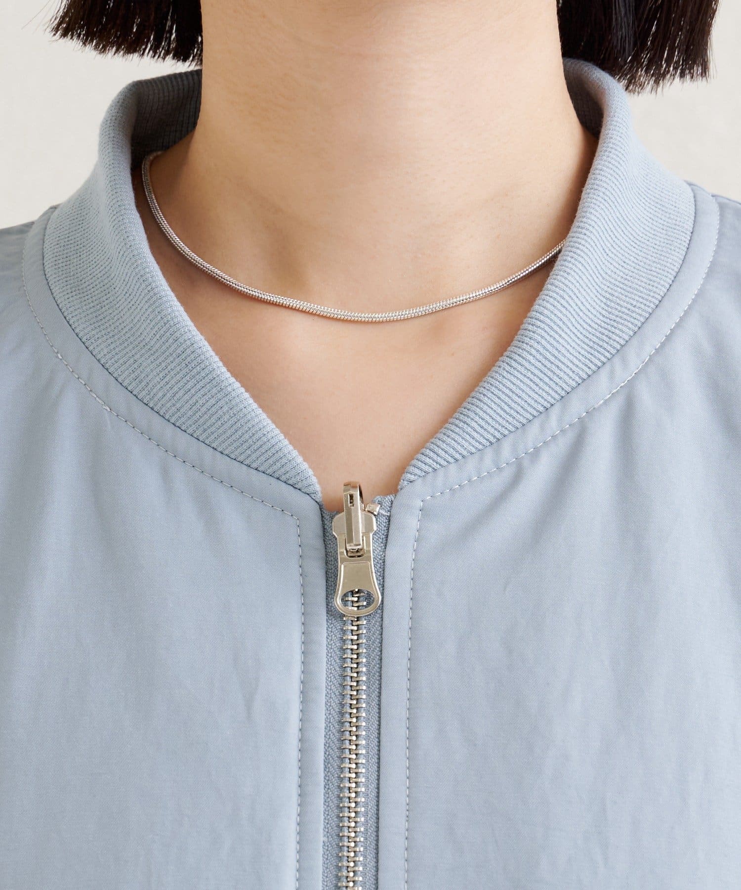 ダブルジップがトレンド感あり、上下の開きを調整すると抜け感をプラスすることができました。