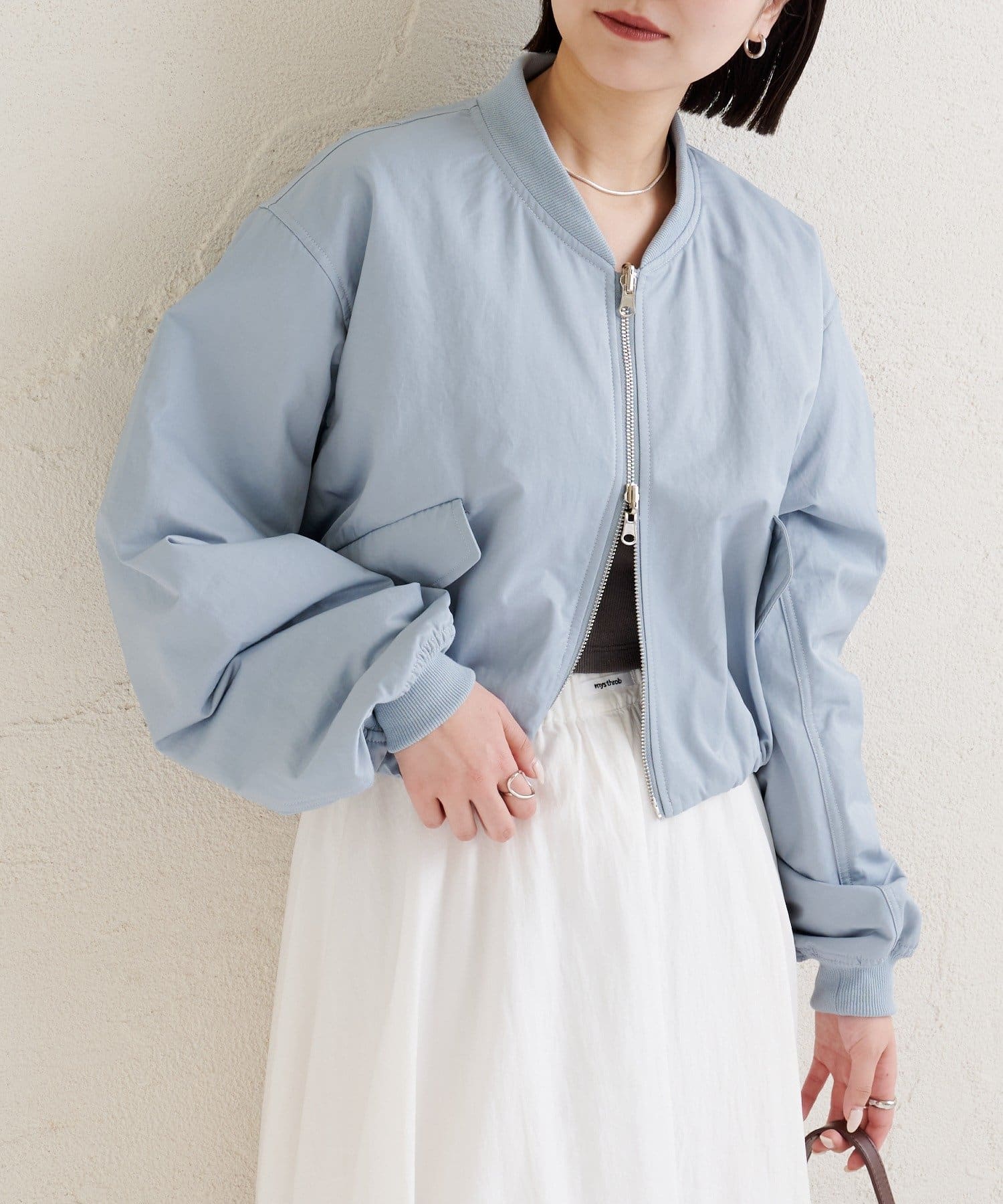 • mystic(ミスティック) サテンショートブルゾン