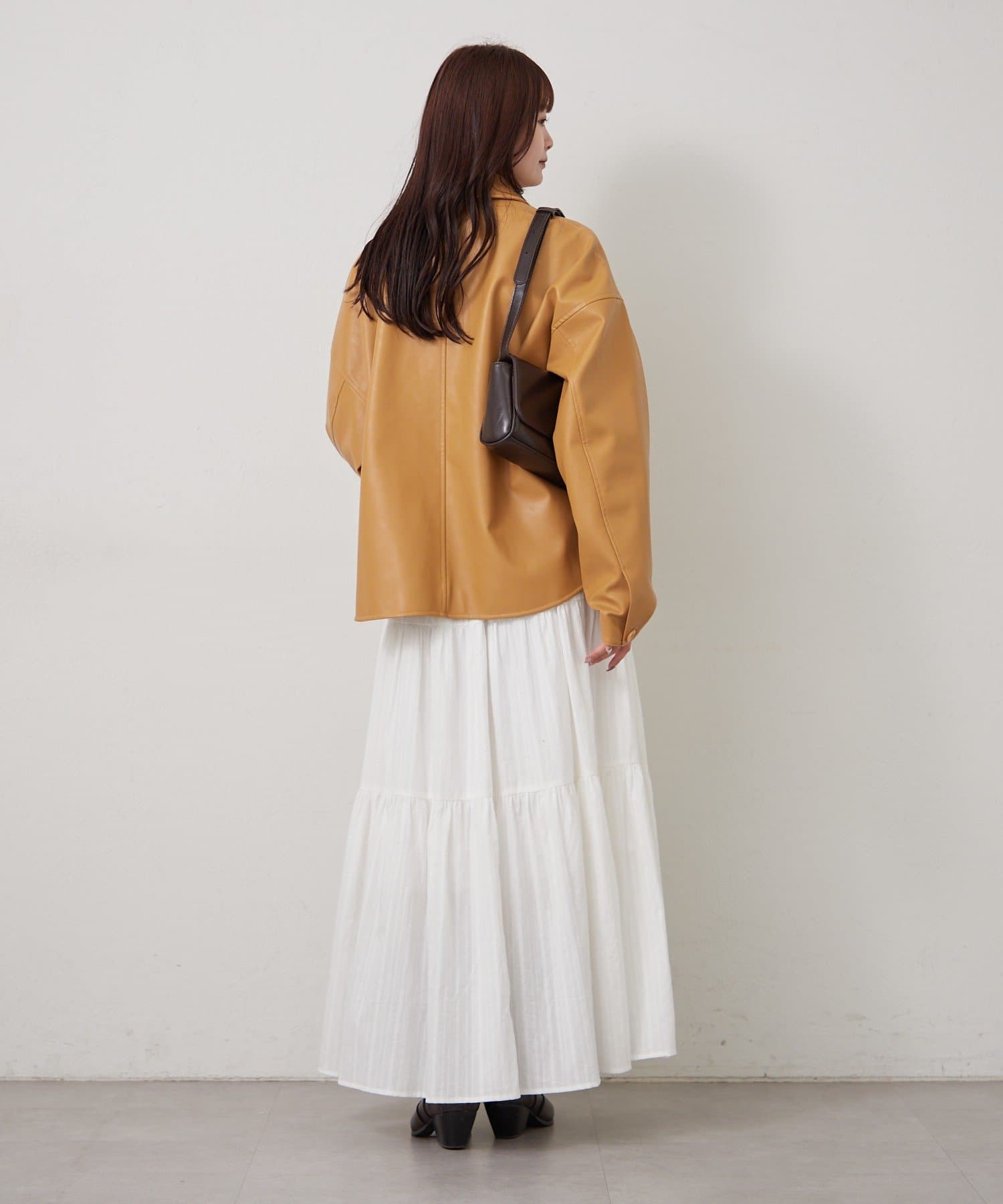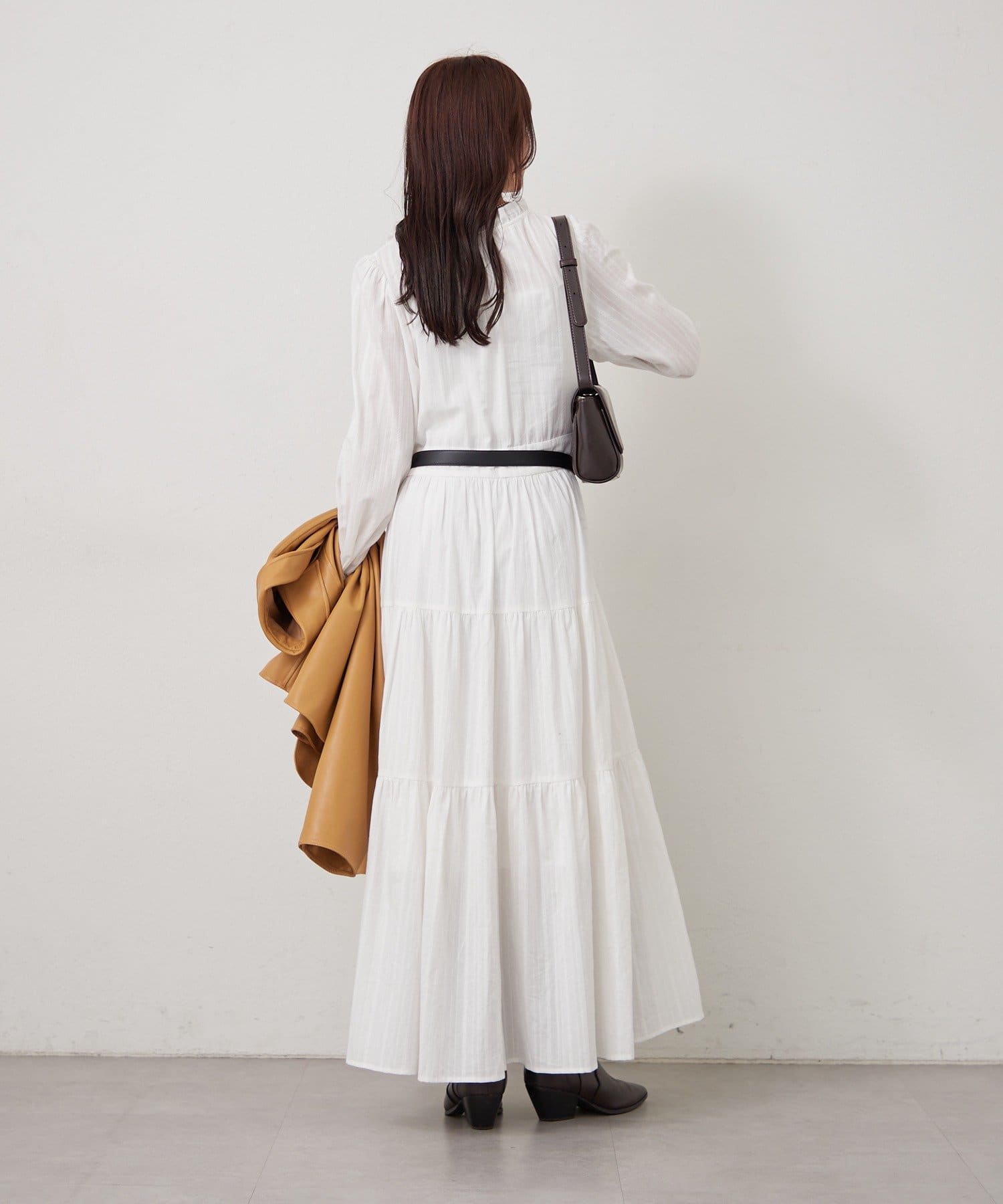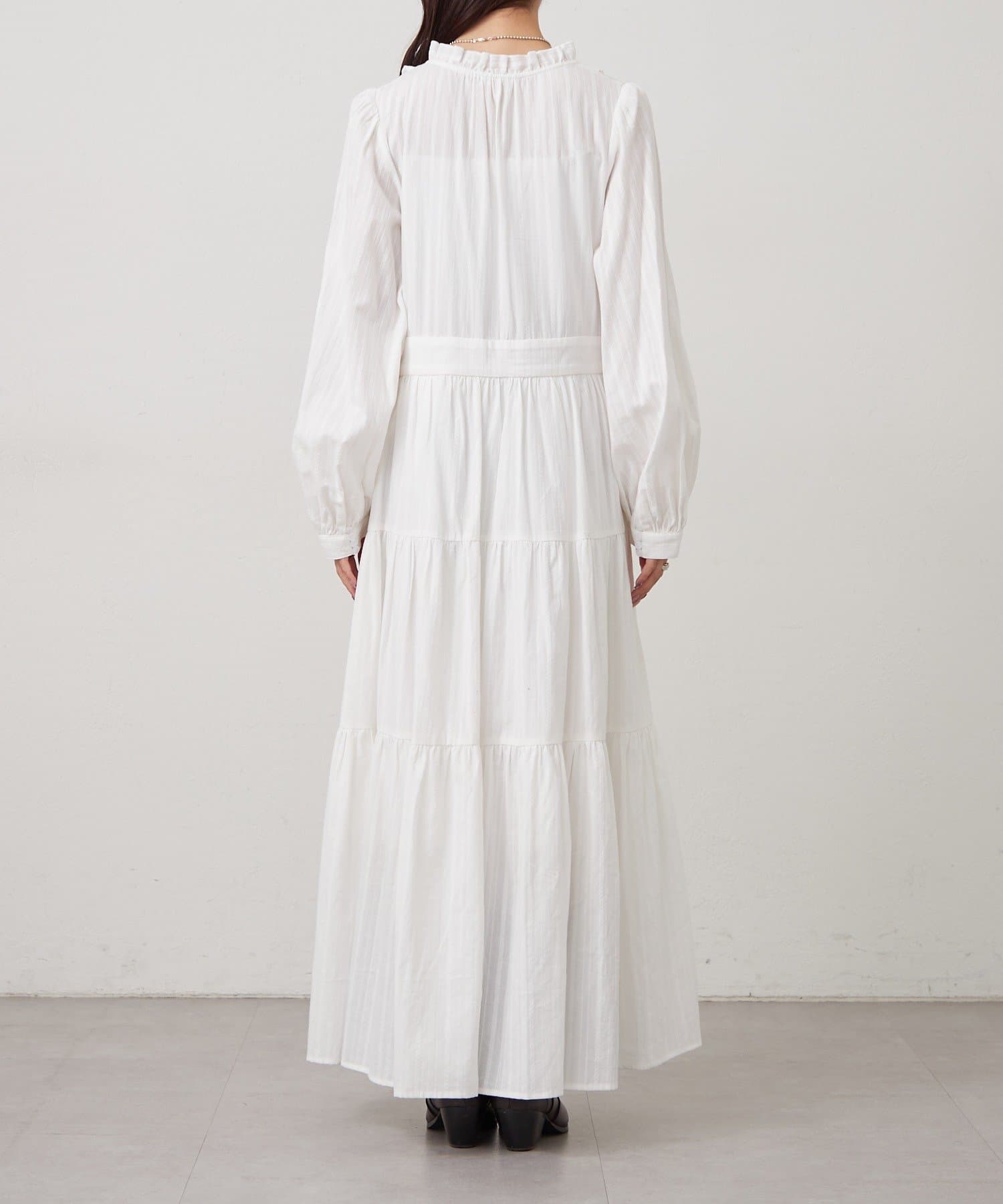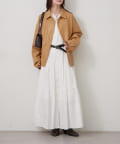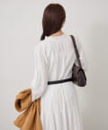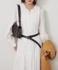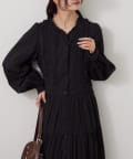 ・首元やす論と部分にあしらわれたフリルが柔らかいニュアンスをプラスし、大人の可愛さを演習。