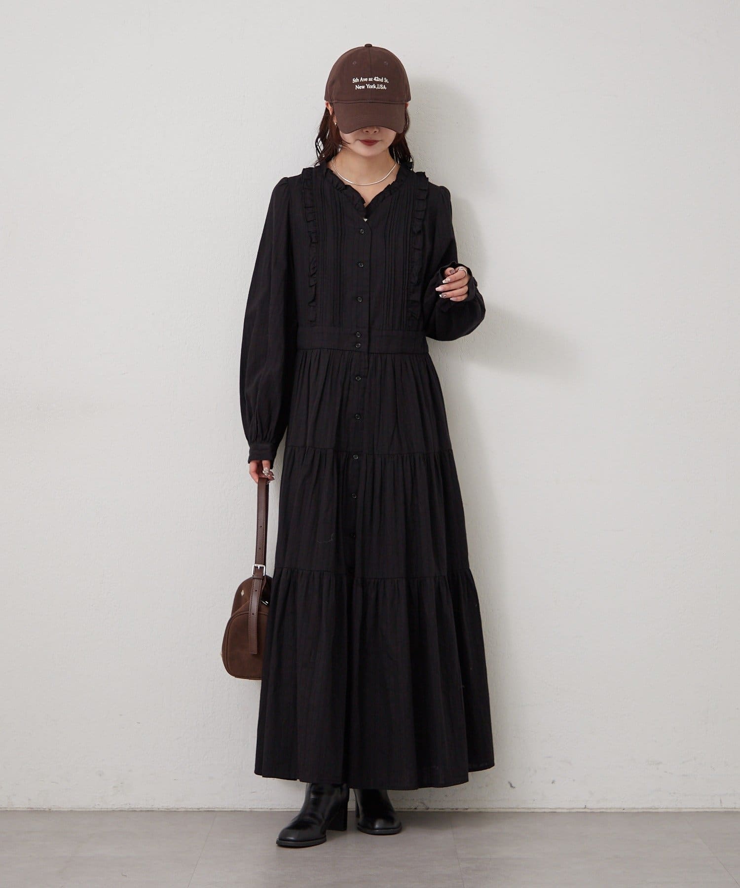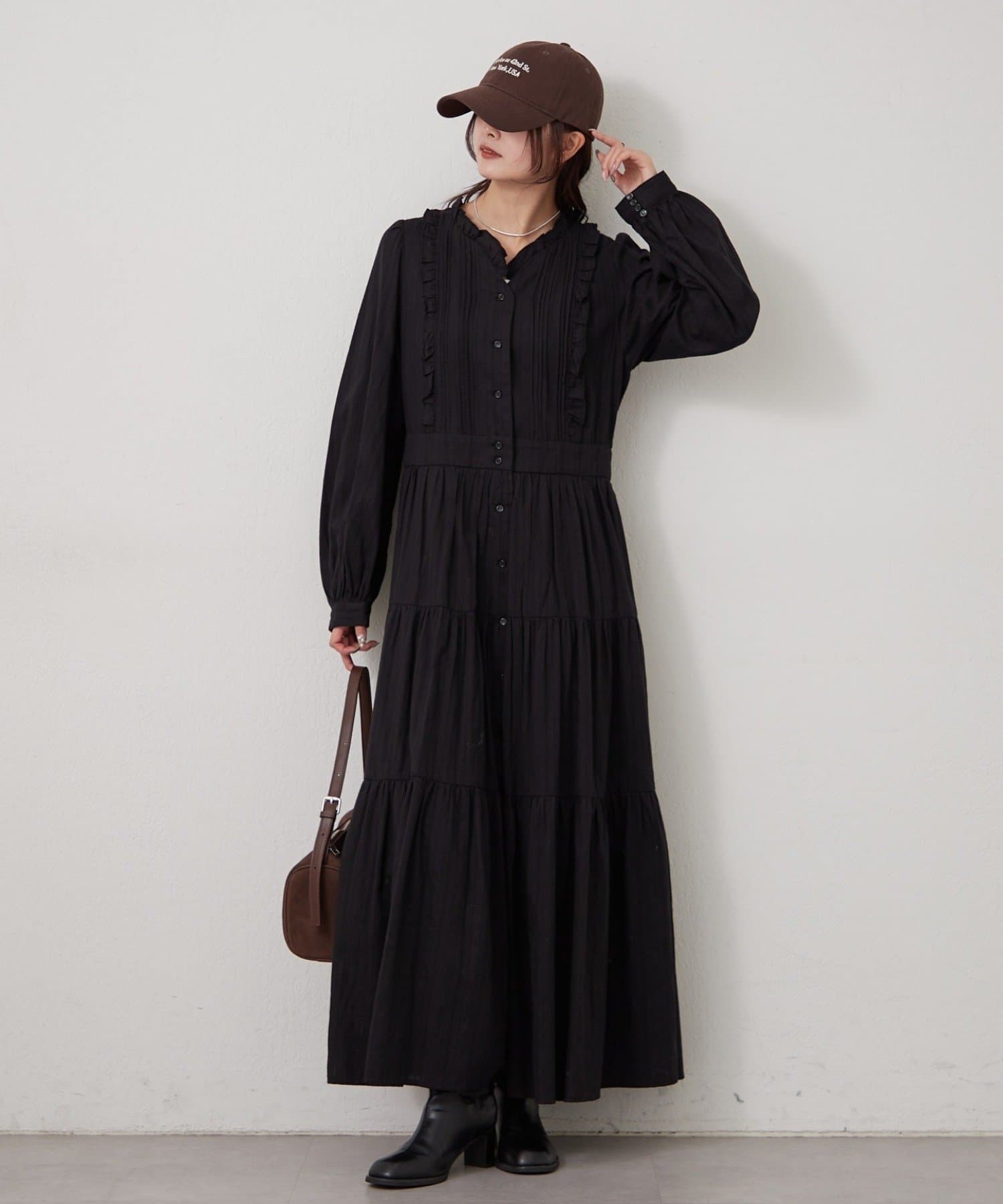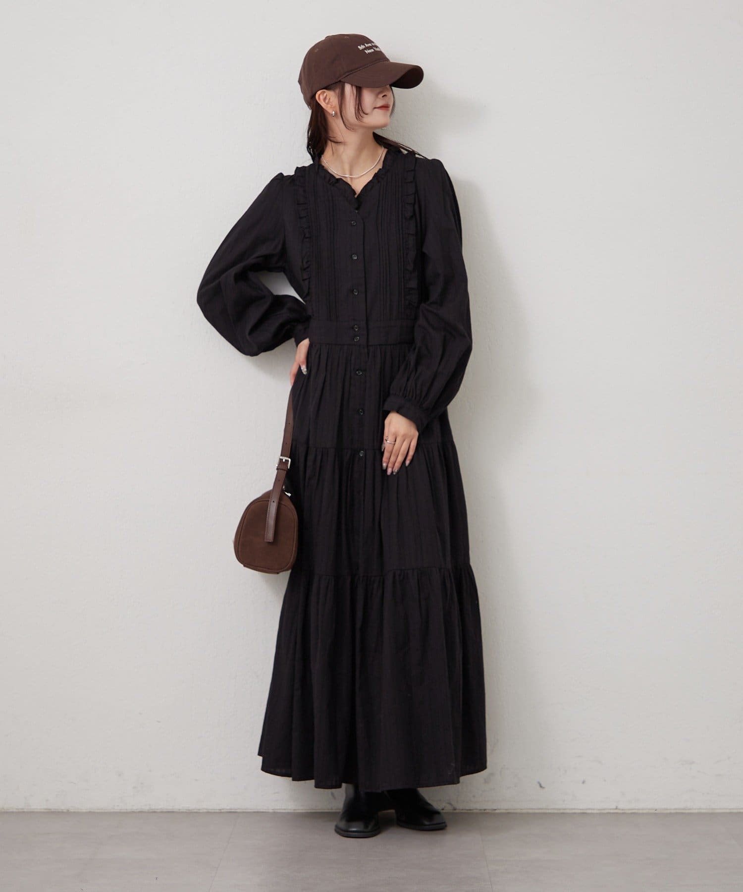ゆったりシルエットとフリルで大人可愛いワンピース