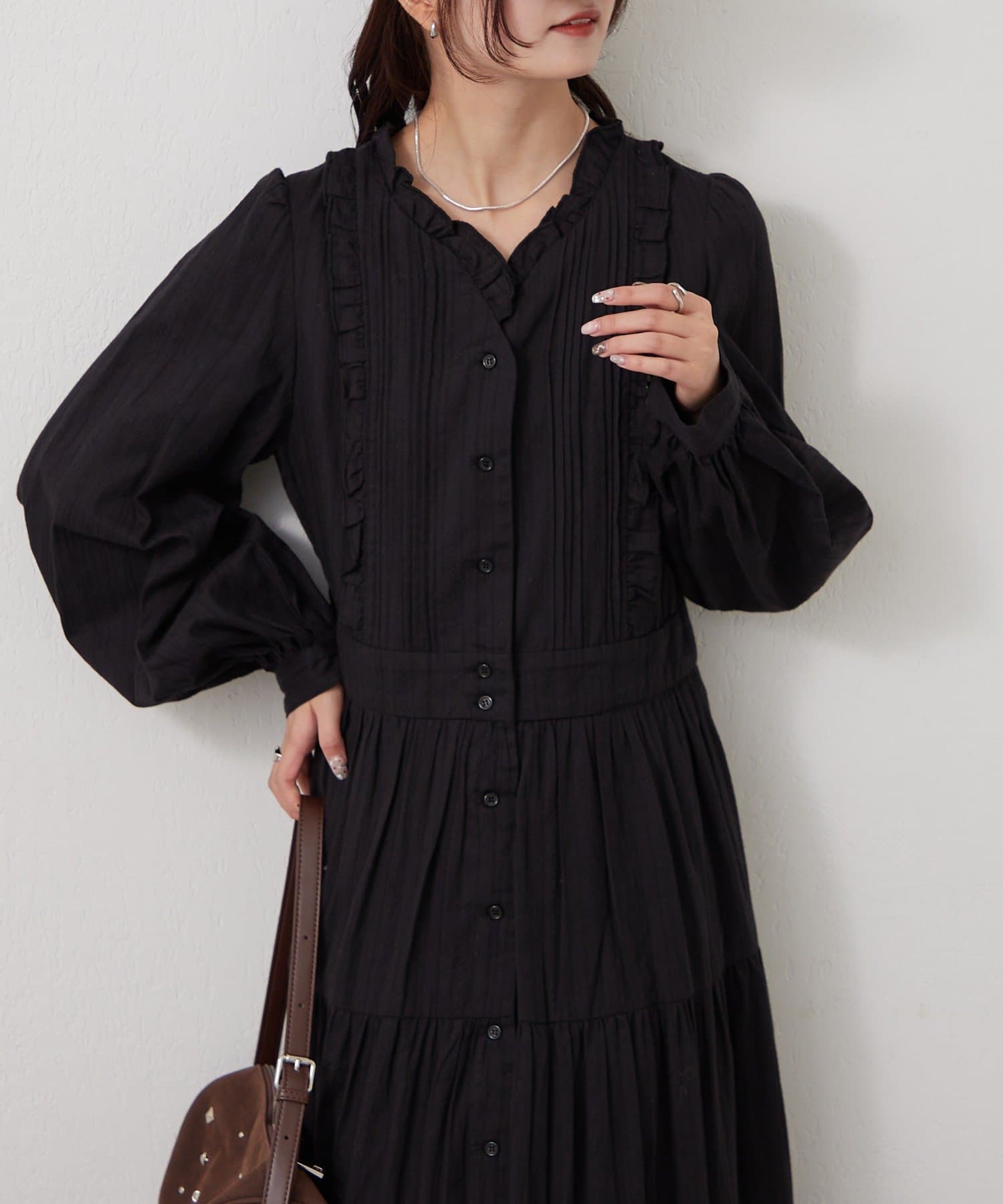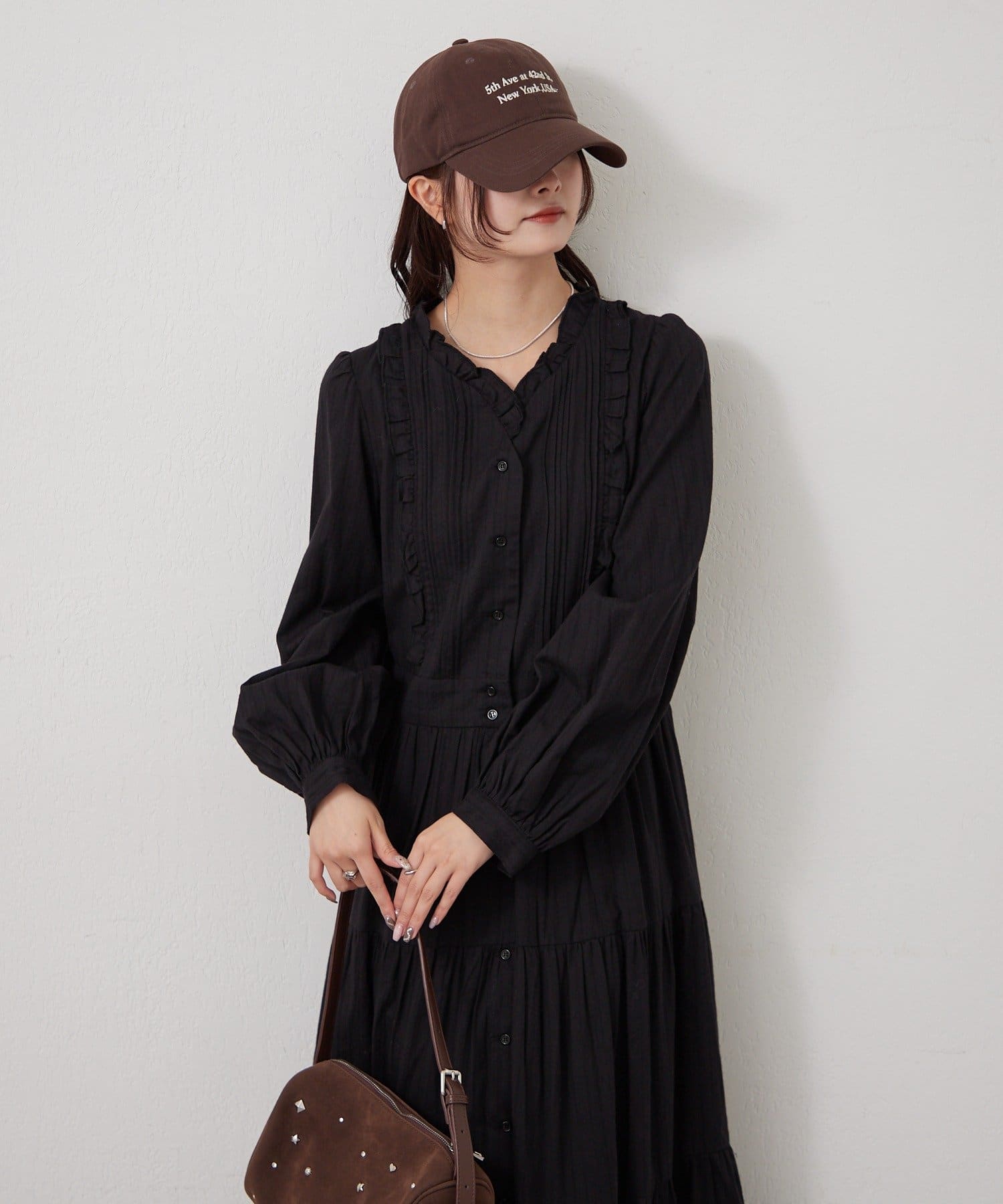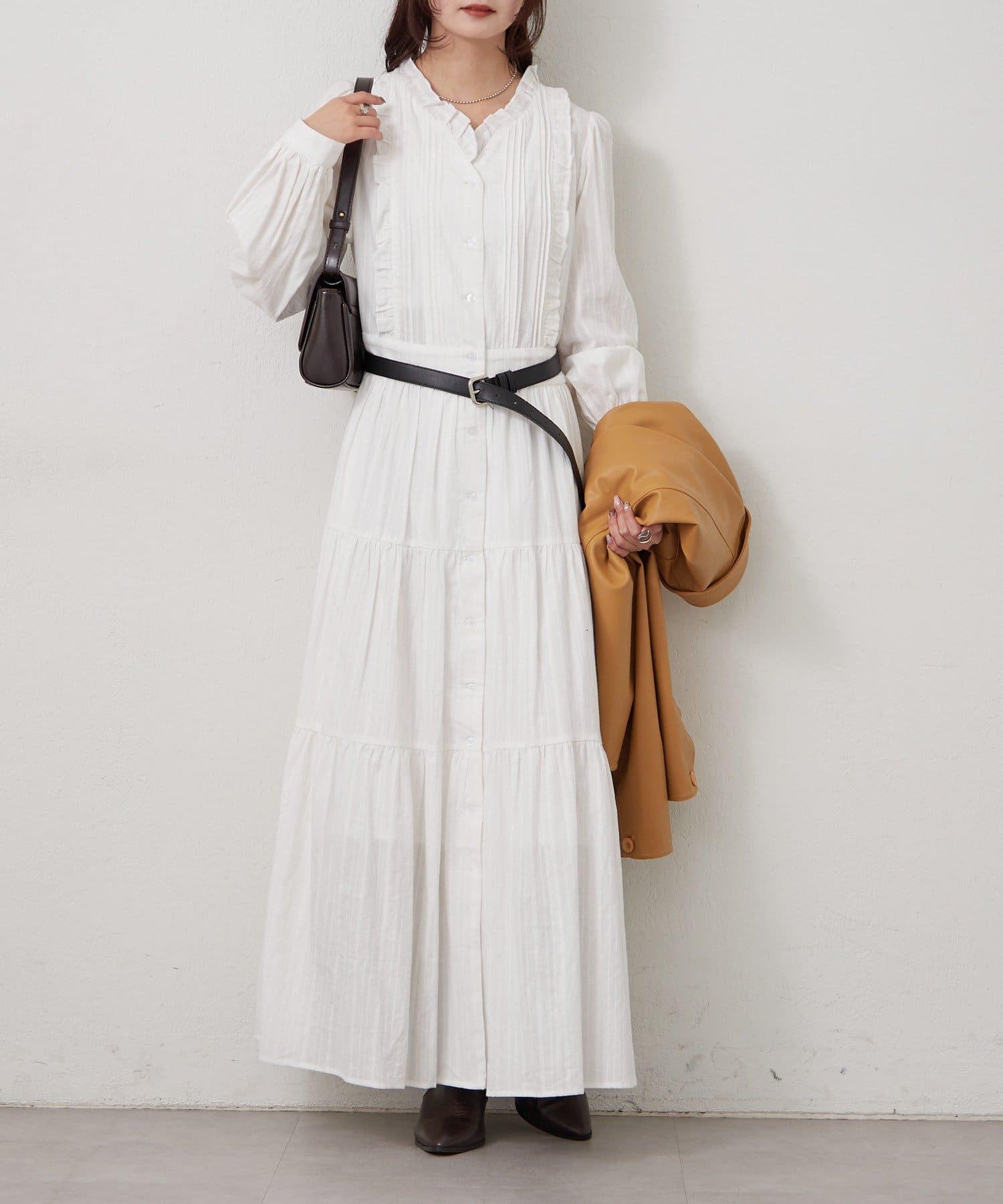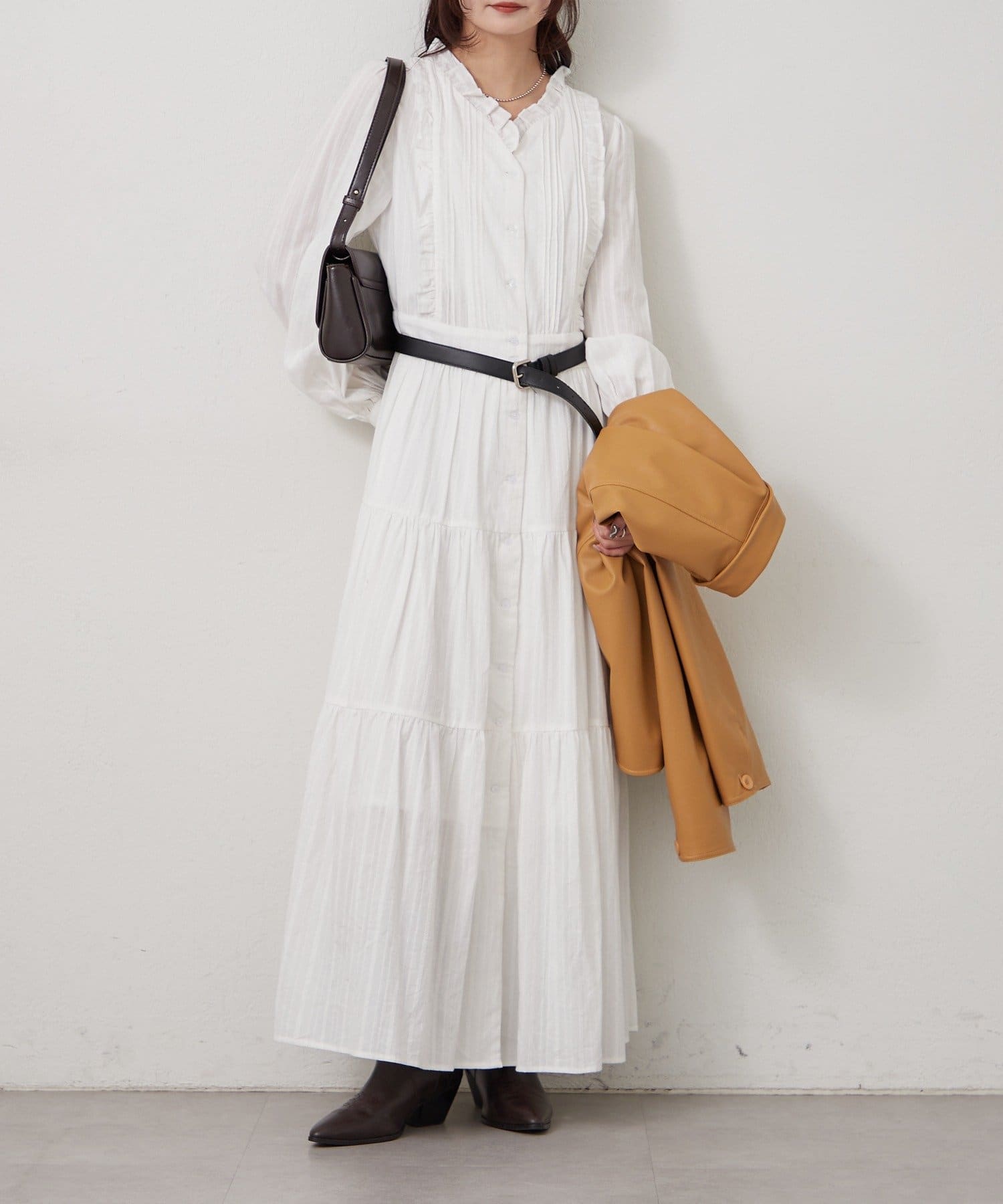 ゆったりシルエットとフリルで大人可愛いワンピース