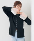 袖チュール付きリブカーディガン