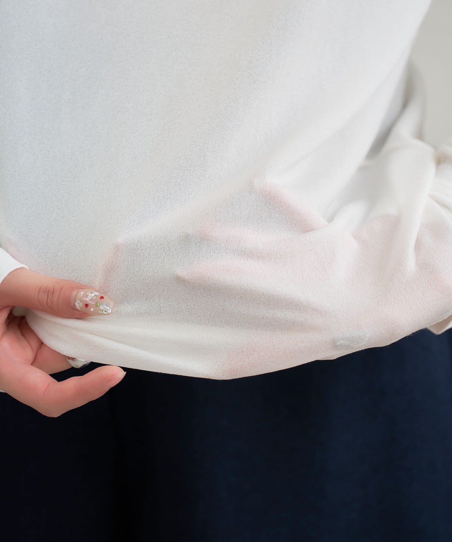 ・透け感のある素材なので、カジュアルになりすぎず、抜け感のあるスタイリングが叶います。