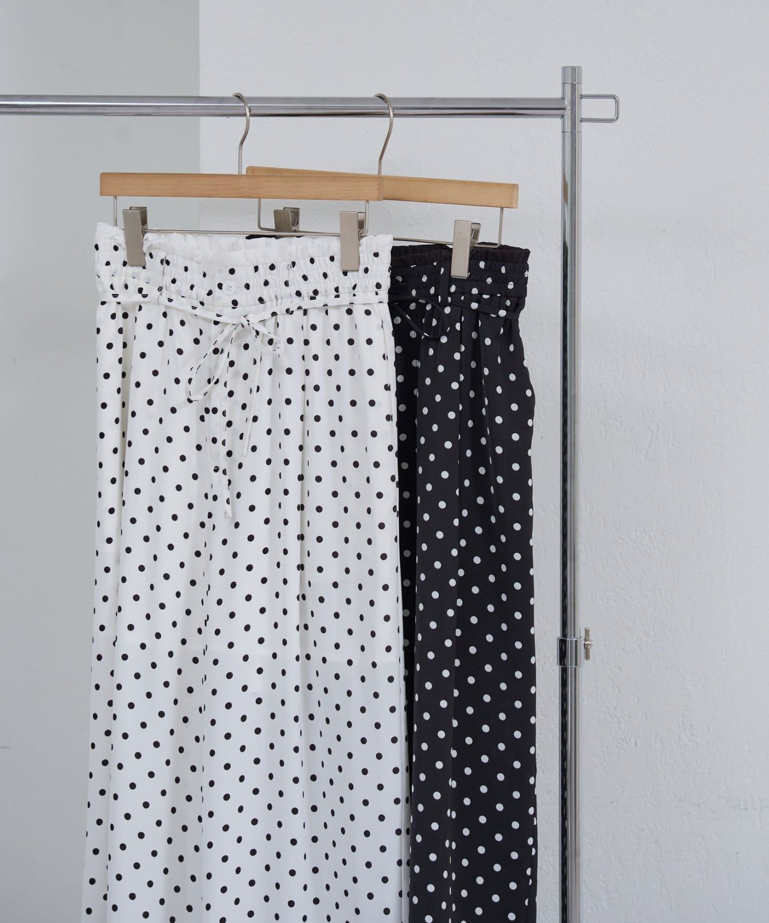 ドット柄がスタイリングの主役になるWベルトパンツ