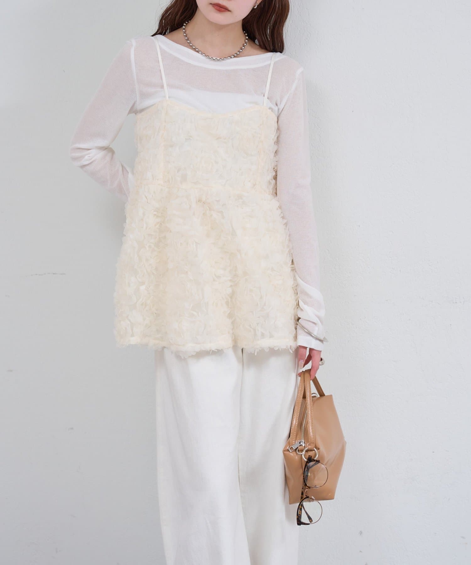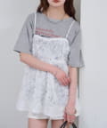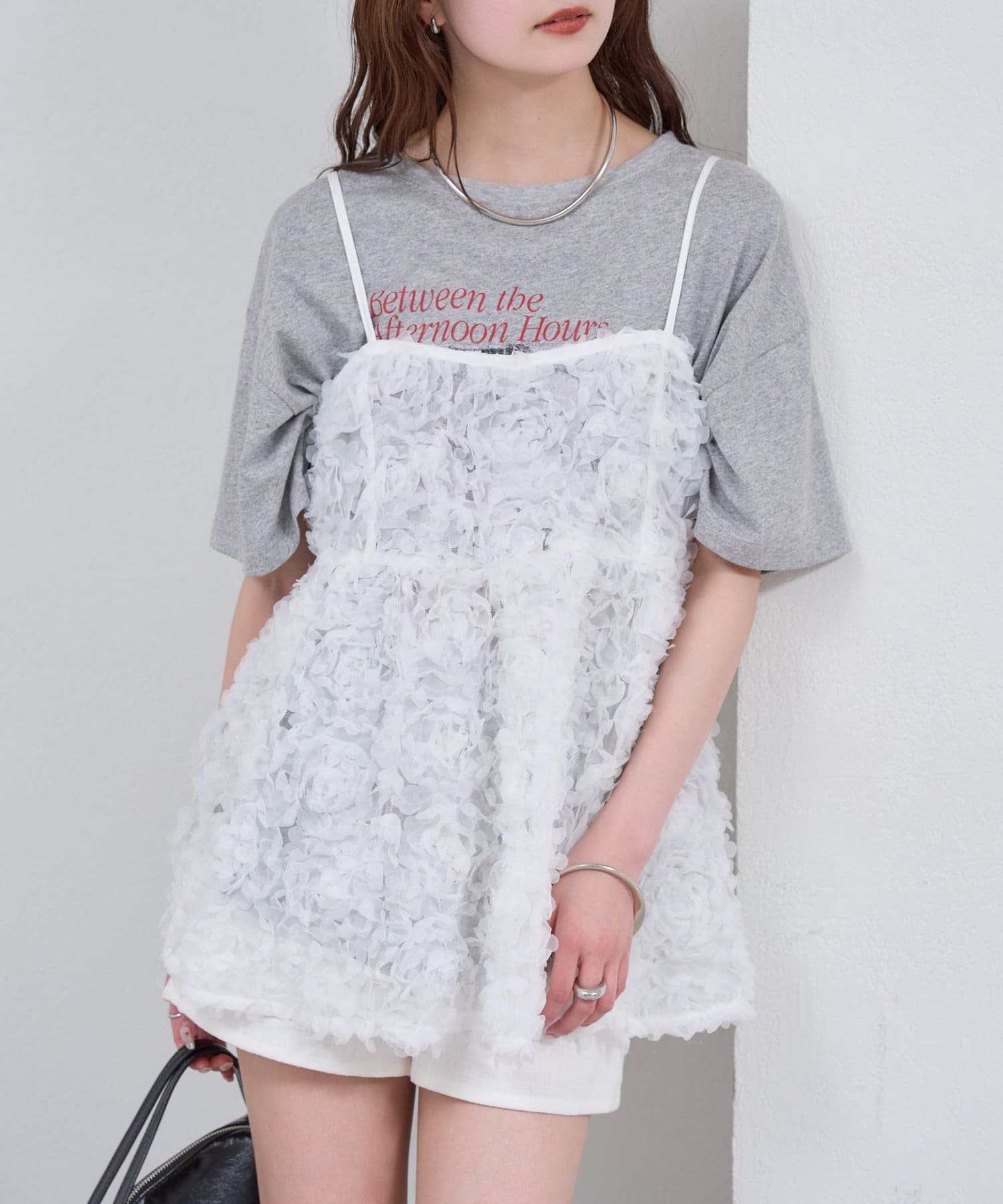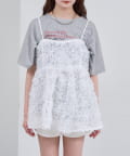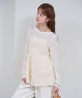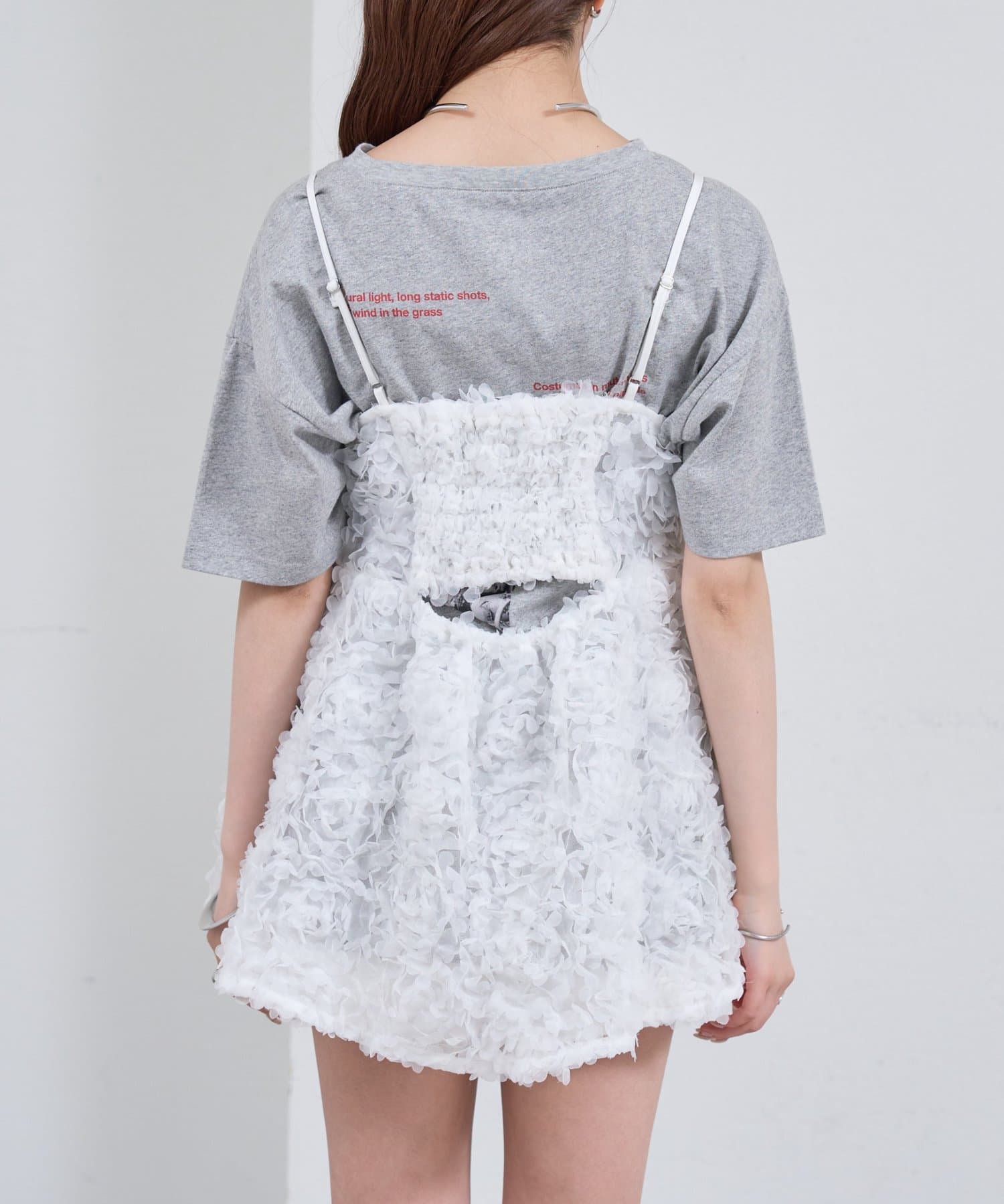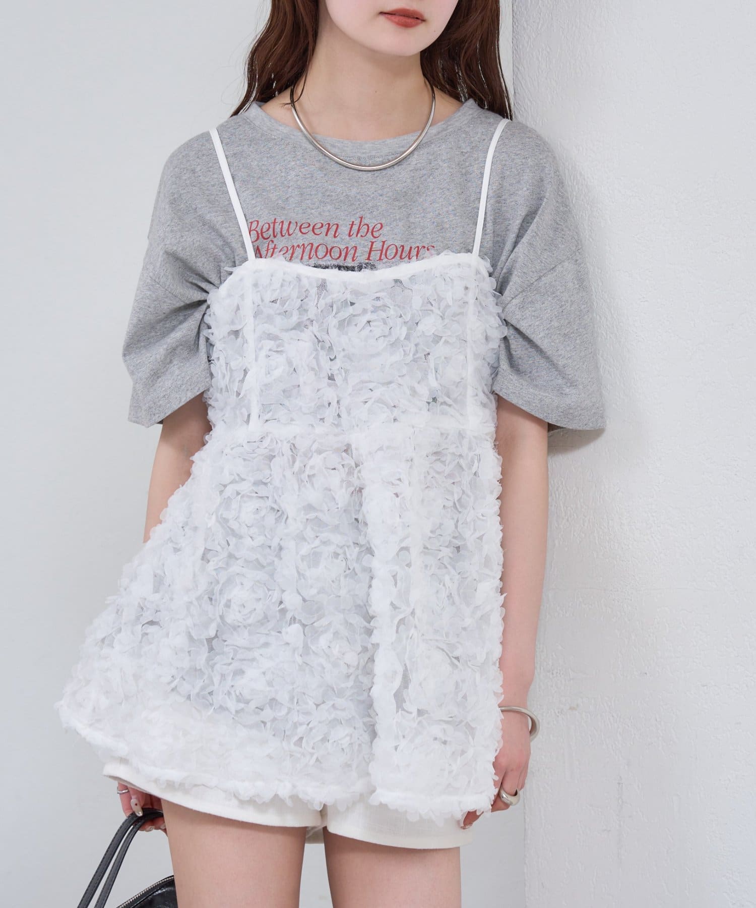 ・立体感のあるフラワーモチーフのチュール素材が目を惹くキャミチュニック。