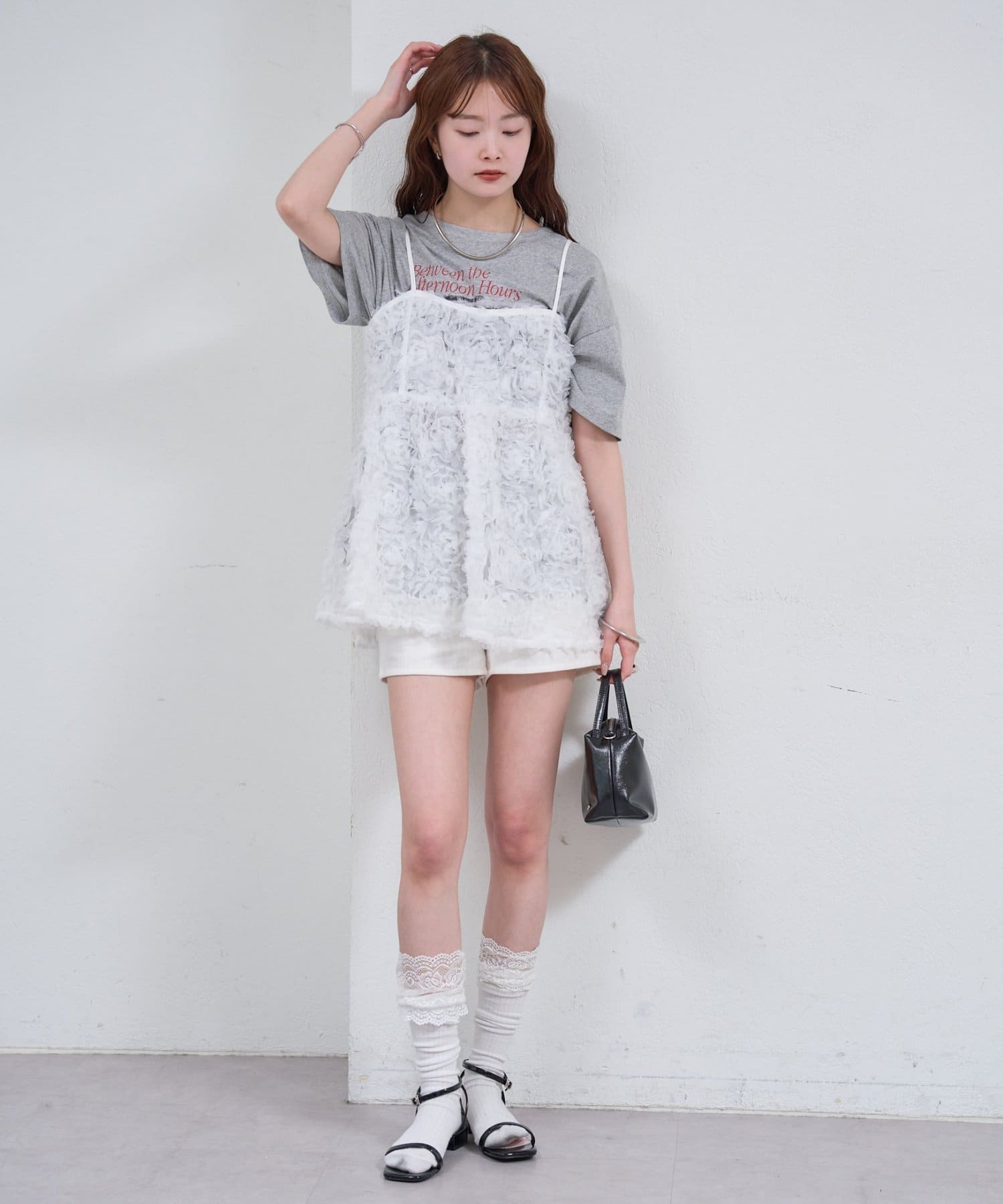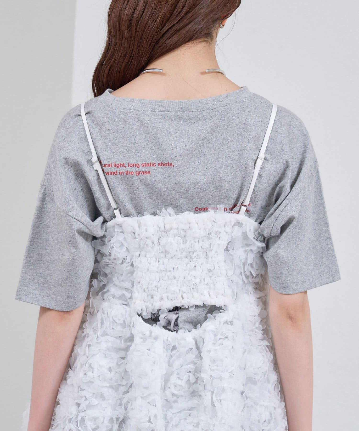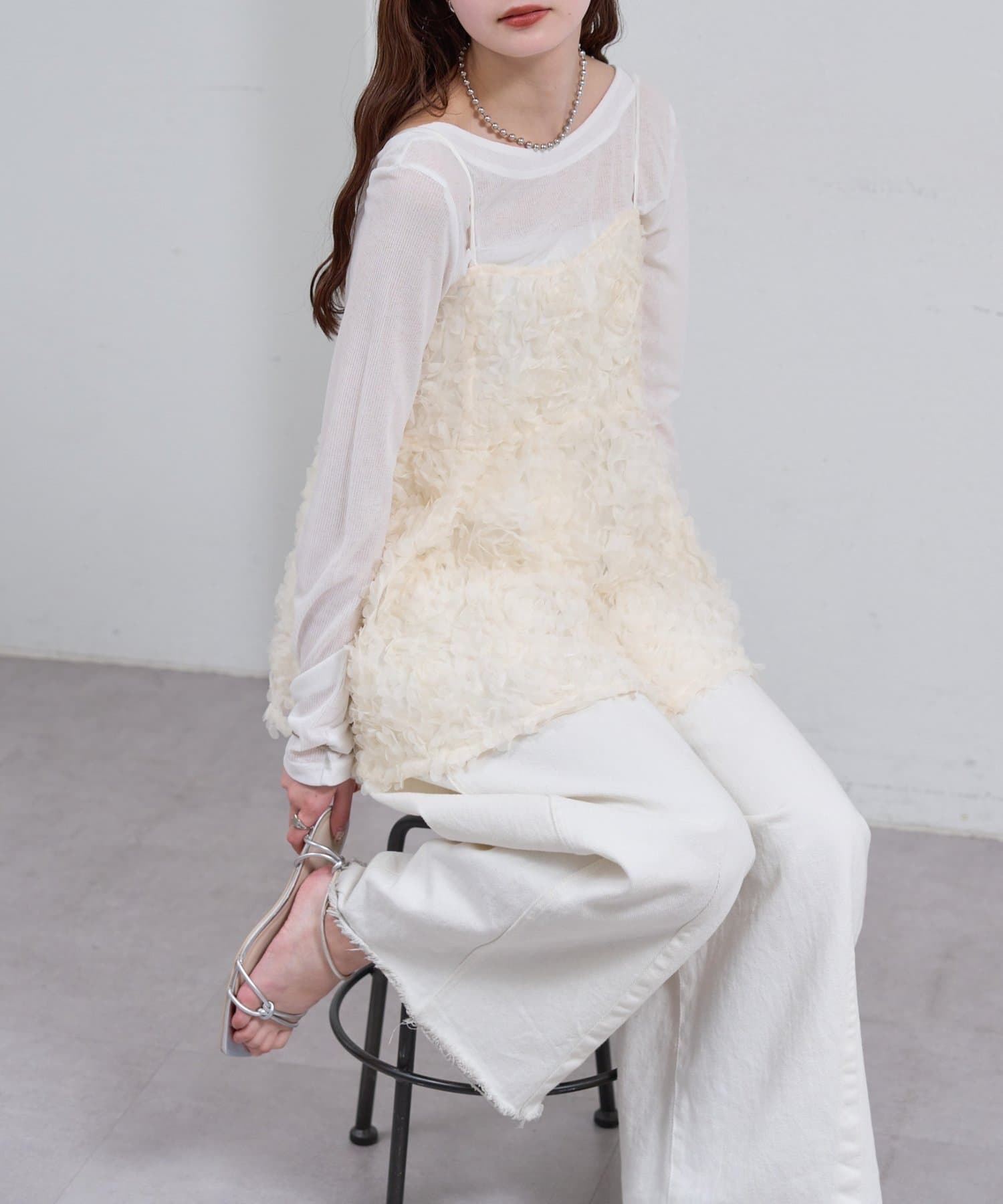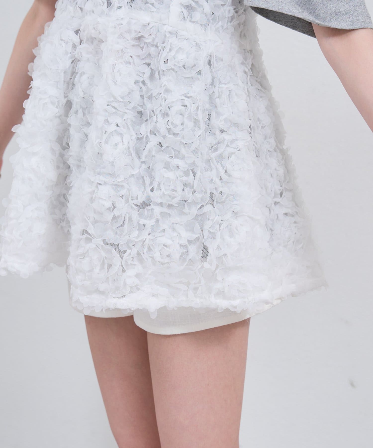 ・立体感のあるフラワーモチーフのチュール素材が目を惹くキャミチュニック。