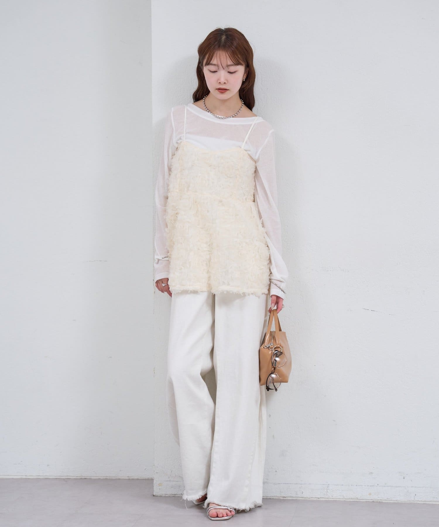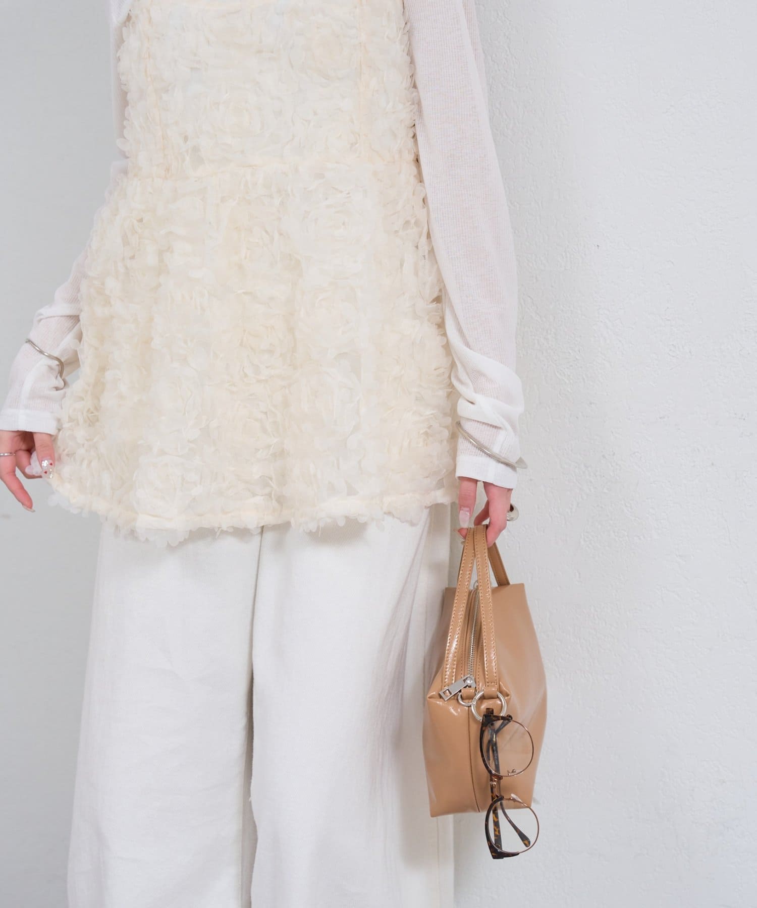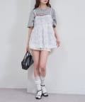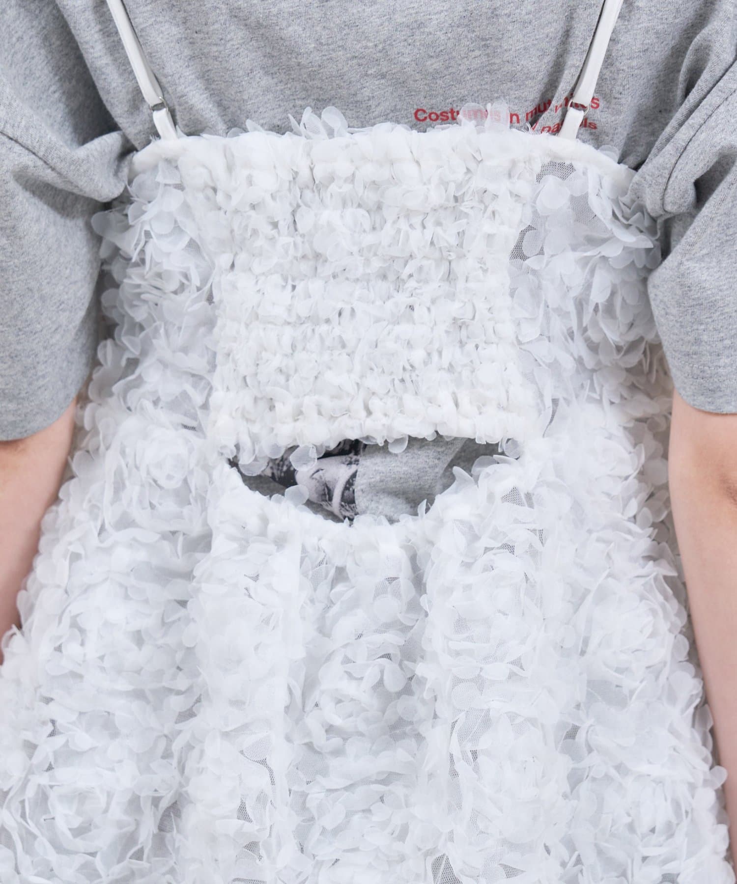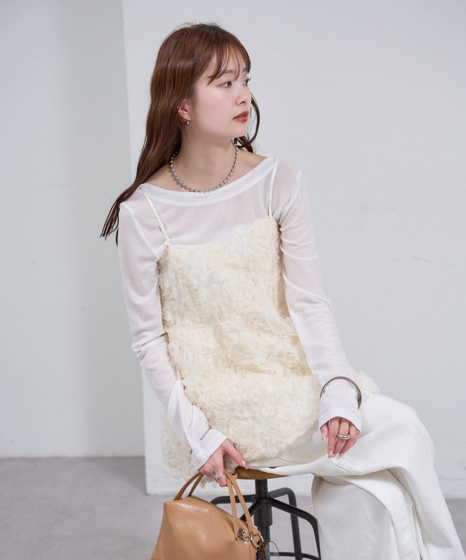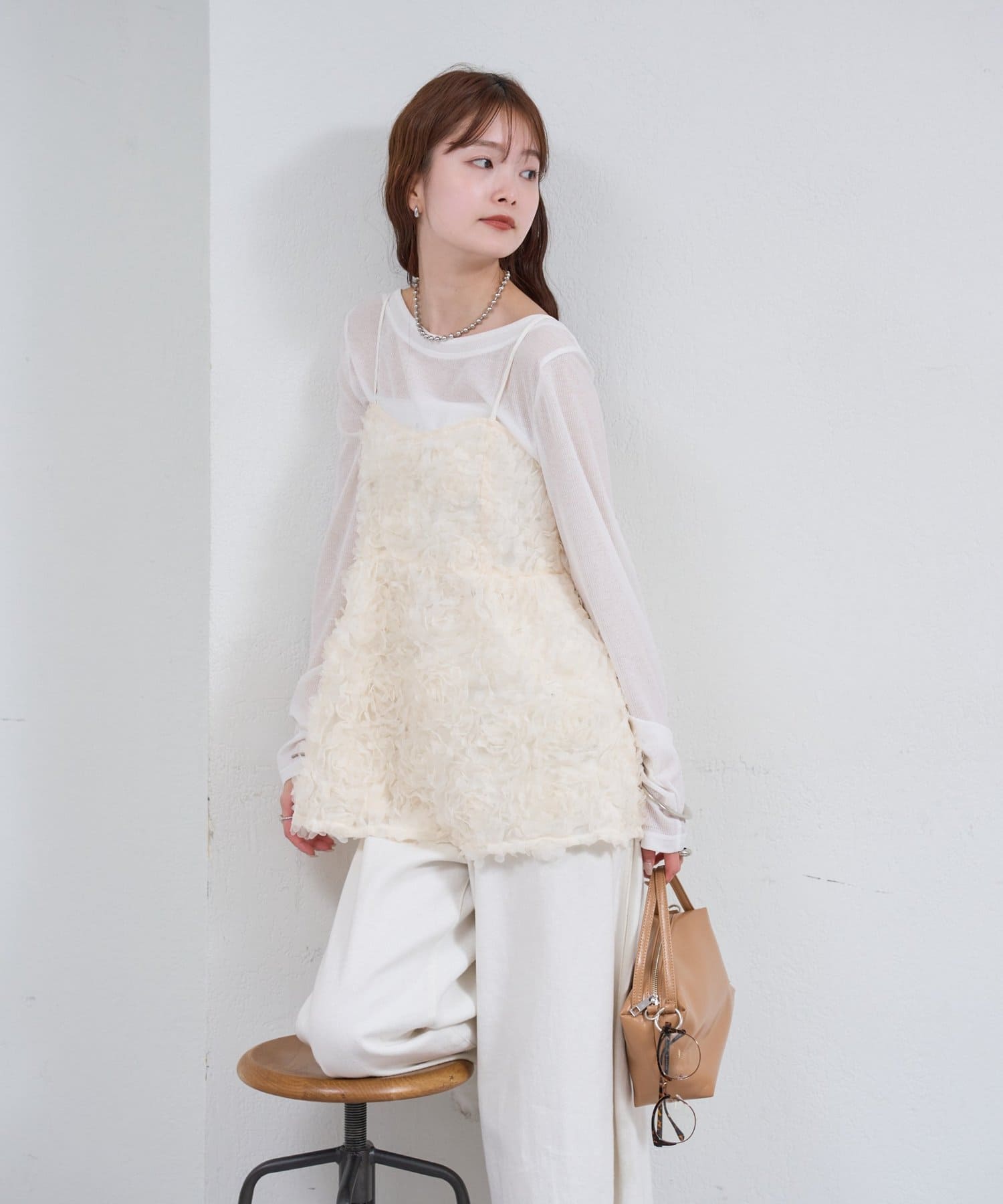 ・立体感のあるフラワーモチーフのチュール素材が目を惹くキャミチュニック。