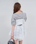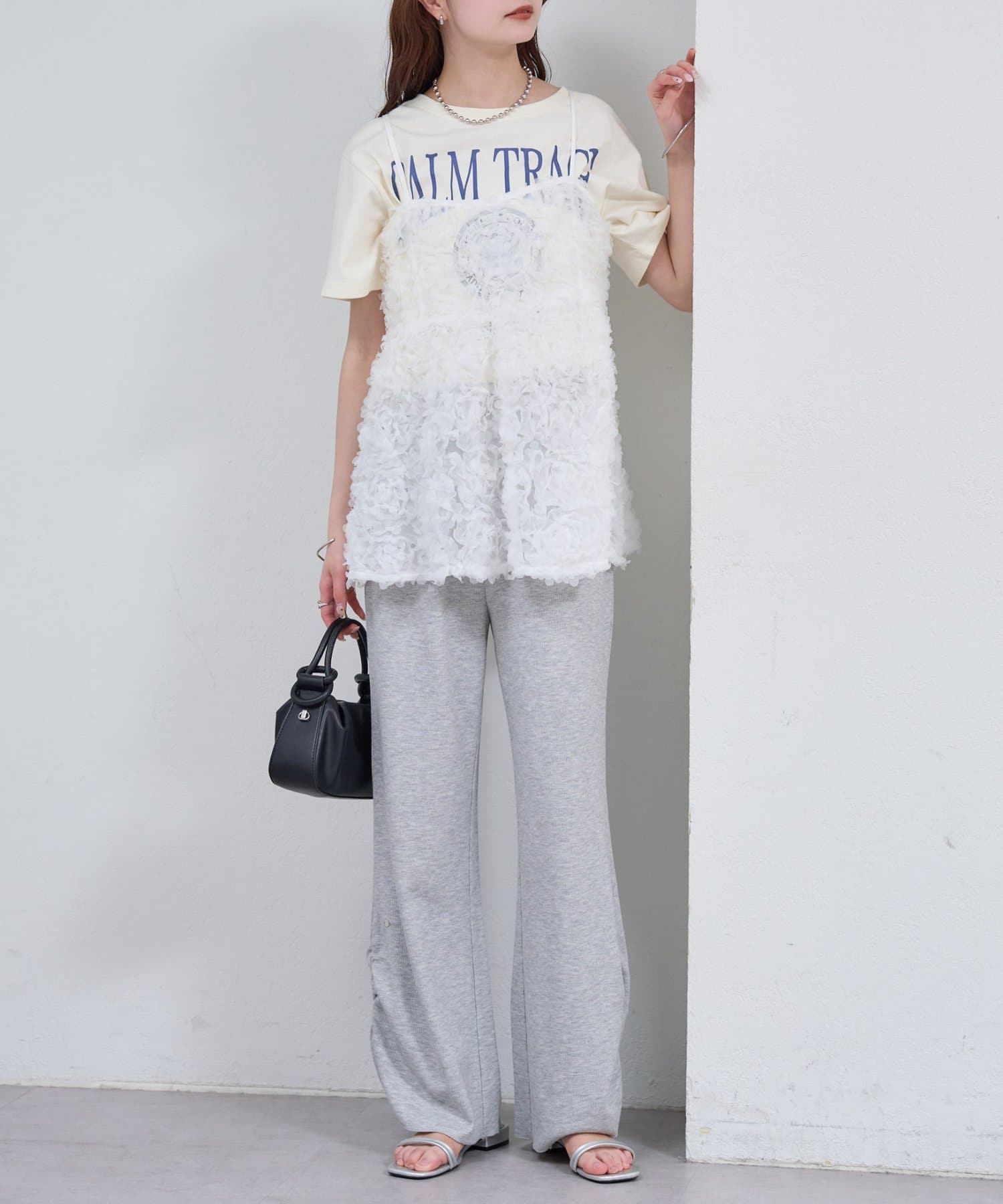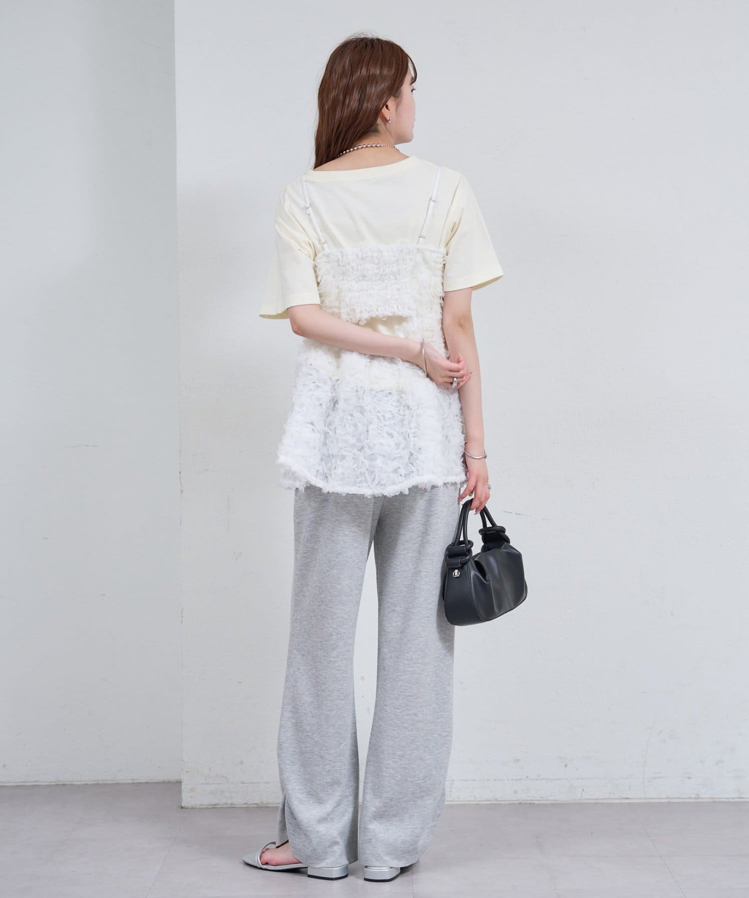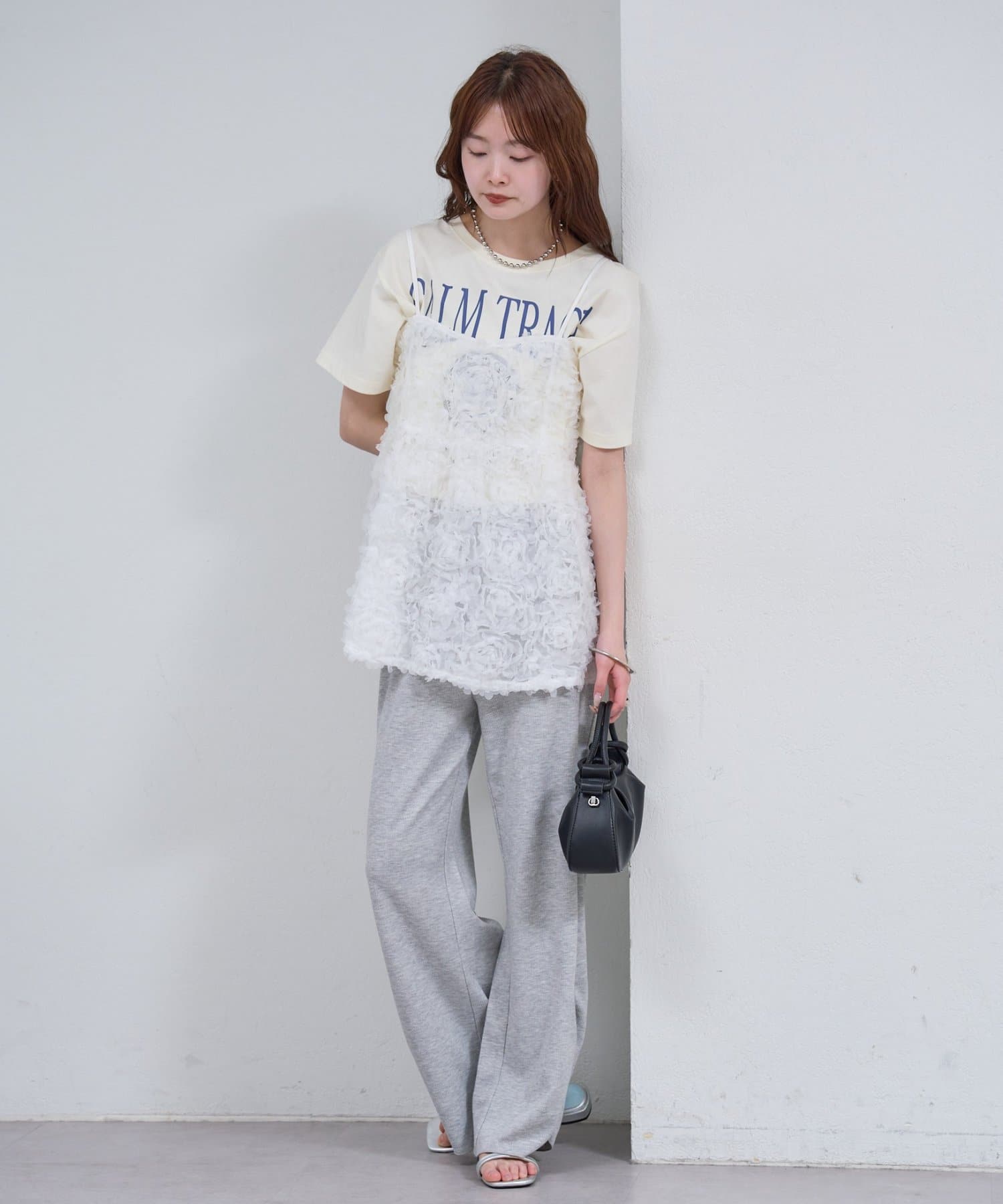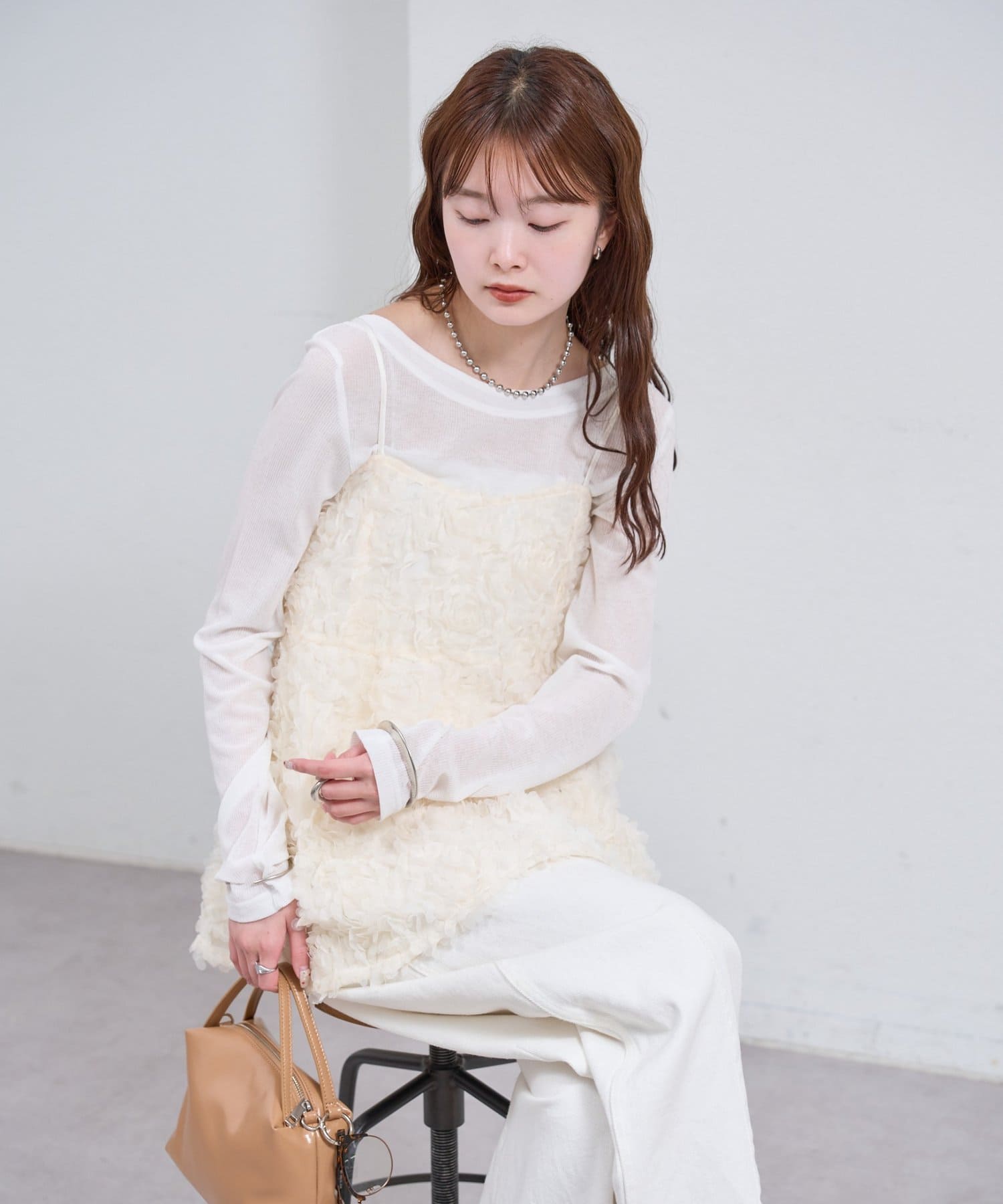 ・立体感のあるフラワーモチーフのチュール素材が目を惹くキャミチュニック。