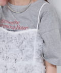フラワーモチーフのチュールが華やかさをプラスしてくれるキャミチュニック