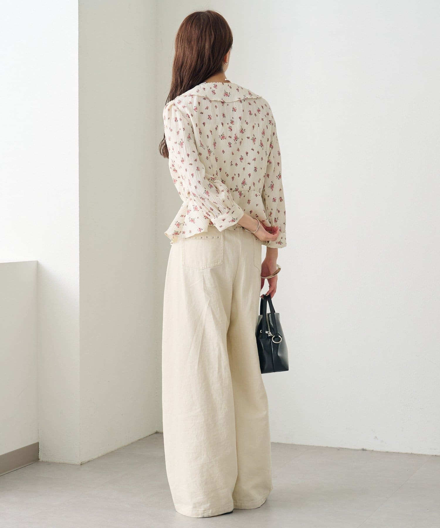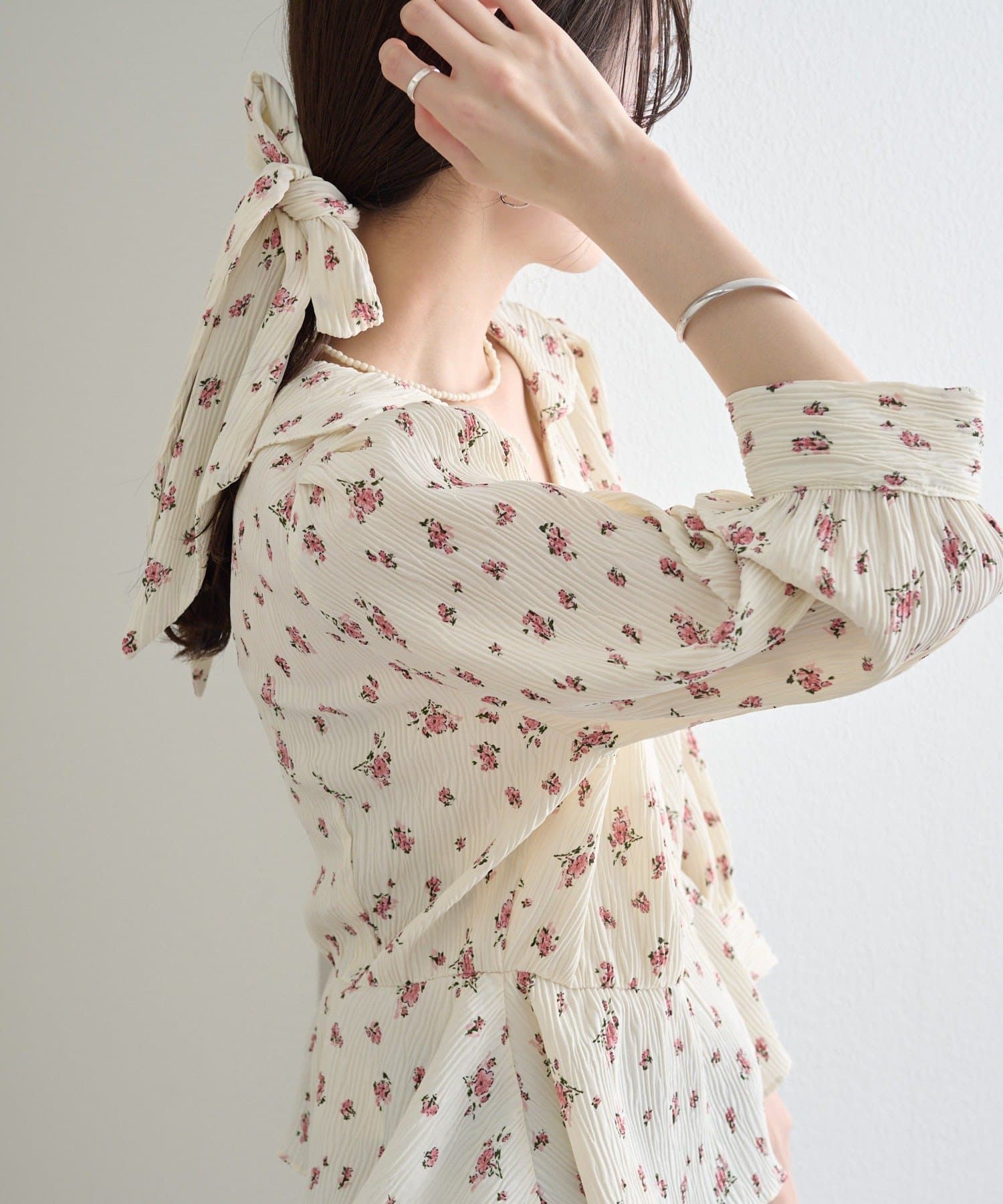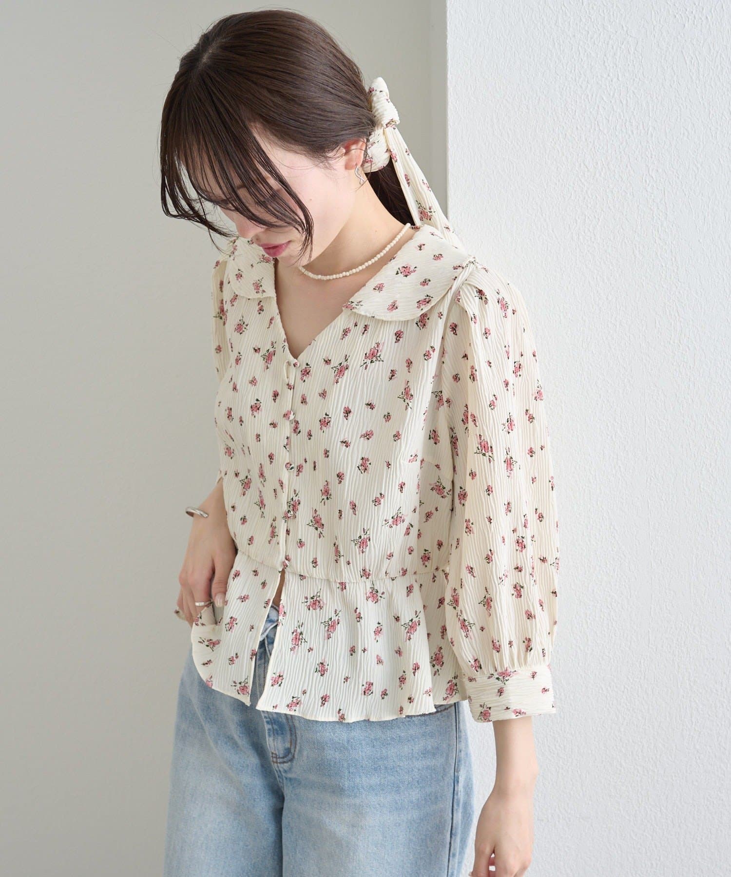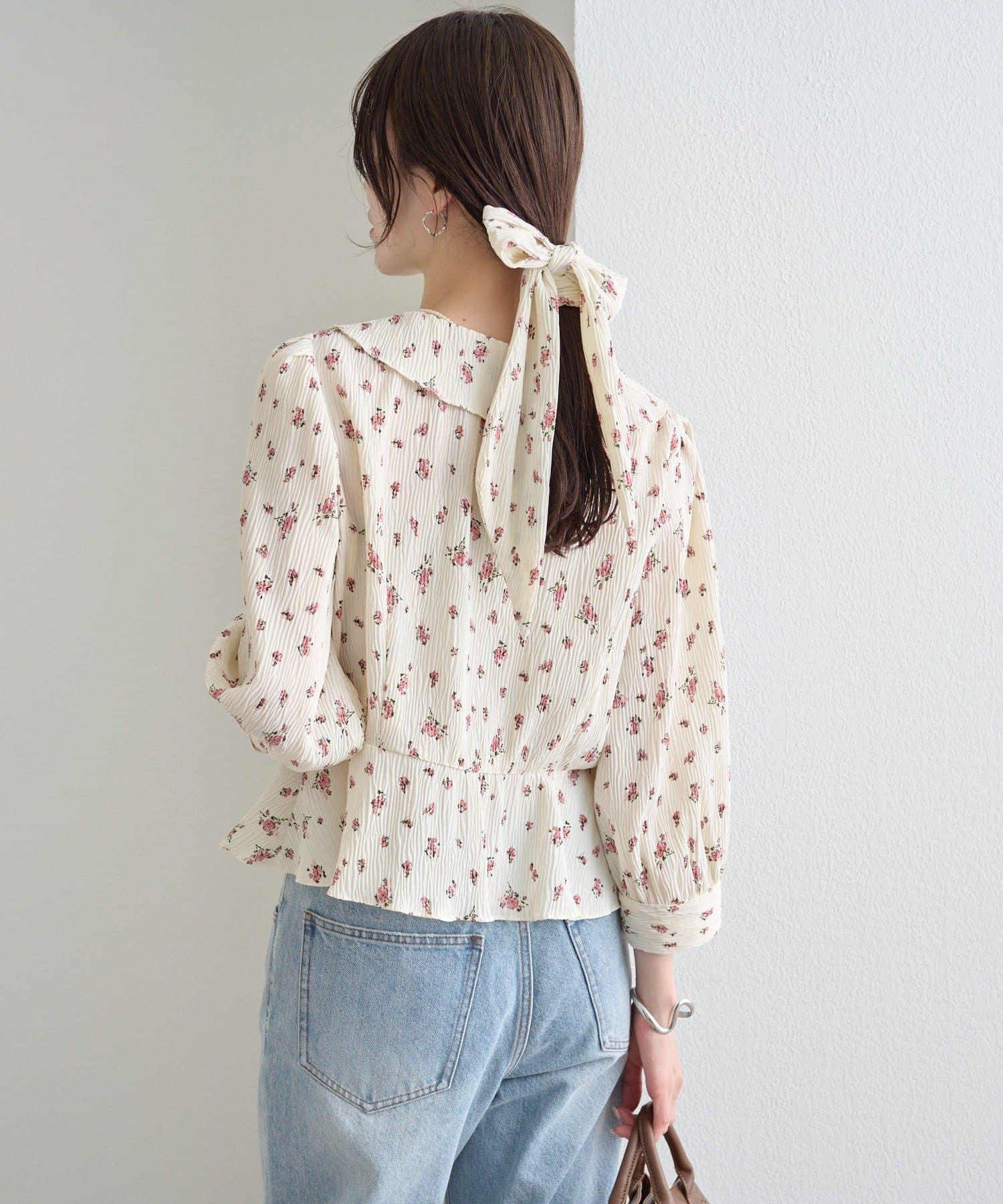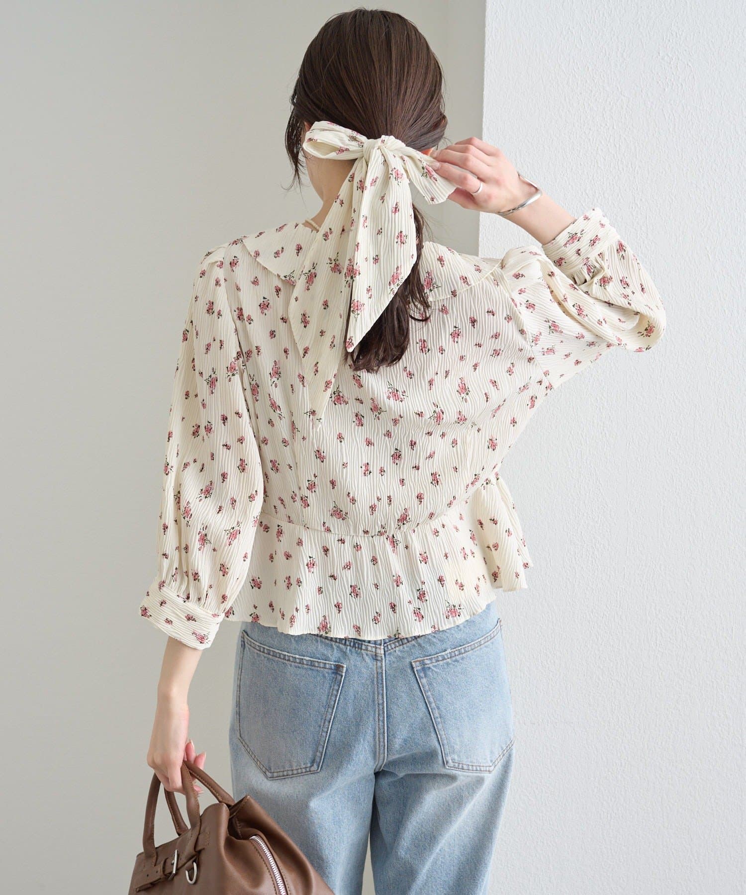 フロントで結んでフェミニンに、バックで結んで抜け感をプラス、リボンを外してシンプルにも着こなせるブラウス。