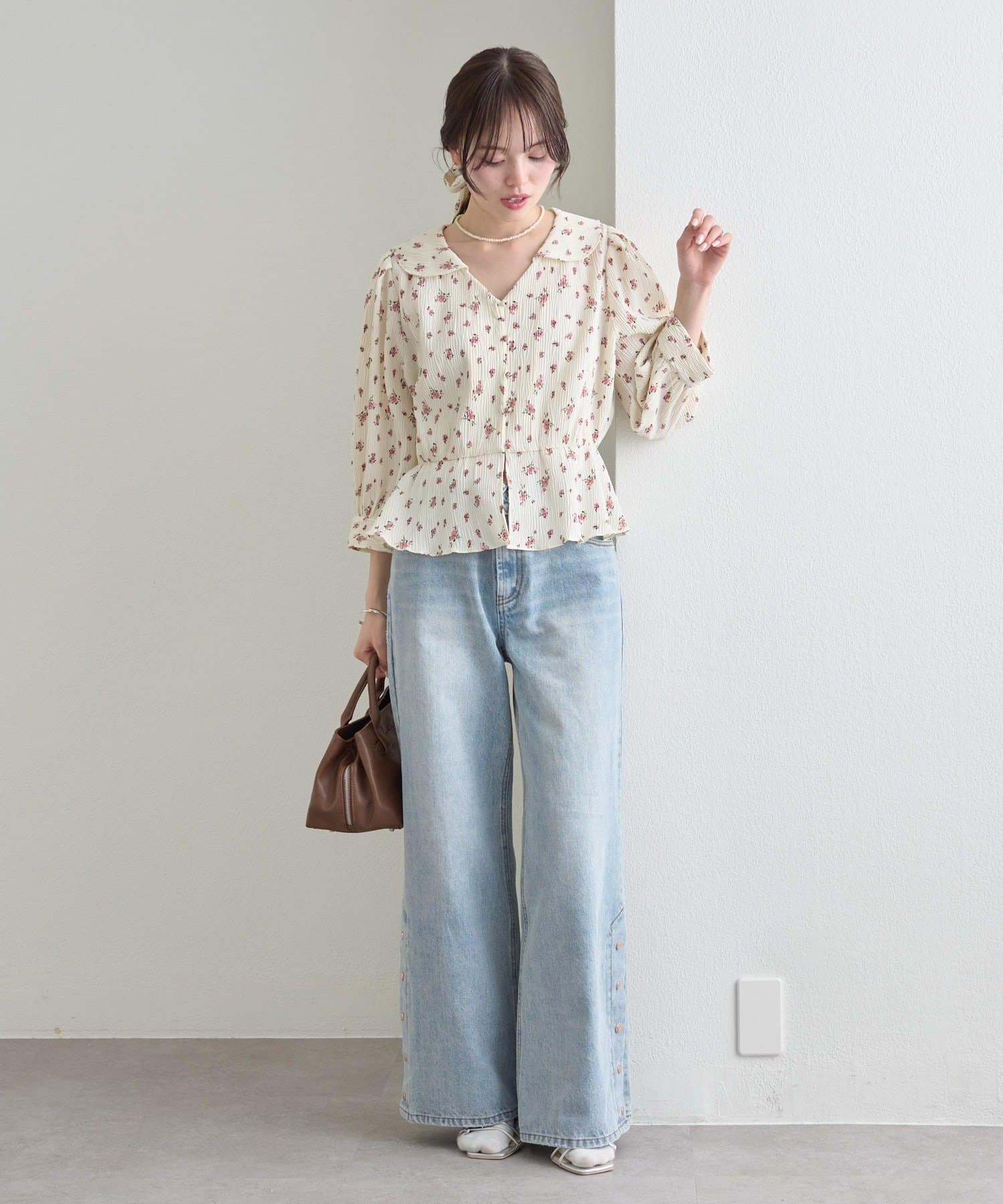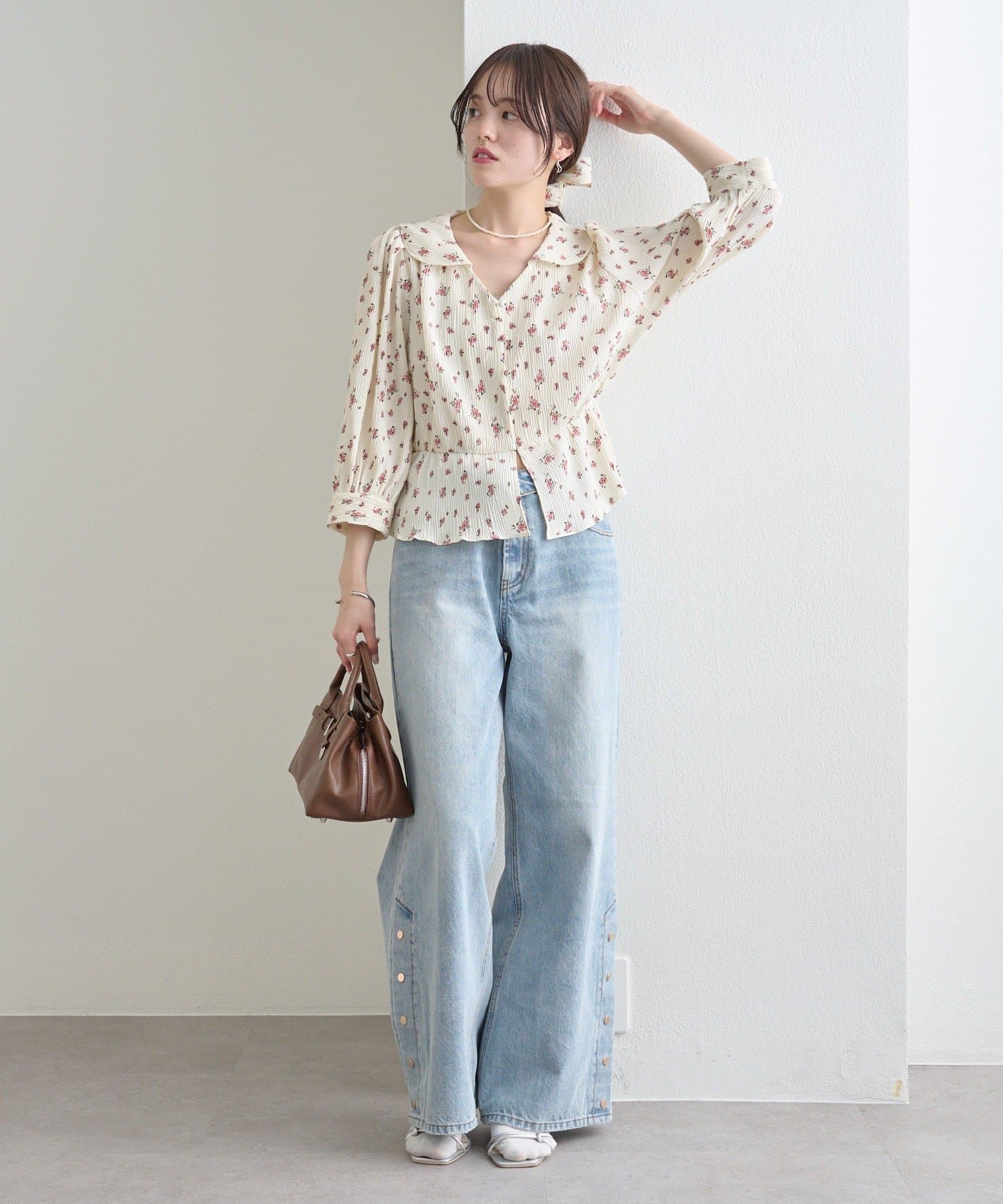 ・デニム合わせでカジュアルダウンしても、程よく甘さが残る大人フェミニンなバランスに。