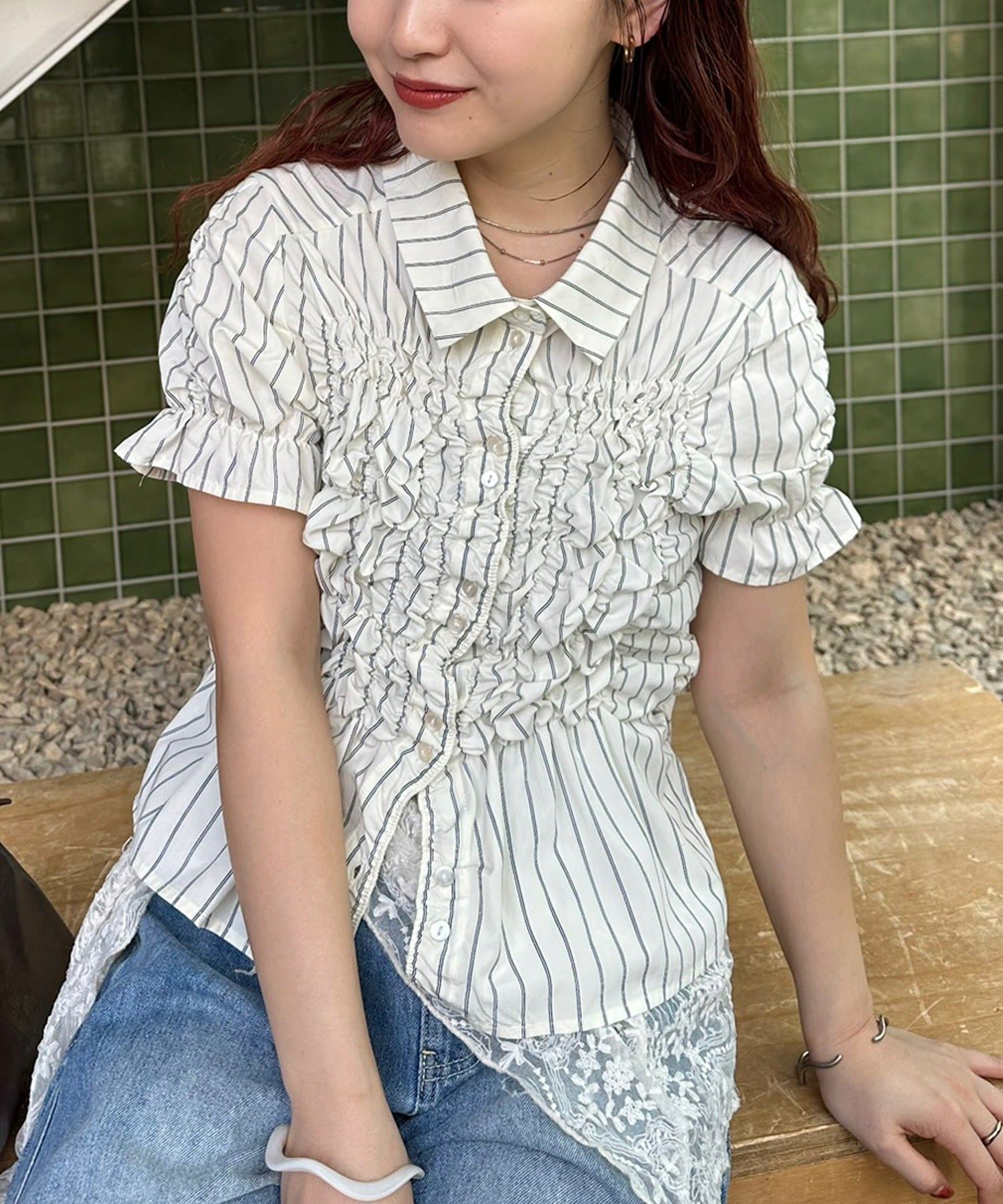 シャーリングデザインが素材感をプラスするシェイプシャツ