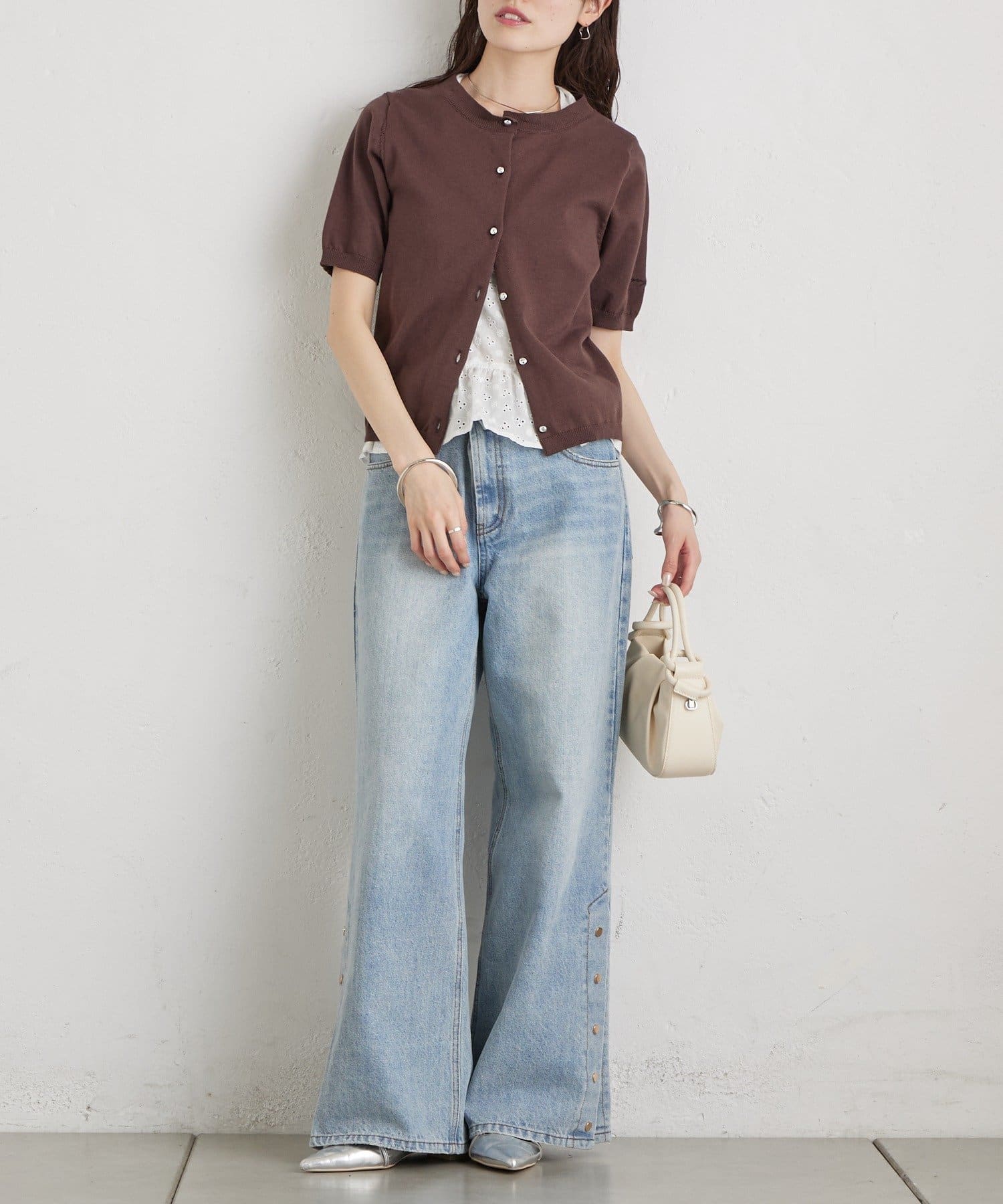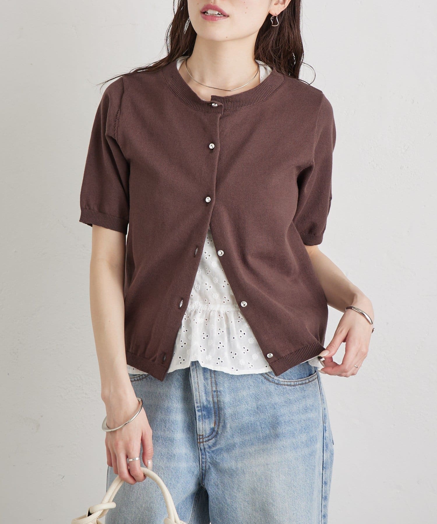 ギンガム襟が映える、クラシカルな半袖カーディガン