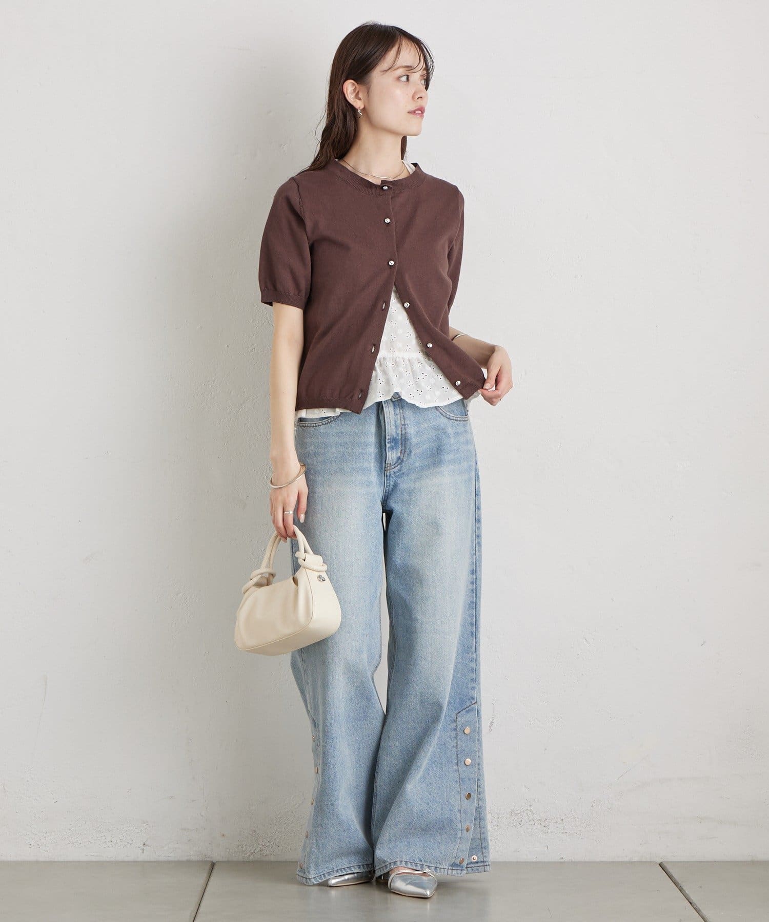 ・フロントはボタン仕様で、トップスとしても羽織りとしても着回し可能です。