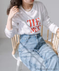 ・大胆に入った前後のロゴが目を惹くロングTシャツ。