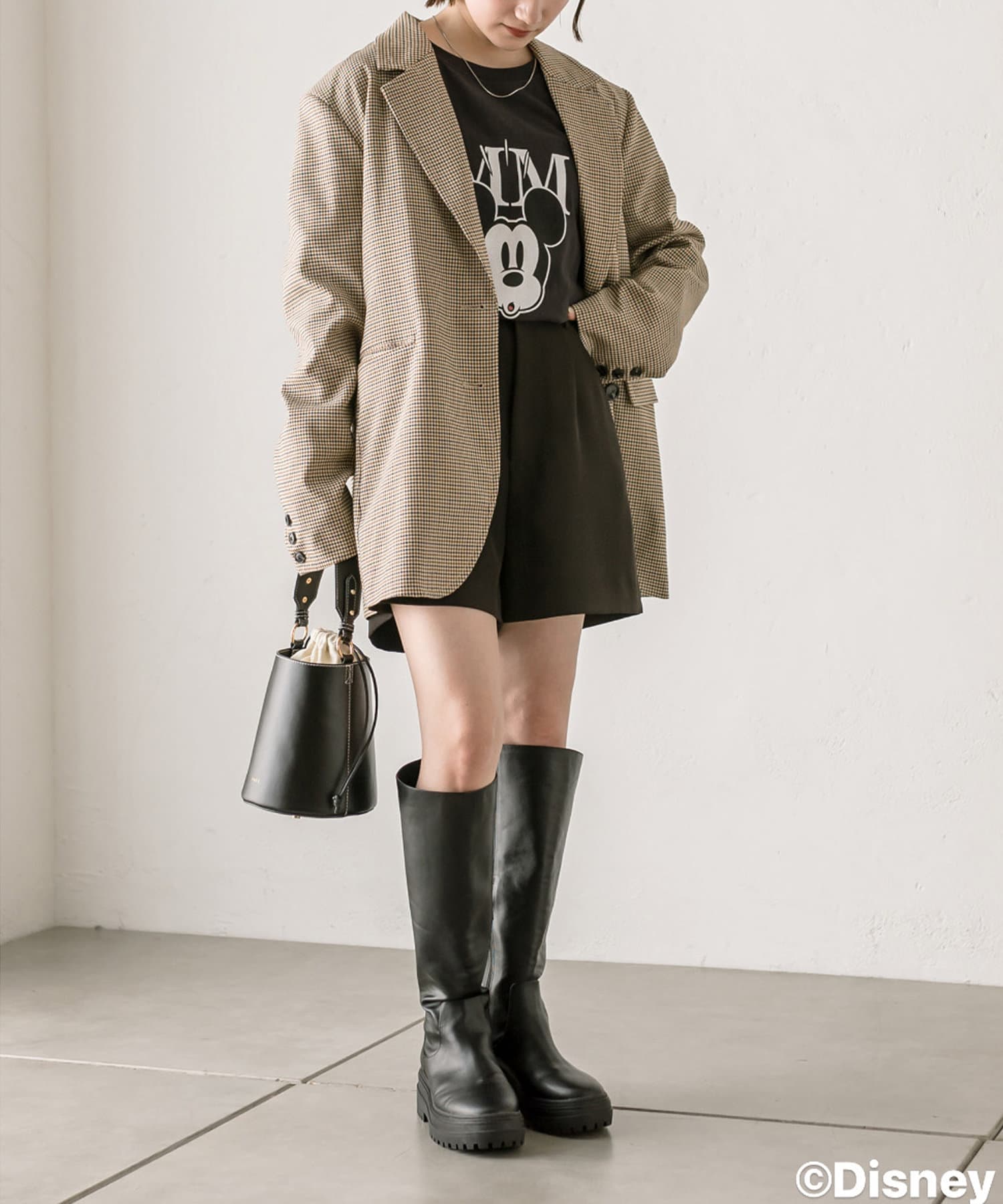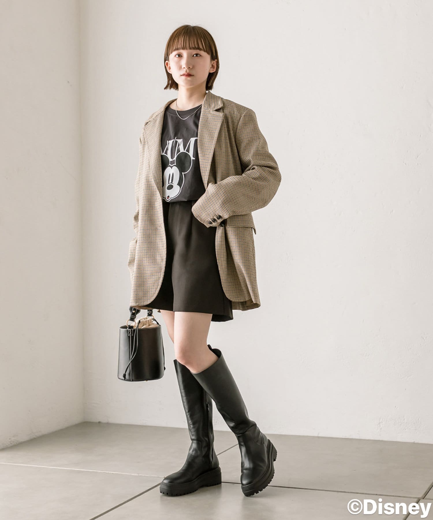 ・同色のボトムスと合わせたワントーンコーデは綺麗めに決まります。