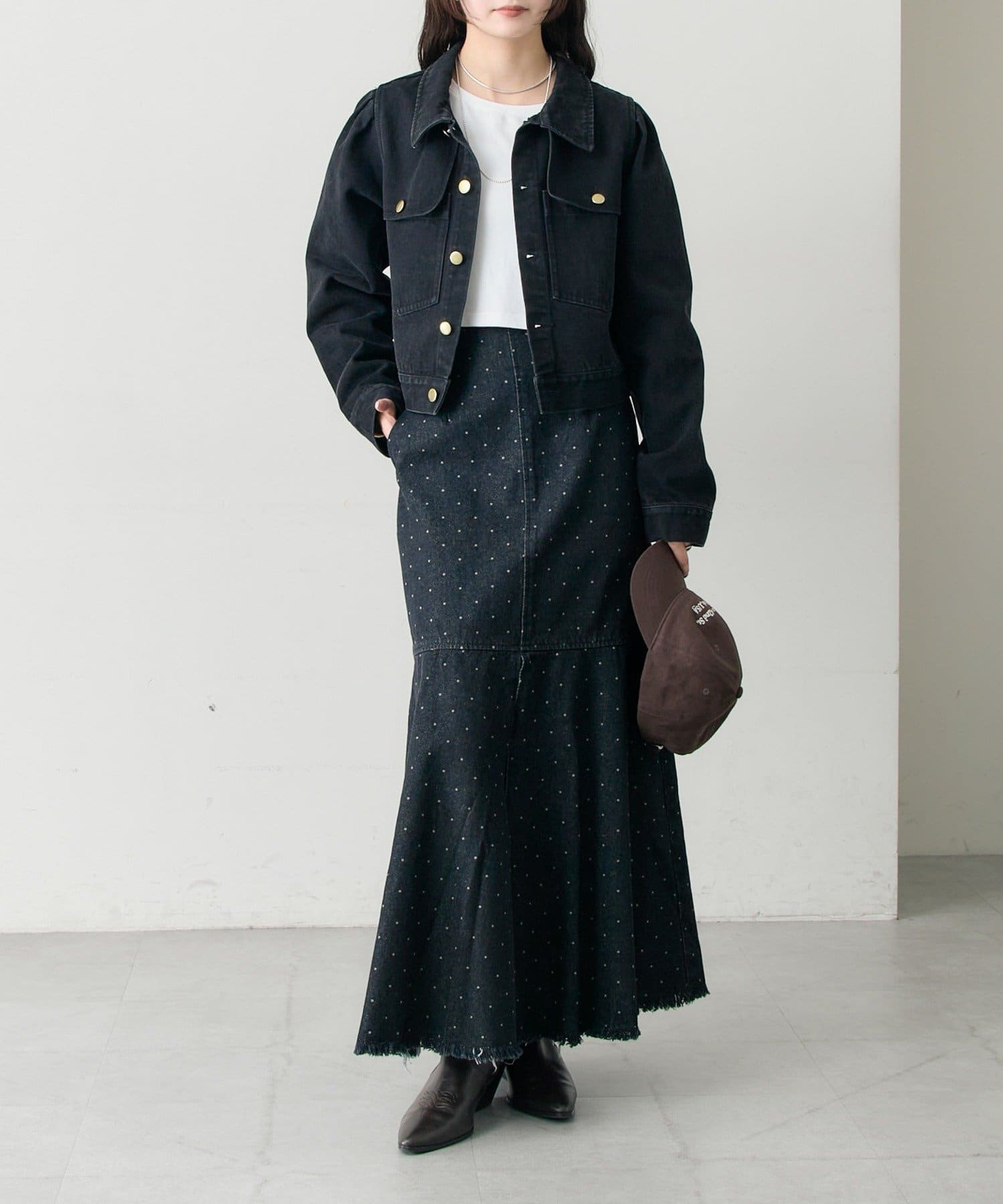 ・お手持ちのデニムと合わせたセットアップ風の着こなしがおすすめです。