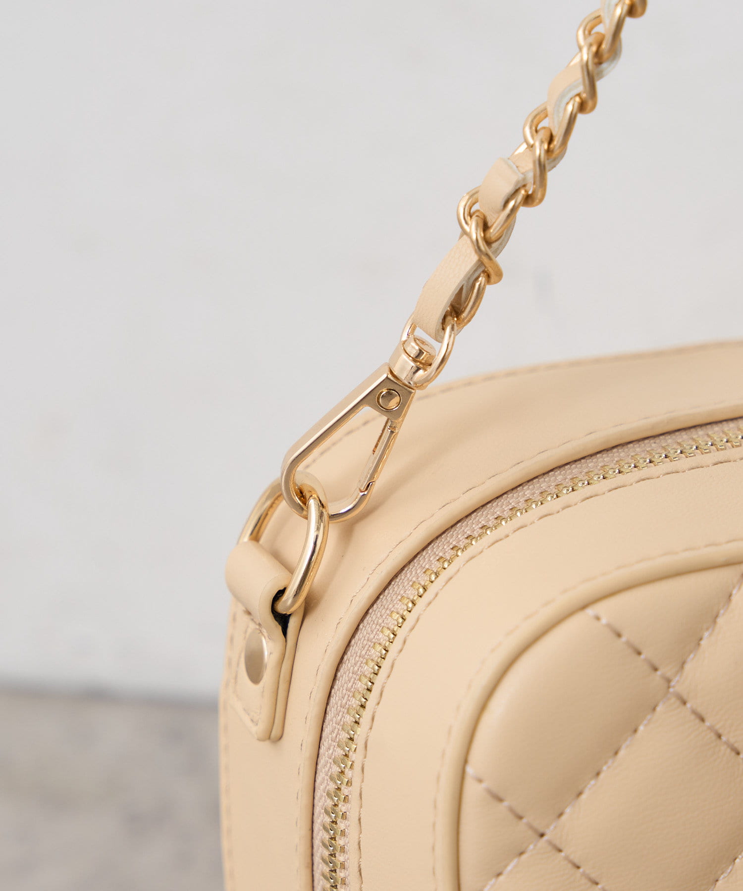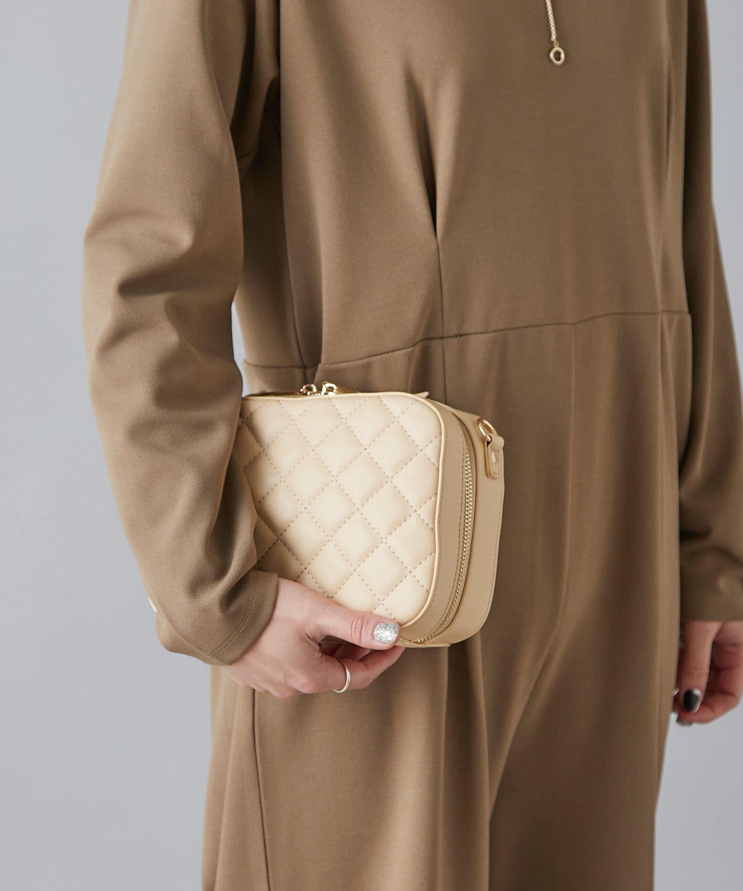 ・コロンとした立体的な形とキルティングがポイントのチェーンバッグ。