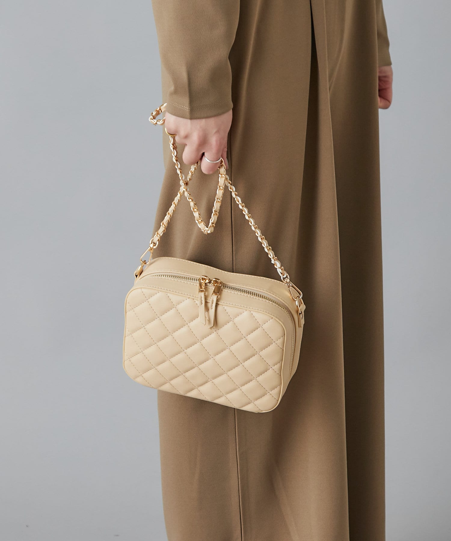 キルティングデザインがポイントのチェーンバッグ