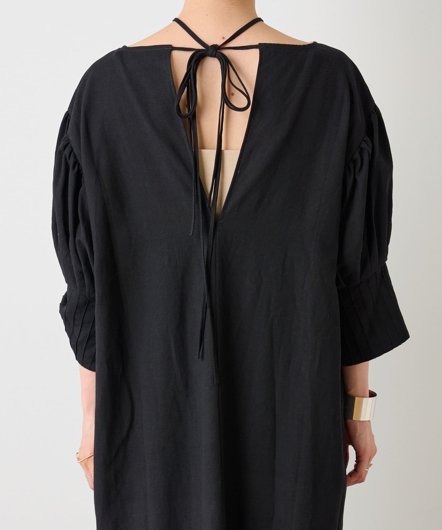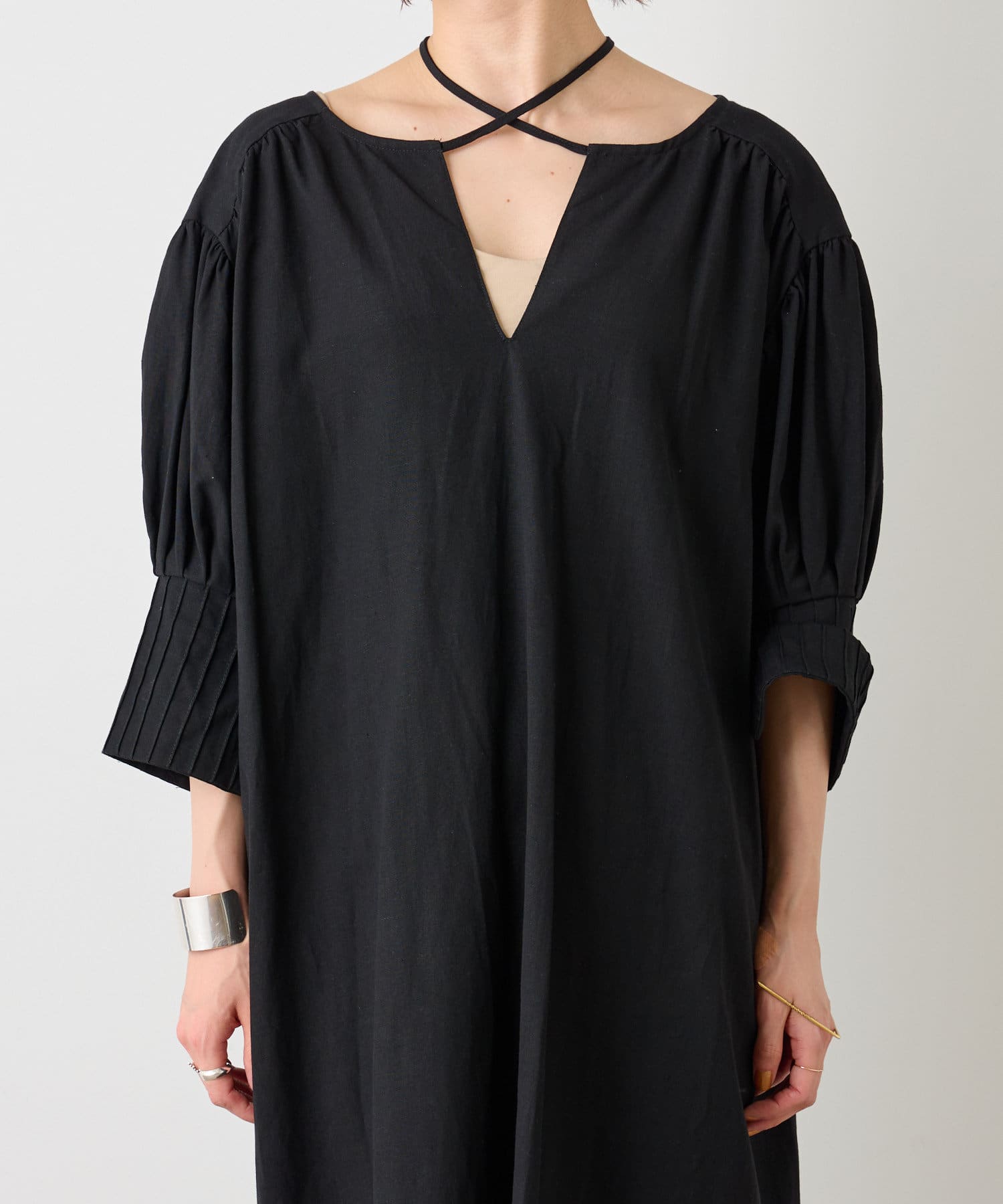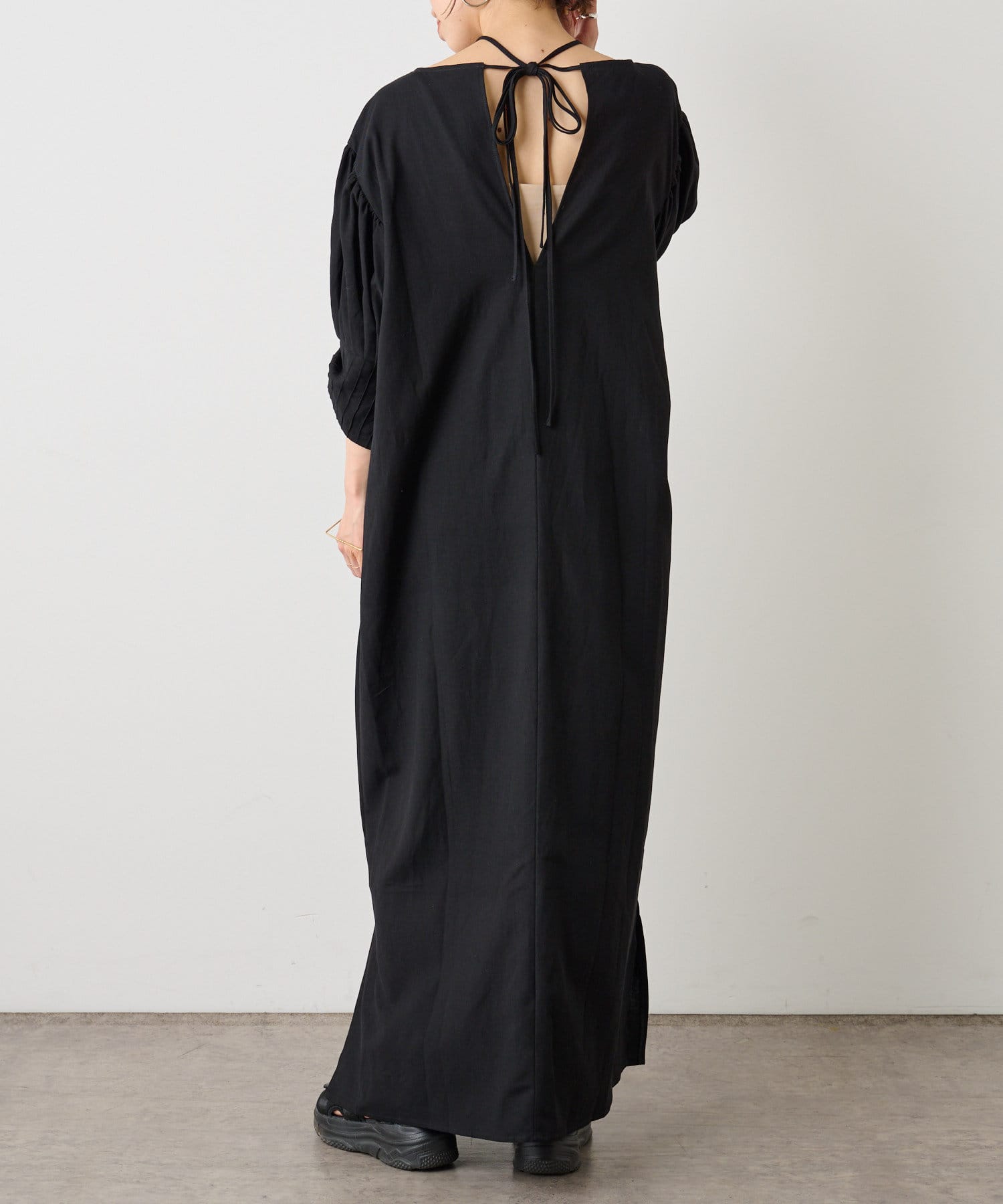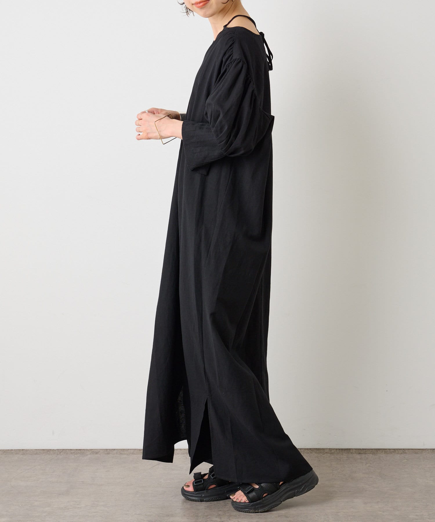 襟ぐりの紐でアレンジが楽しめるマルチウェイワンピース