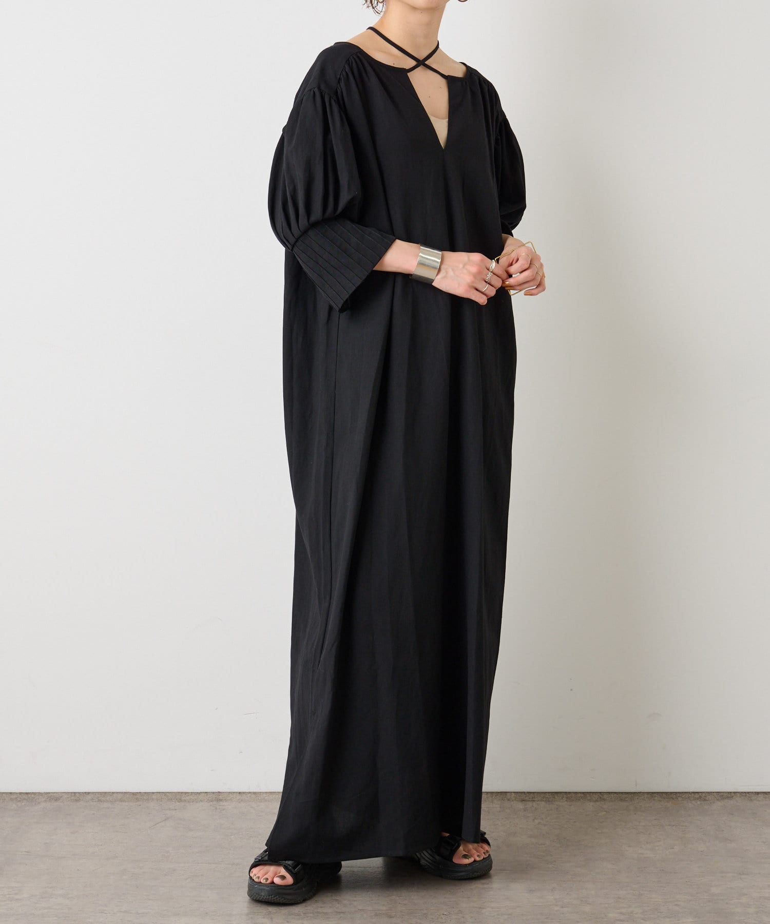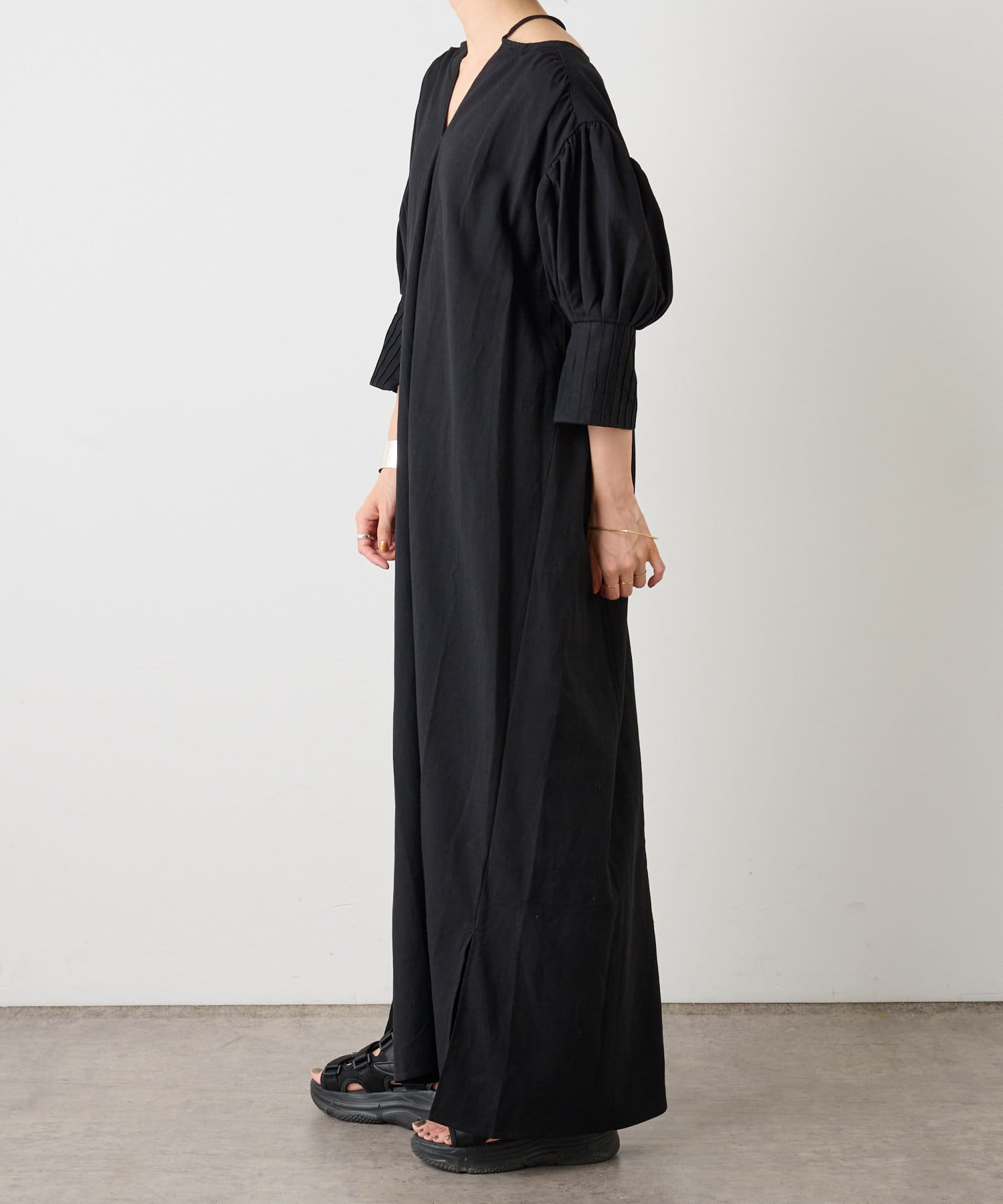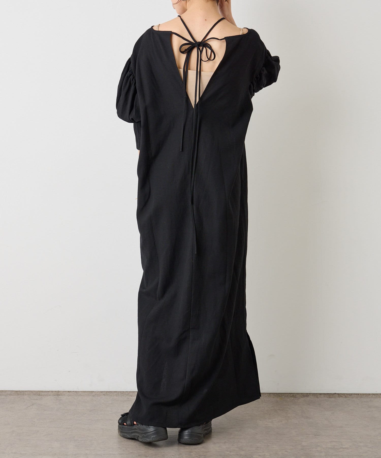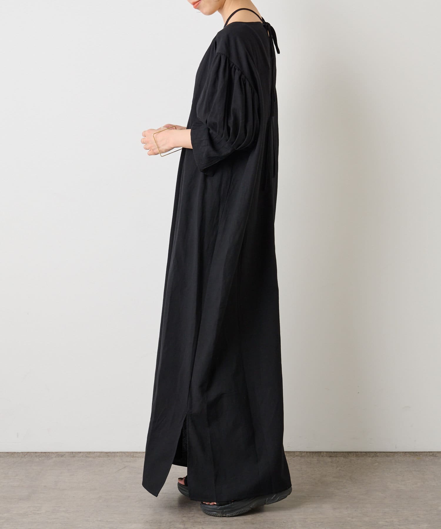 襟ぐりの紐でアレンジが楽しめるマルチウェイワンピース