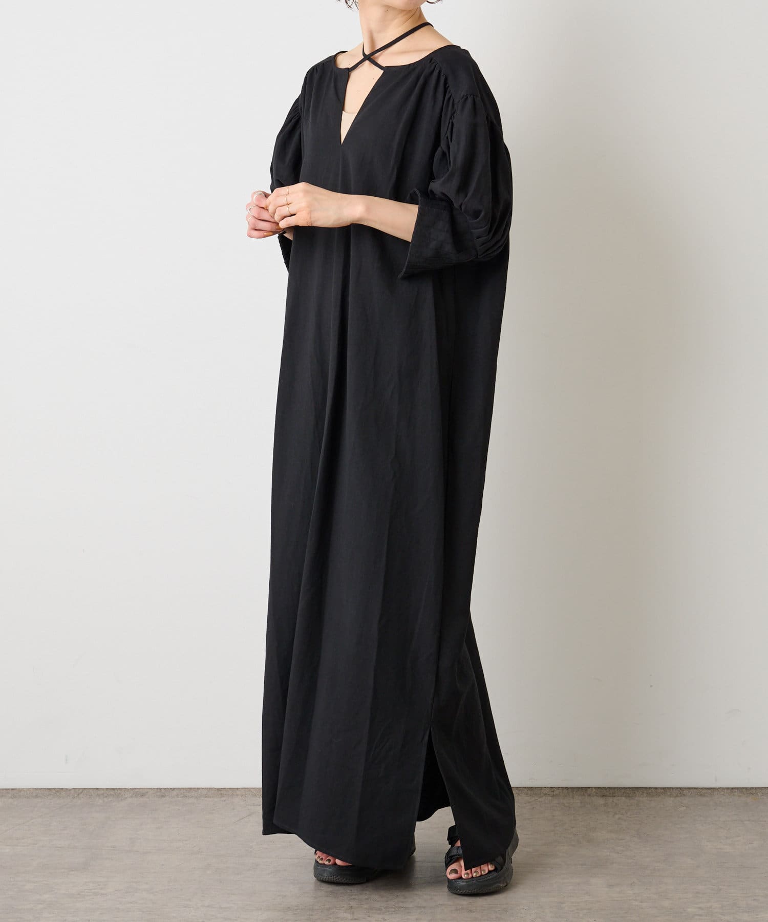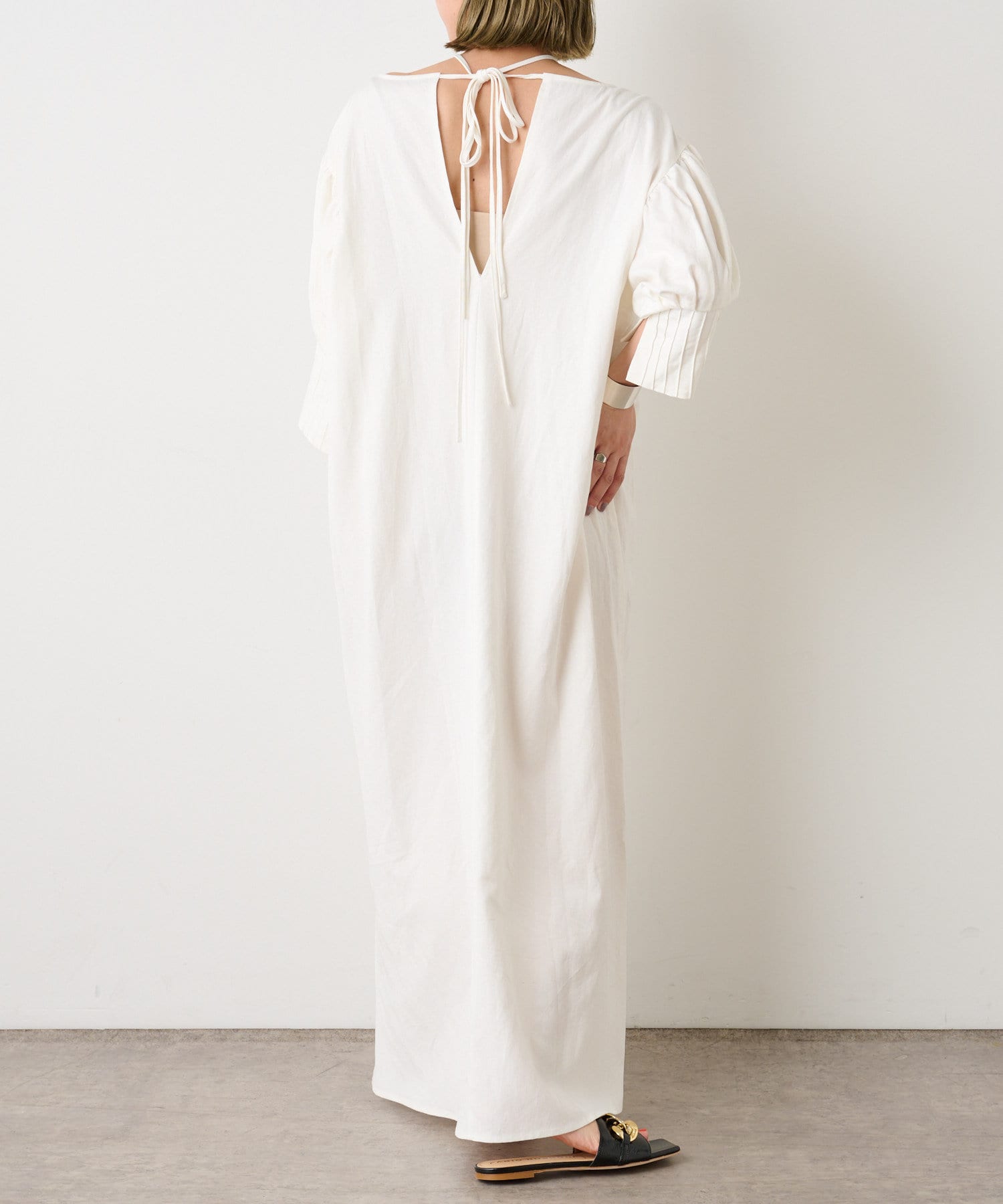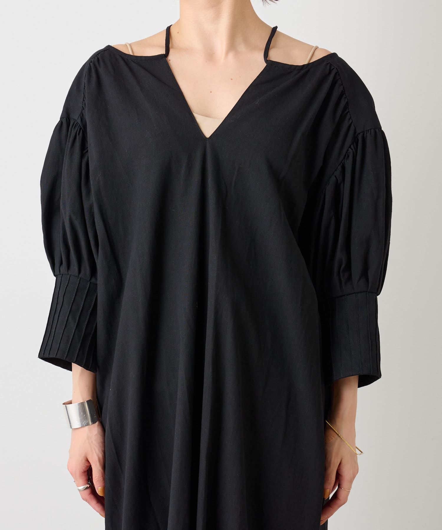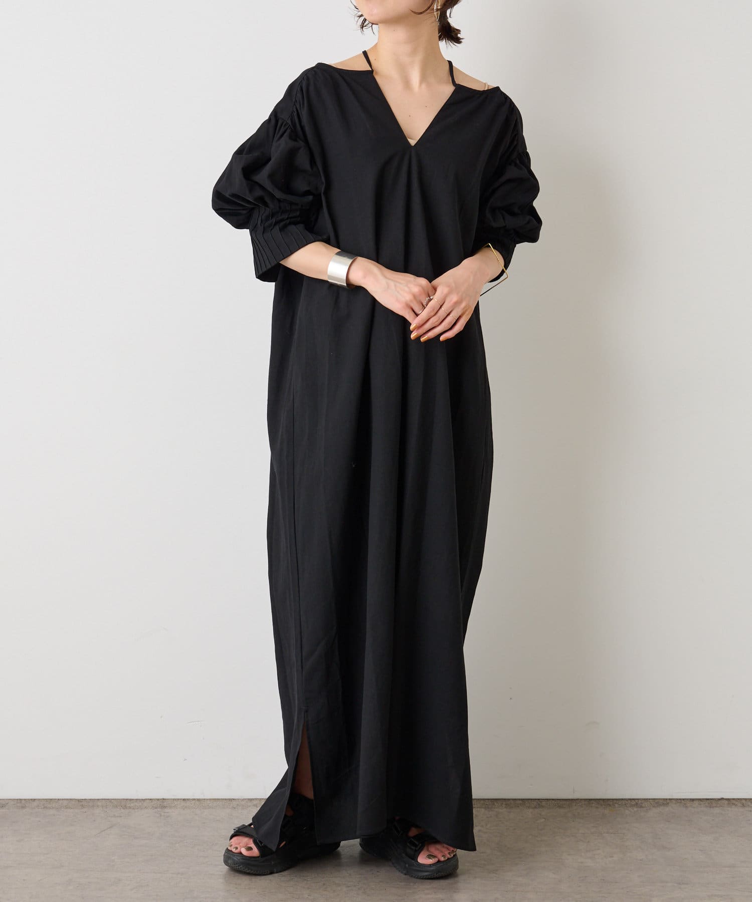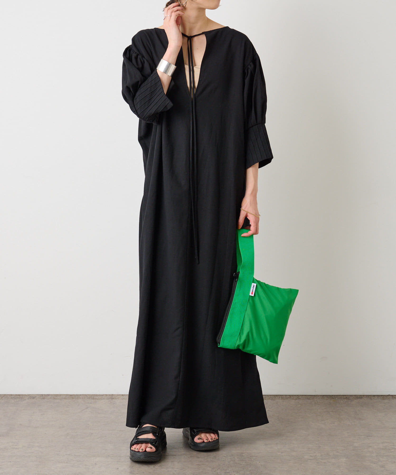 襟ぐりの紐でアレンジが楽しめるマルチウェイワンピース