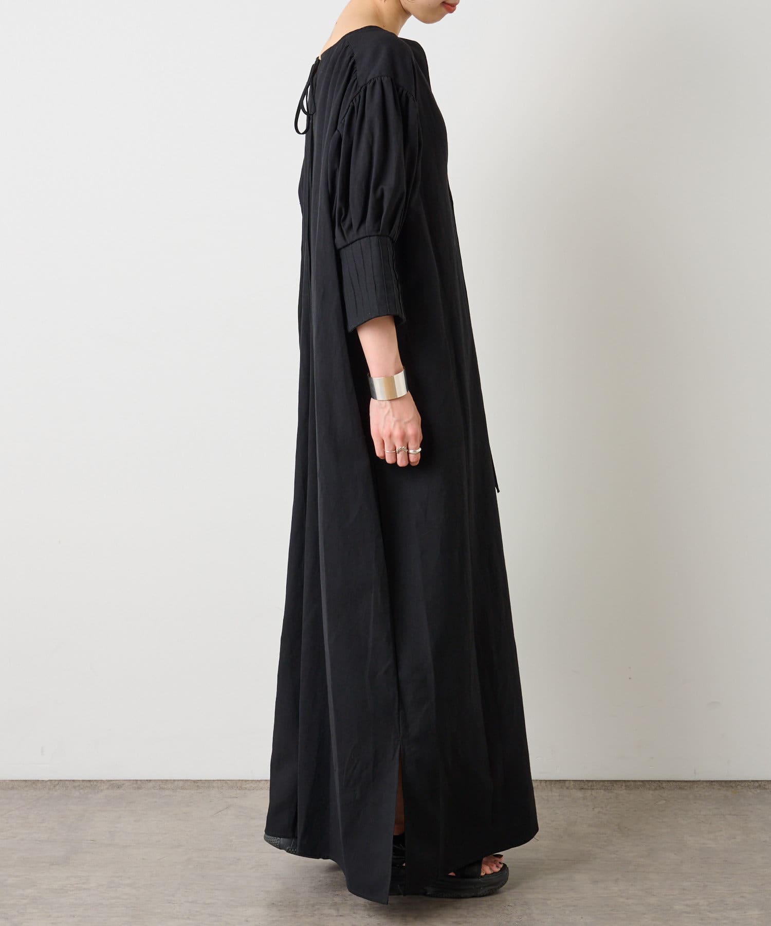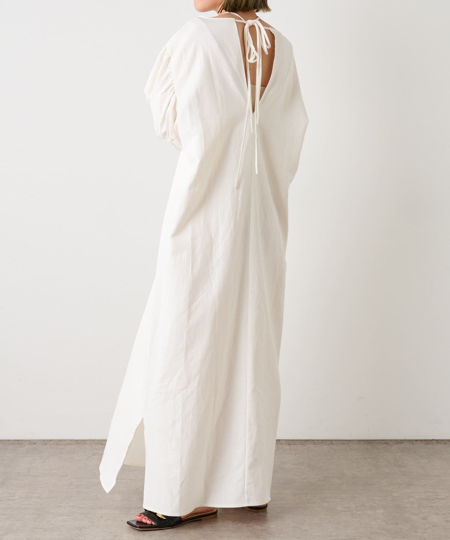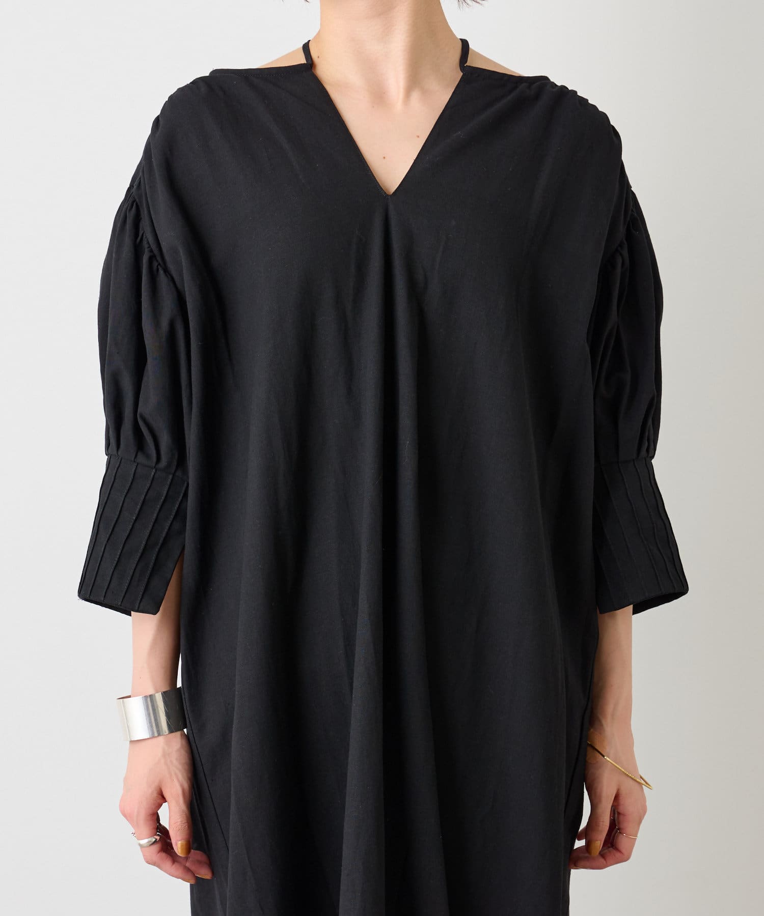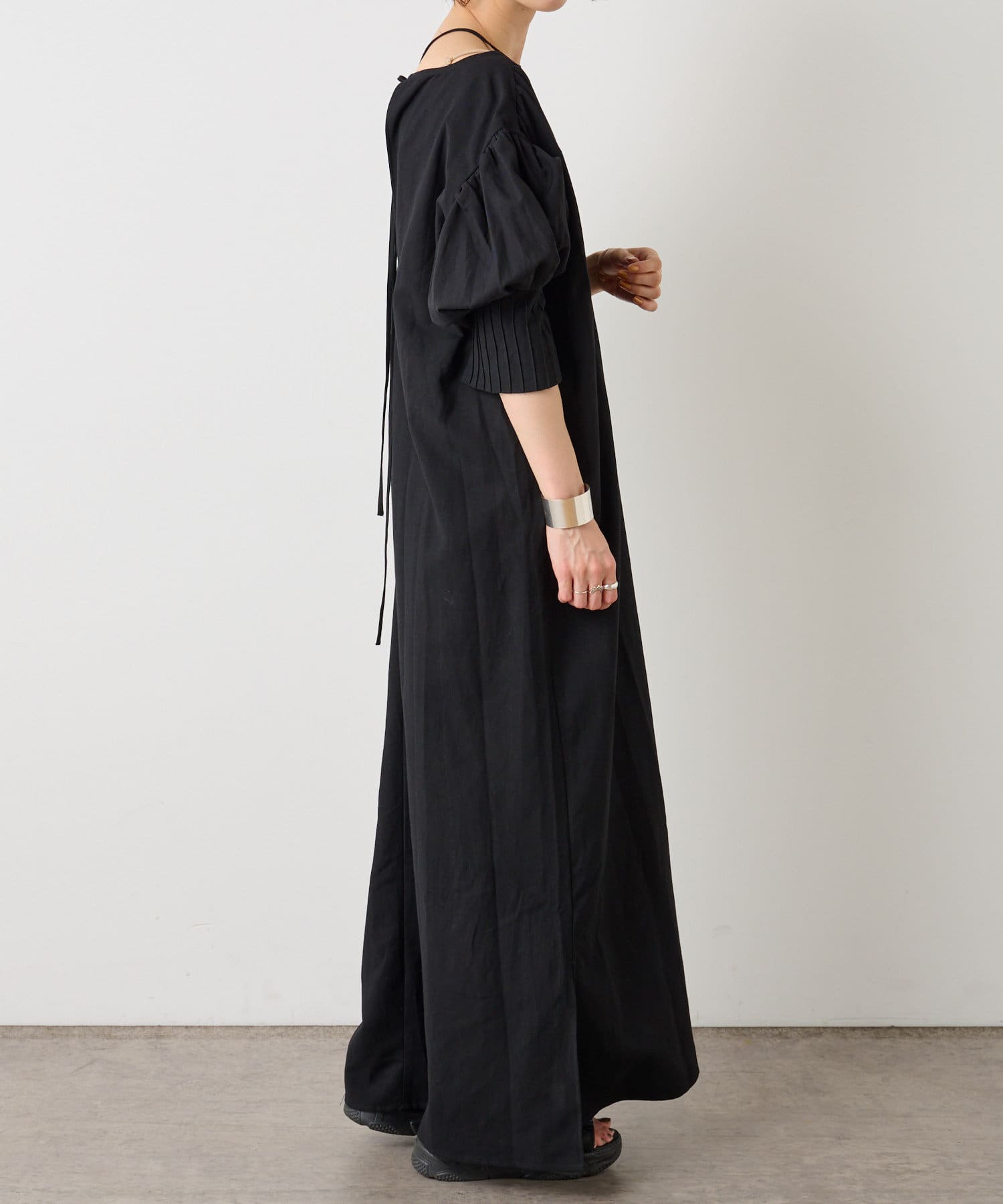 襟ぐりの紐でアレンジが楽しめるマルチウェイワンピース