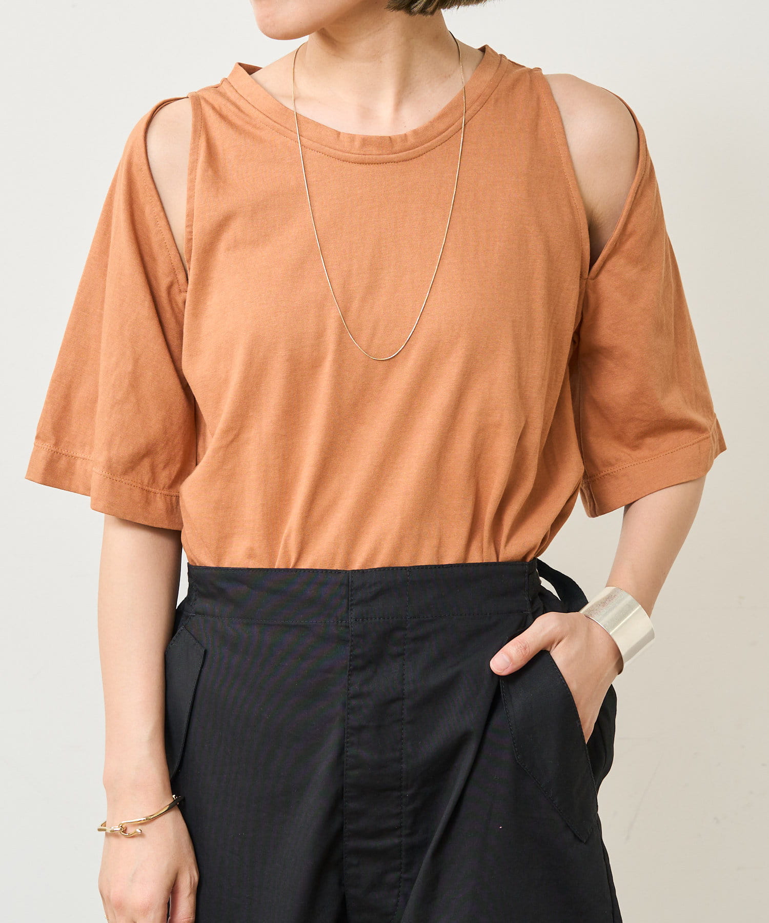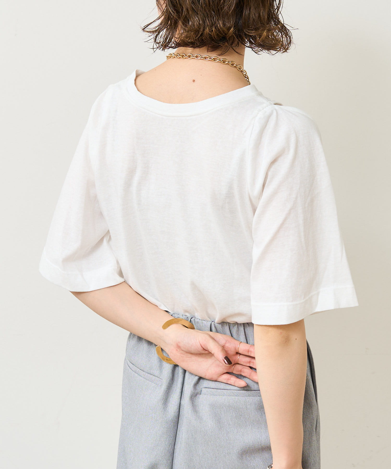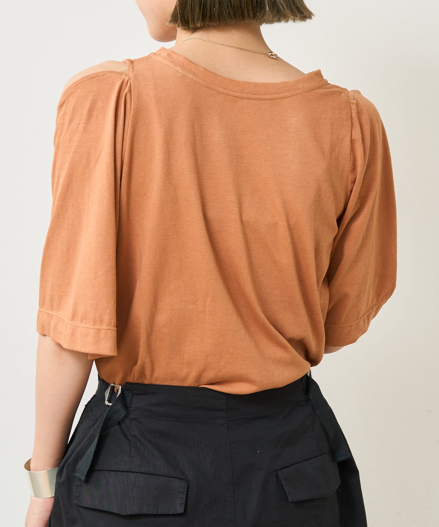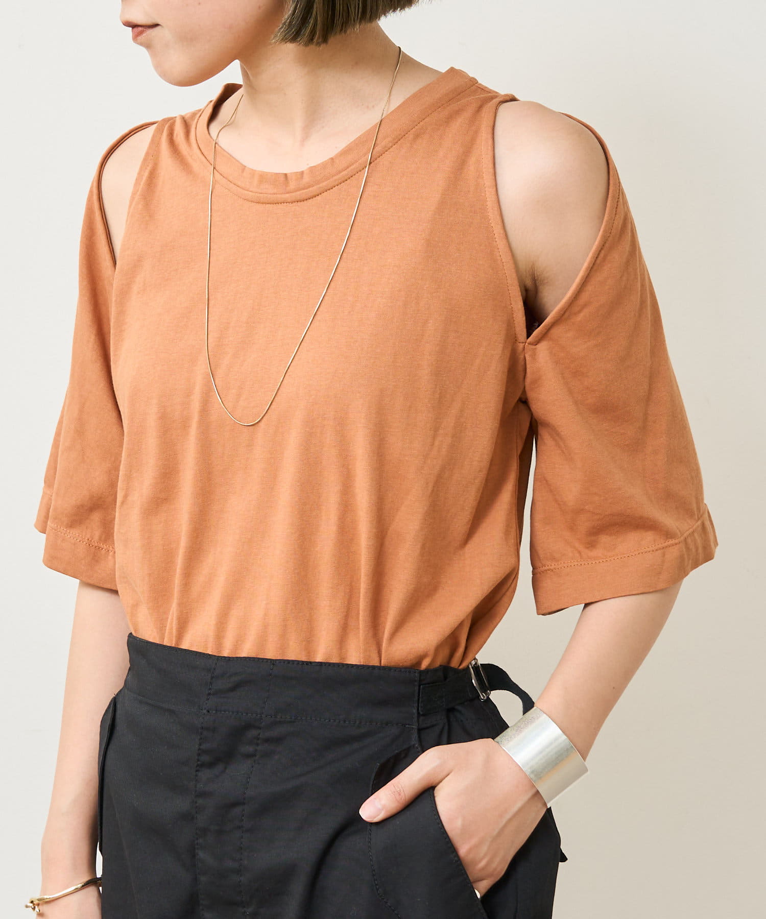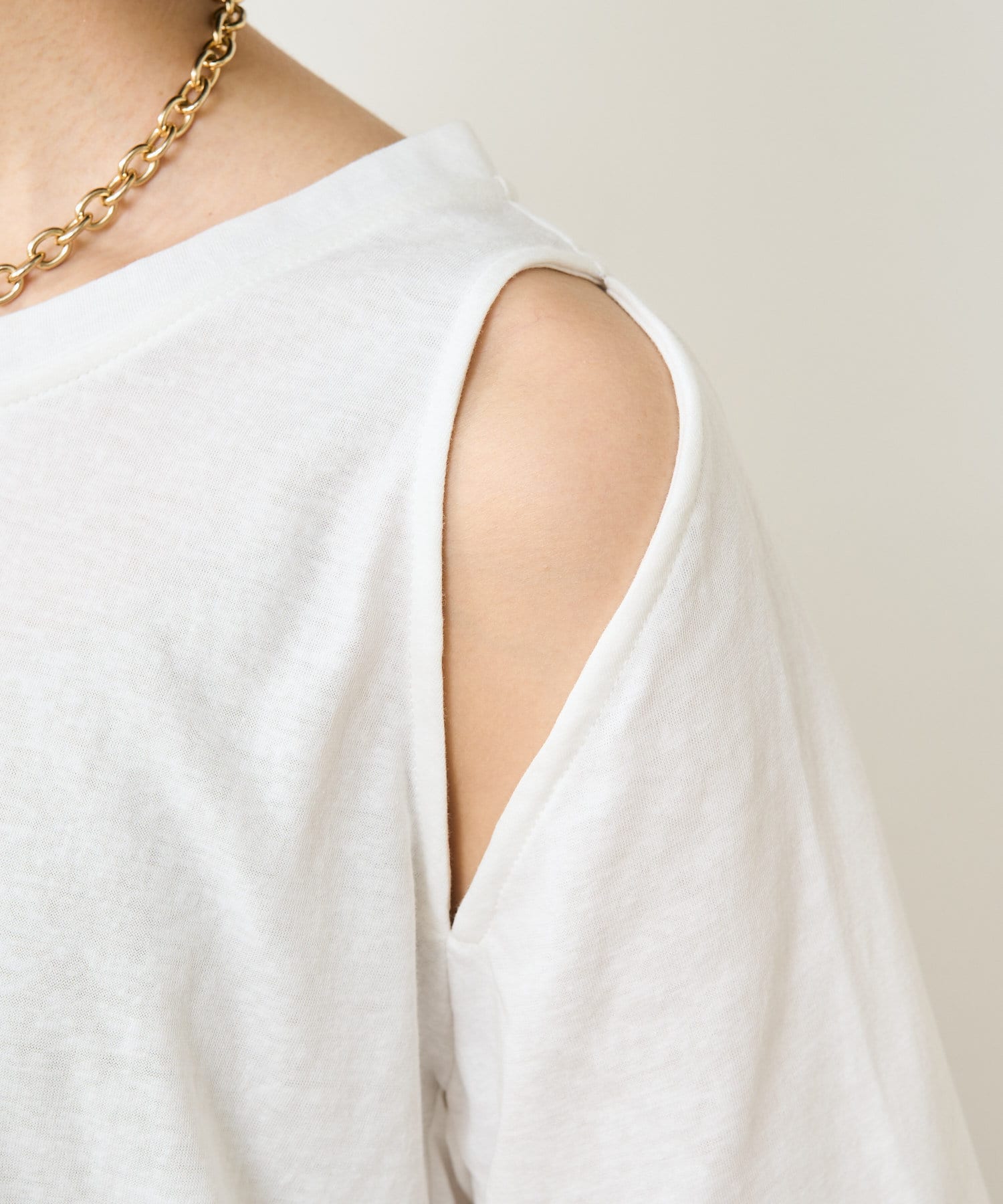 ・アーム部分のデザインスリットが抜け感があり、程よい肌見せが叶うTシャツ。