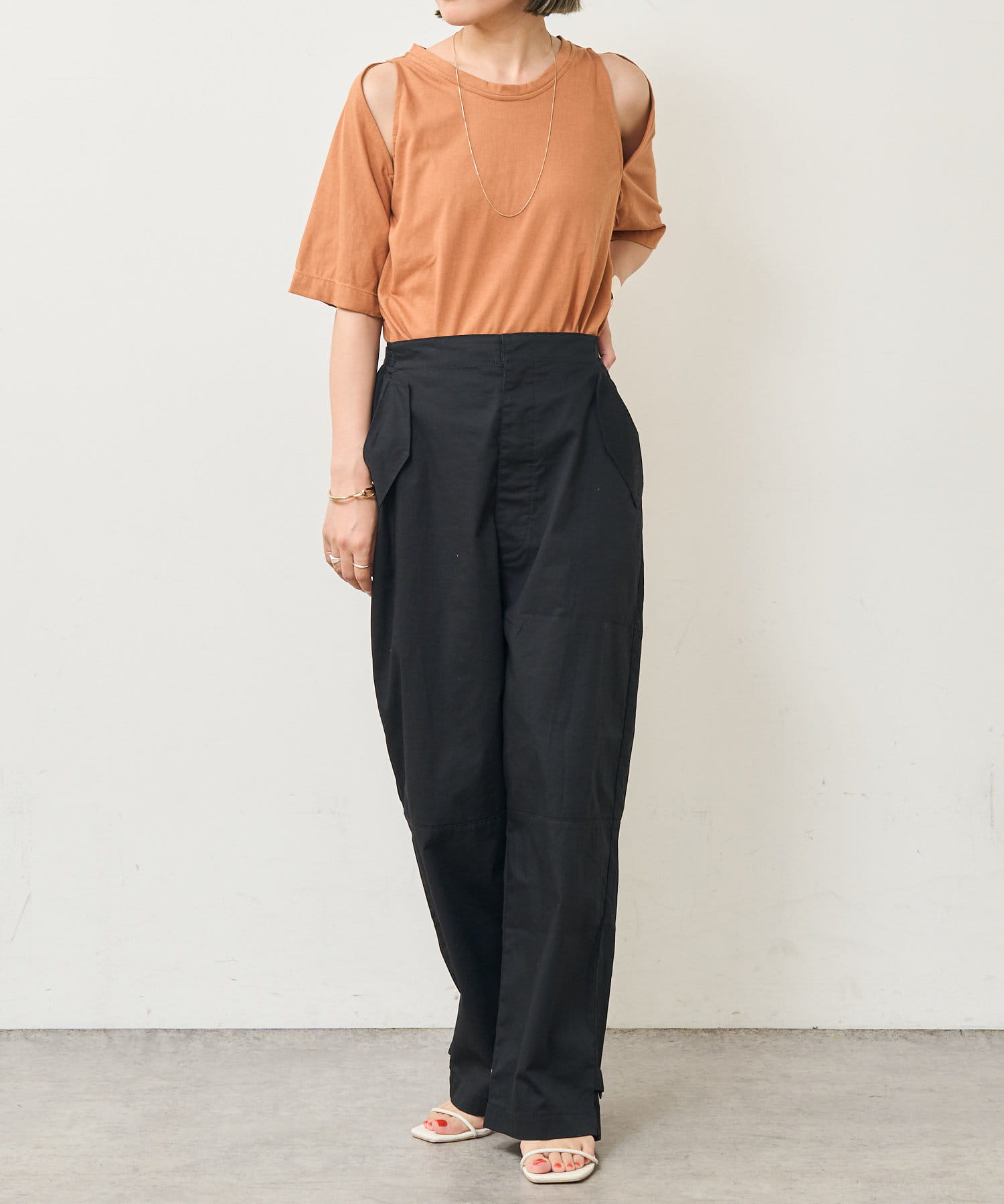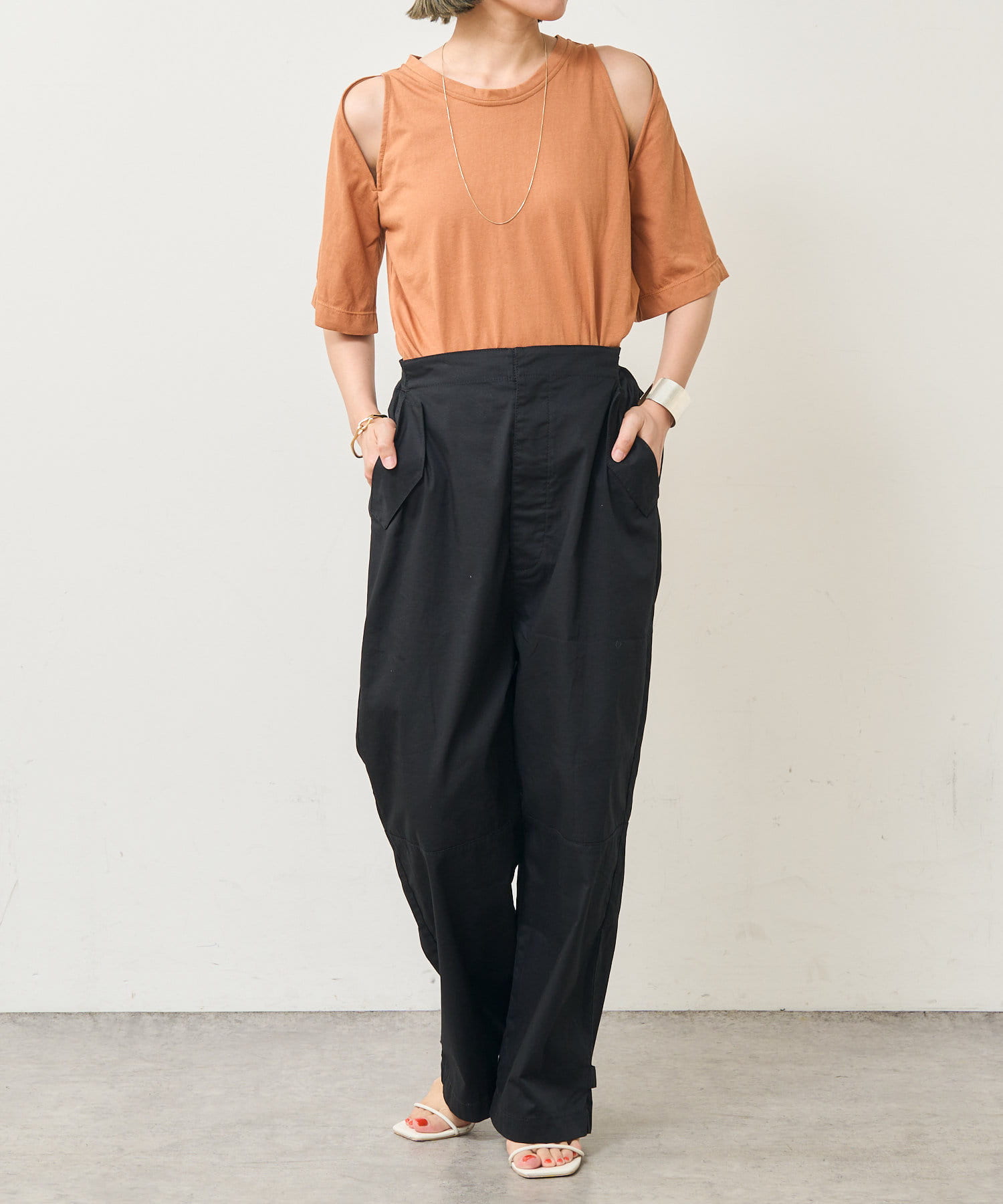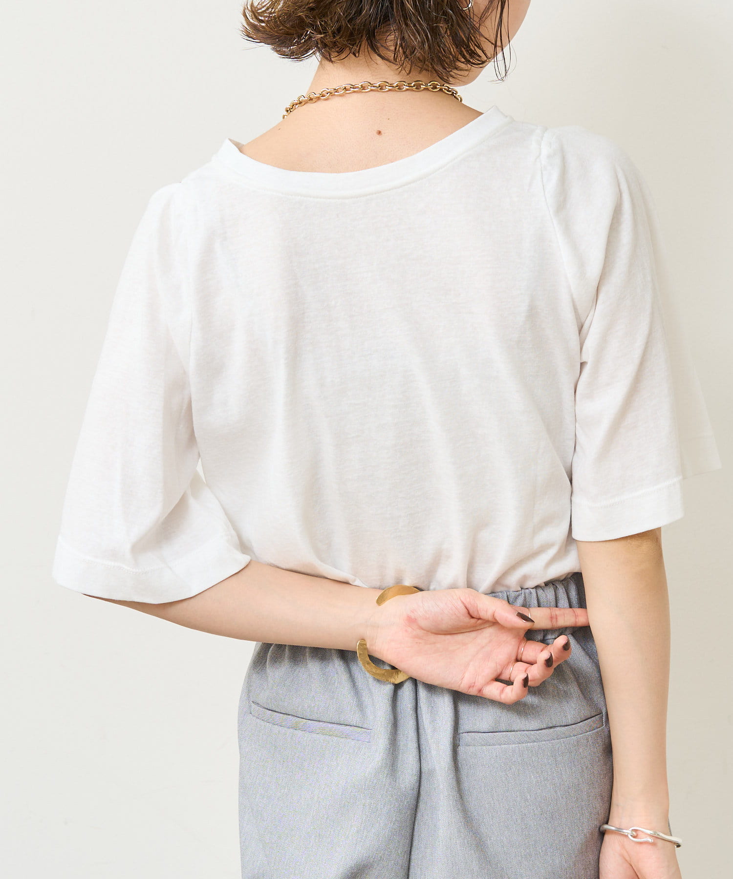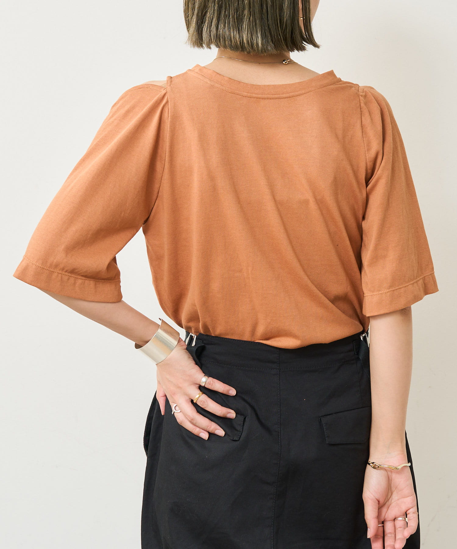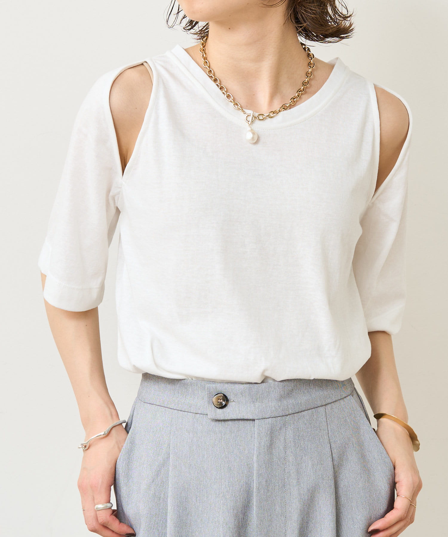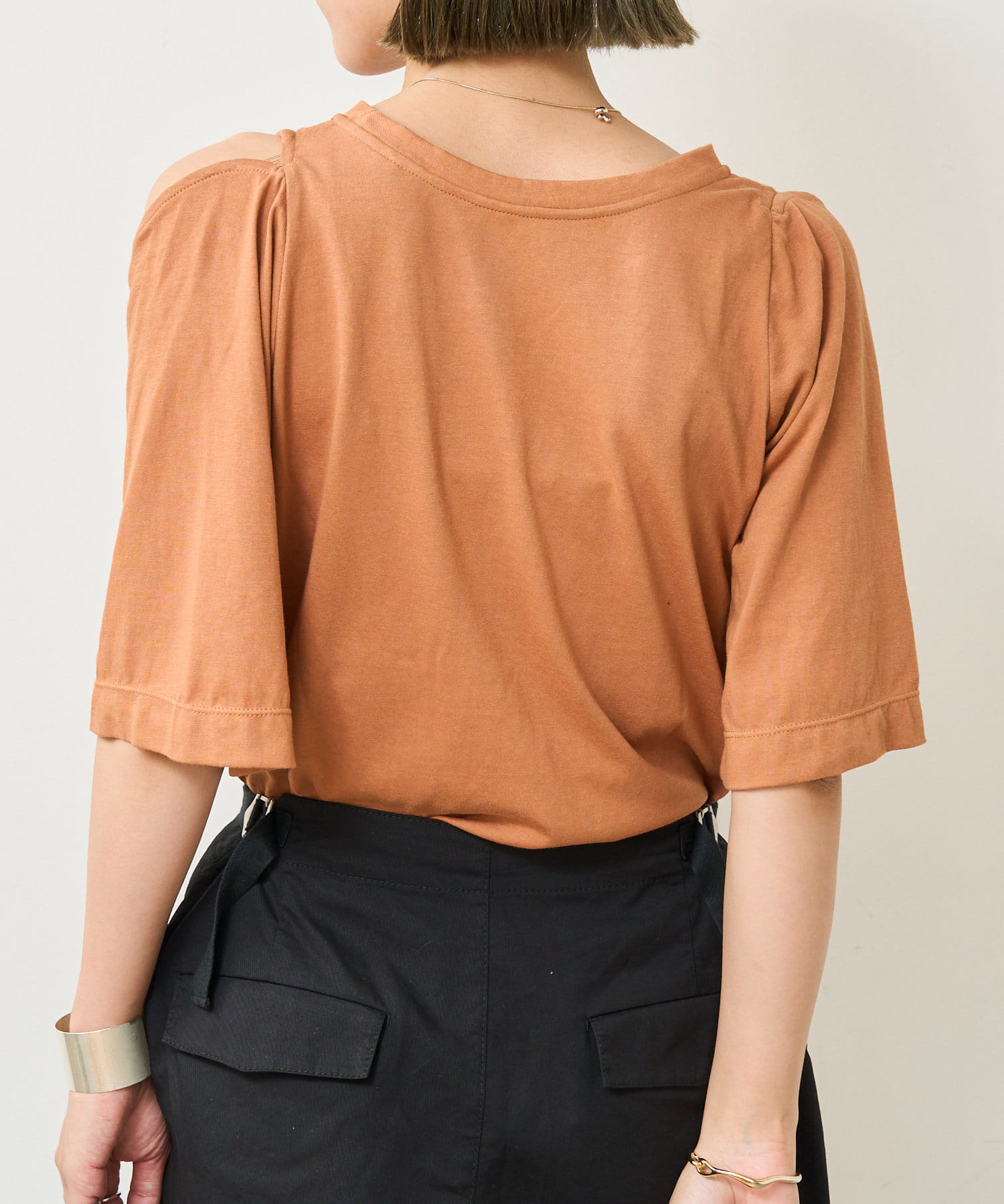 ・アーム部分のデザインスリットが抜け感があり、程よい肌見せが叶うTシャツ。