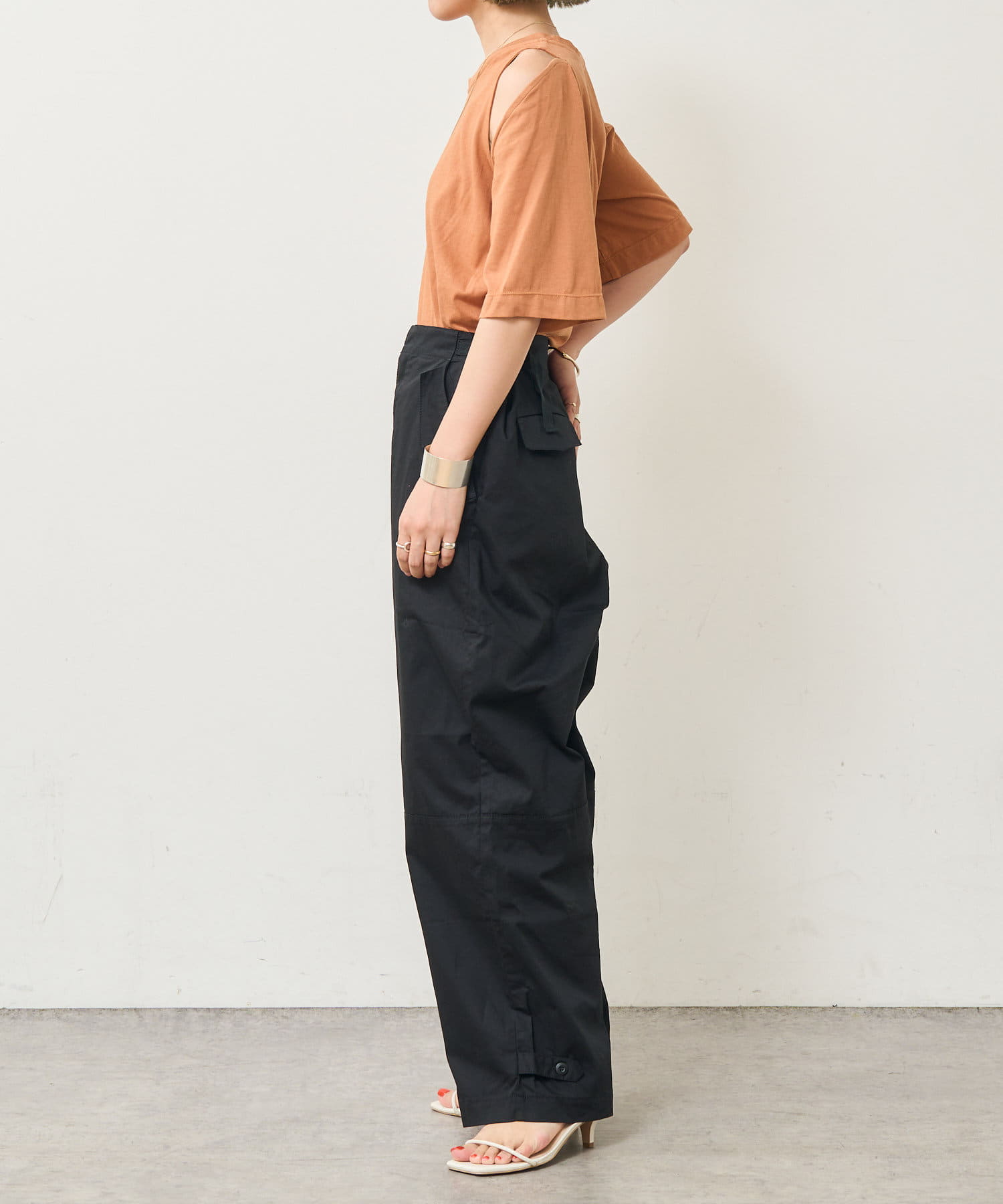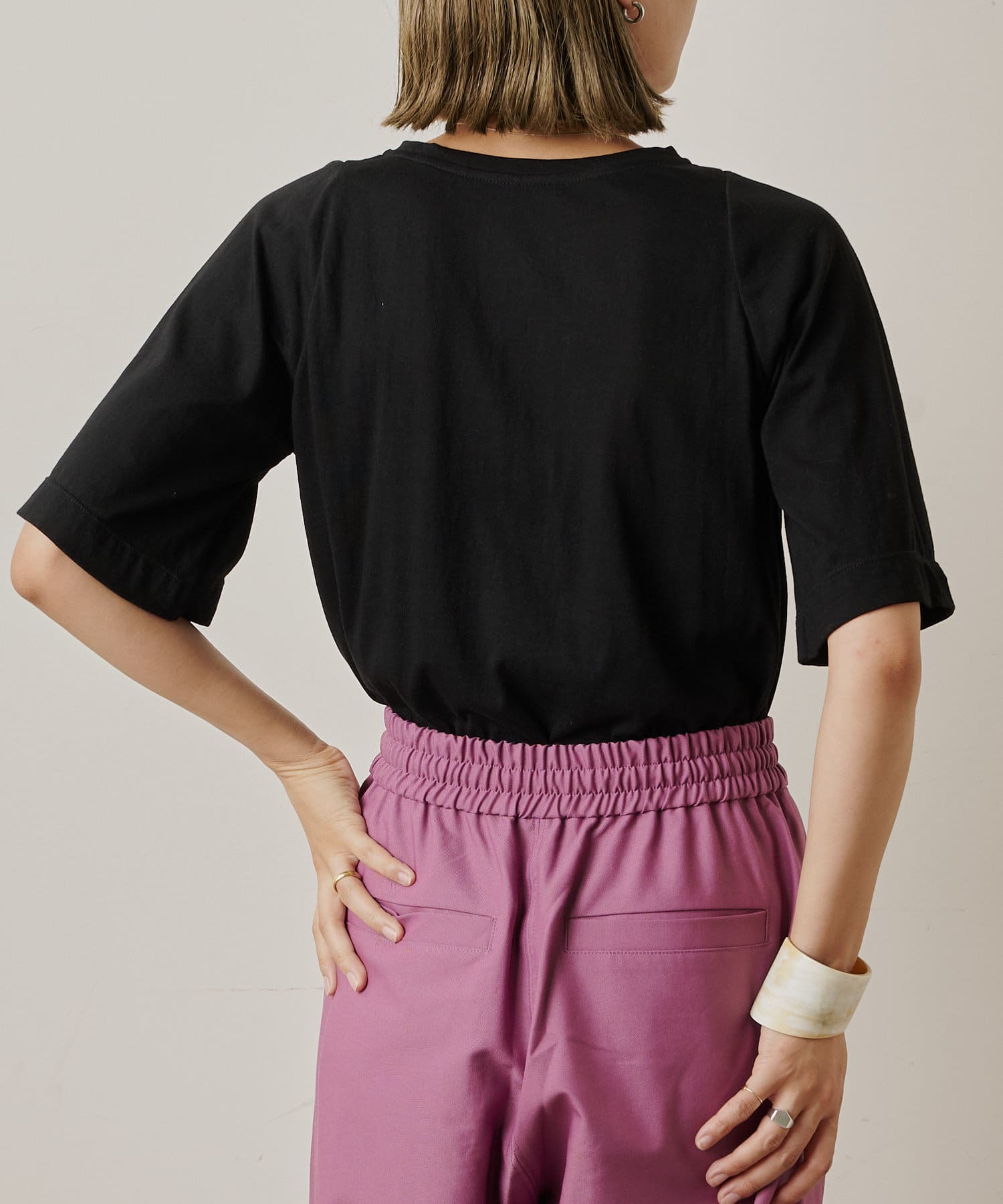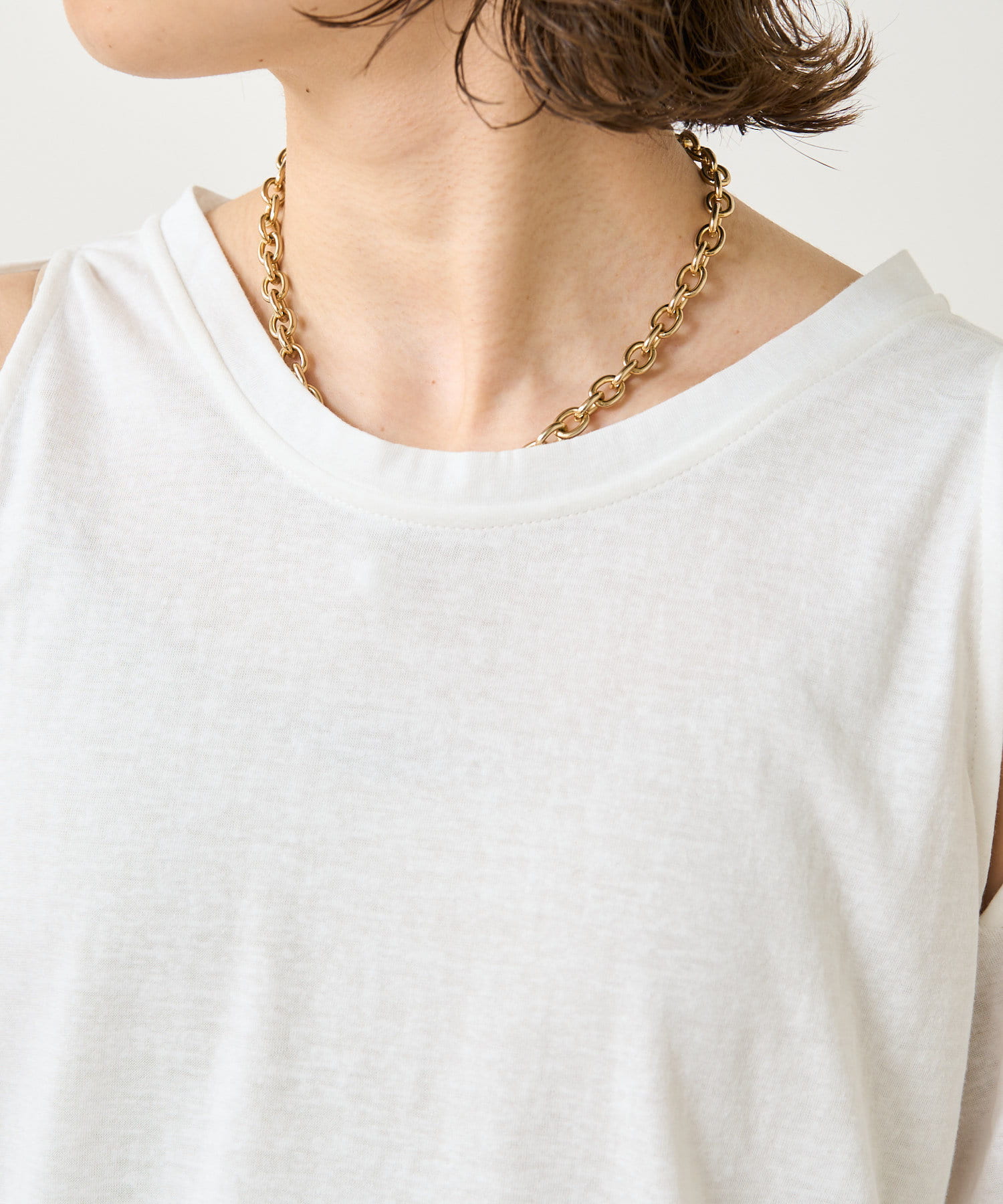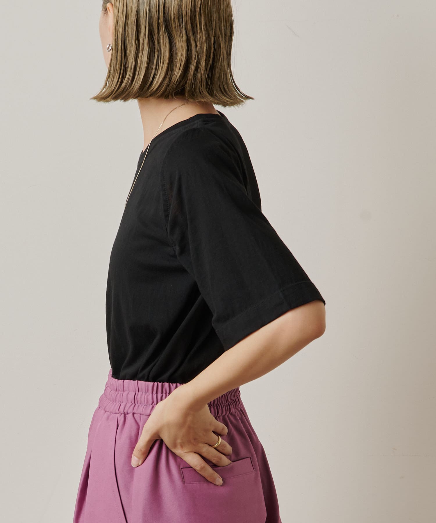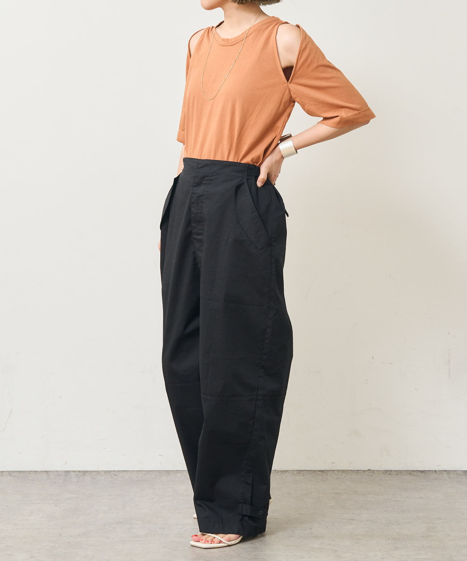 ・アーム部分のデザインスリットが抜け感があり、程よい肌見せが叶うTシャツ。