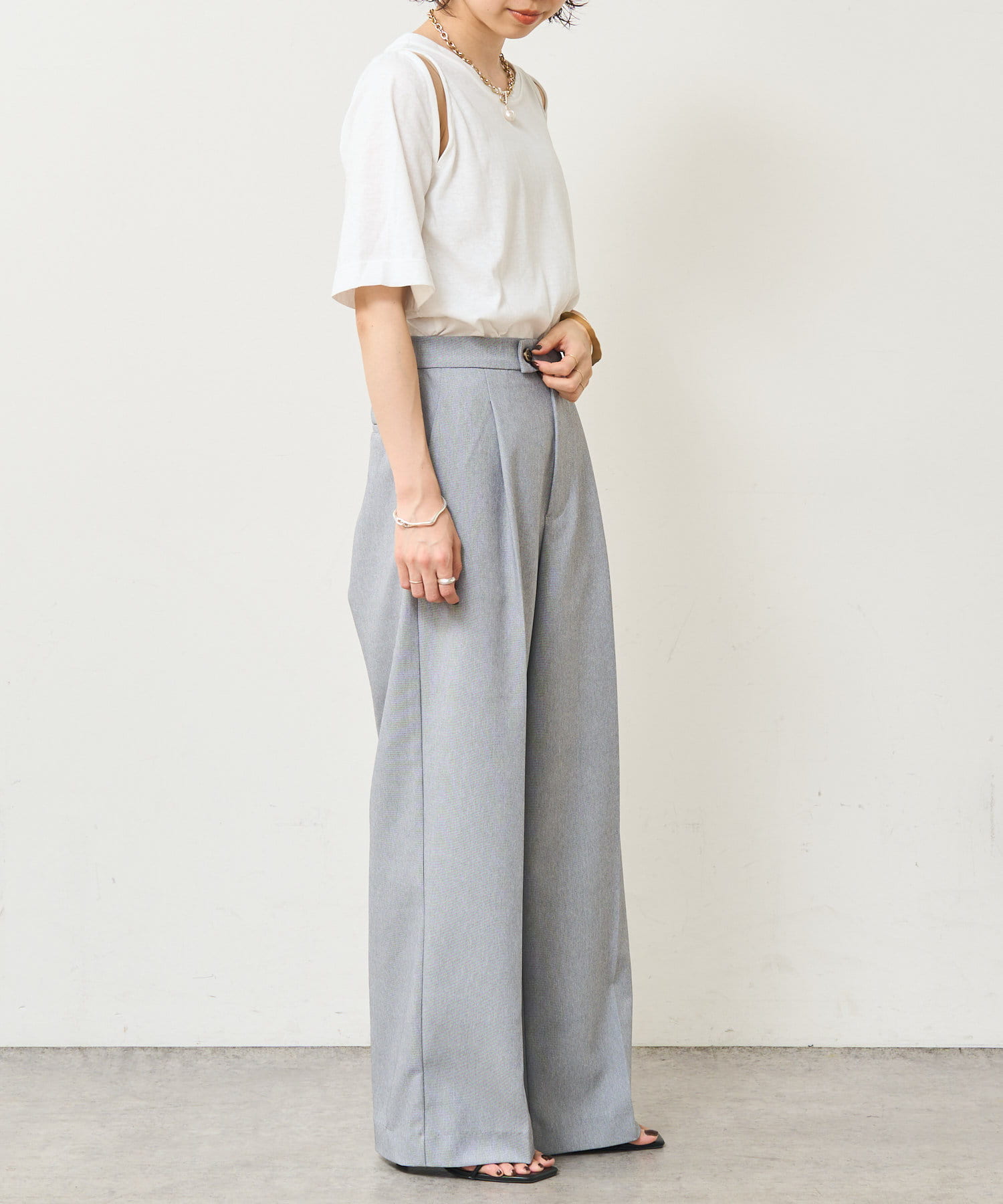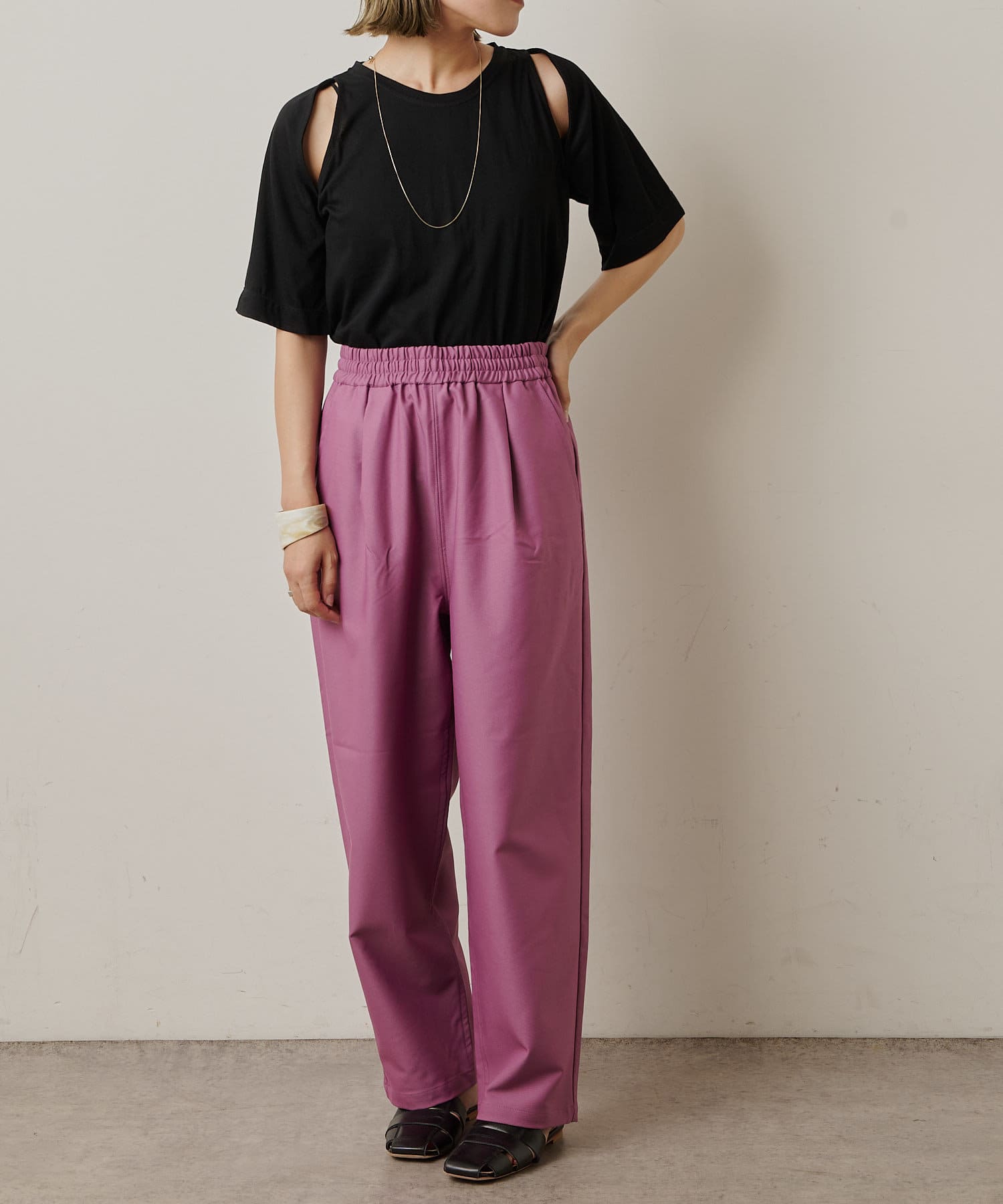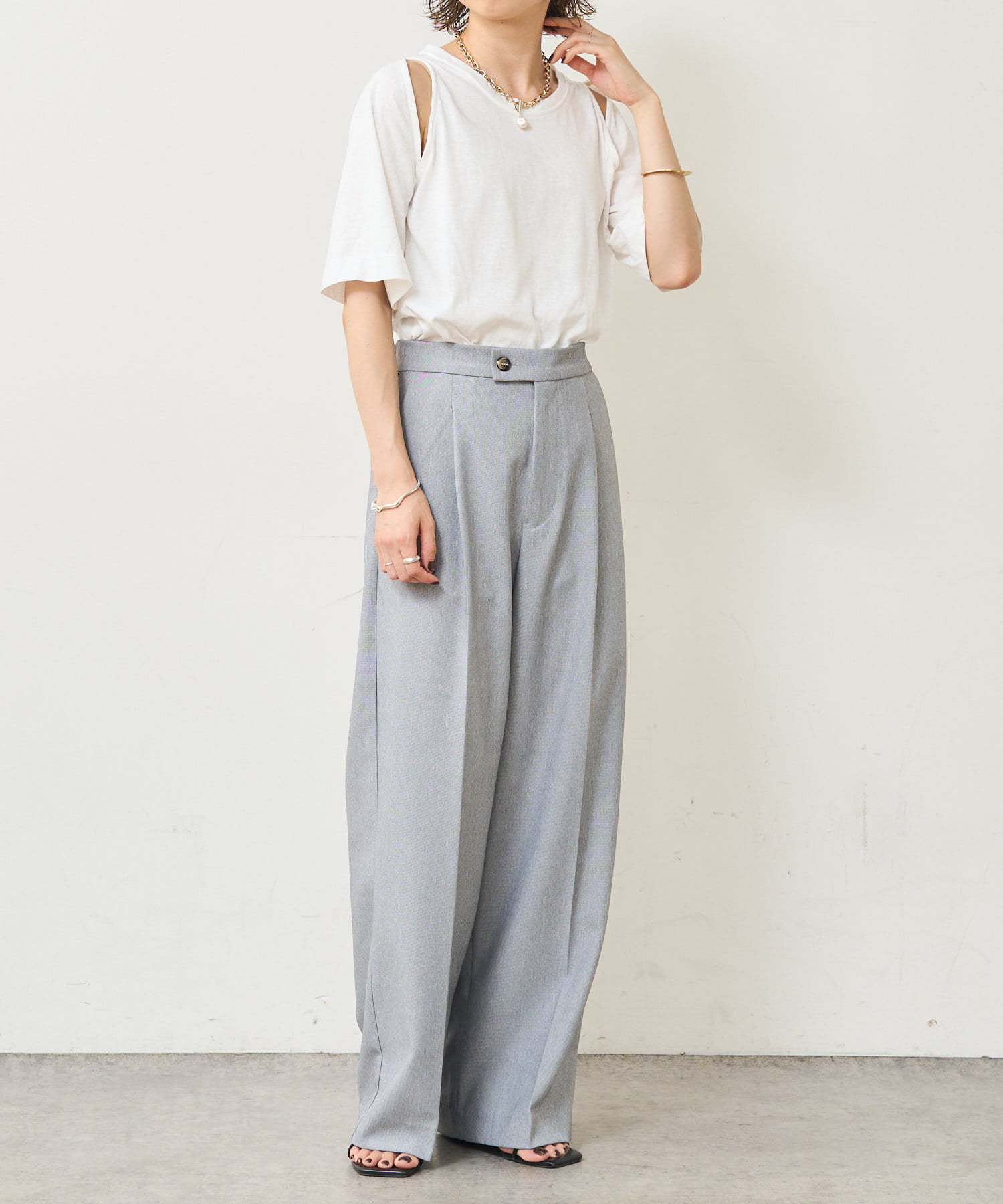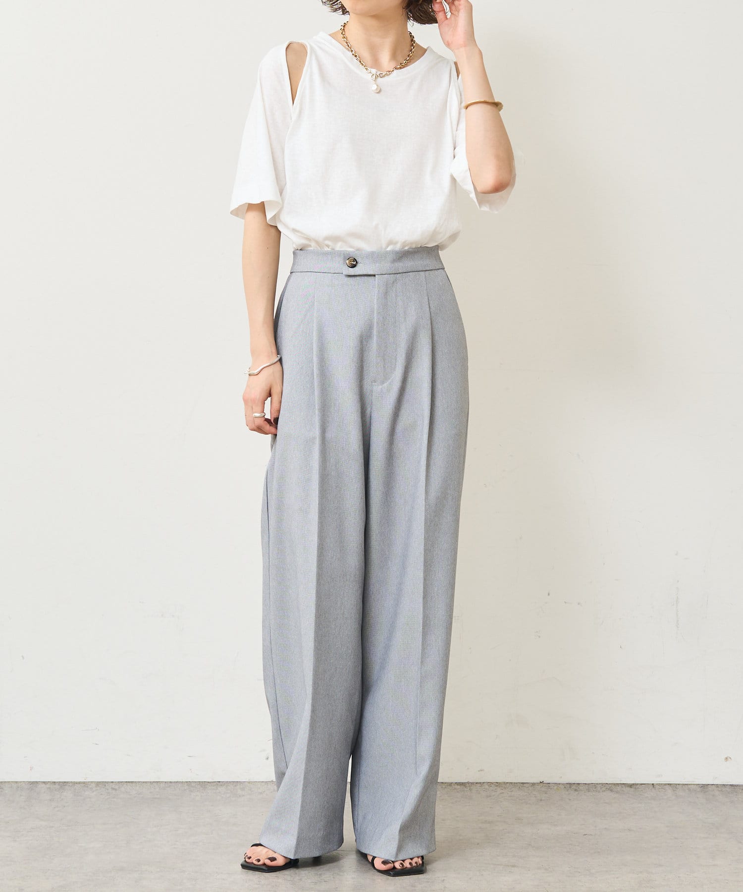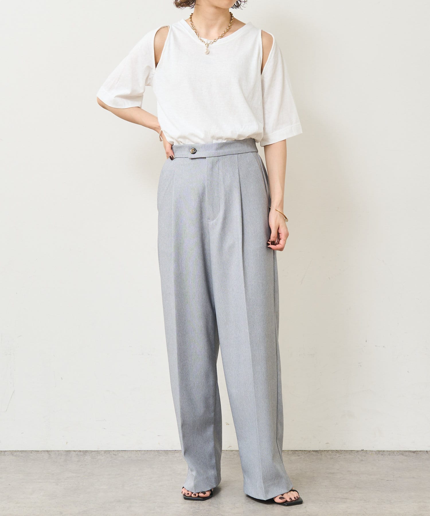 ・アーム部分のデザインスリットが抜け感があり、程よい肌見せが叶うTシャツ。
