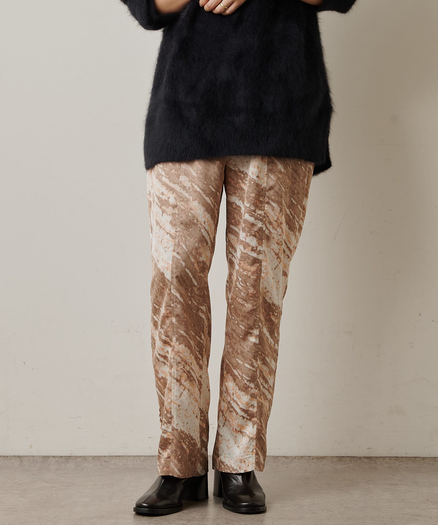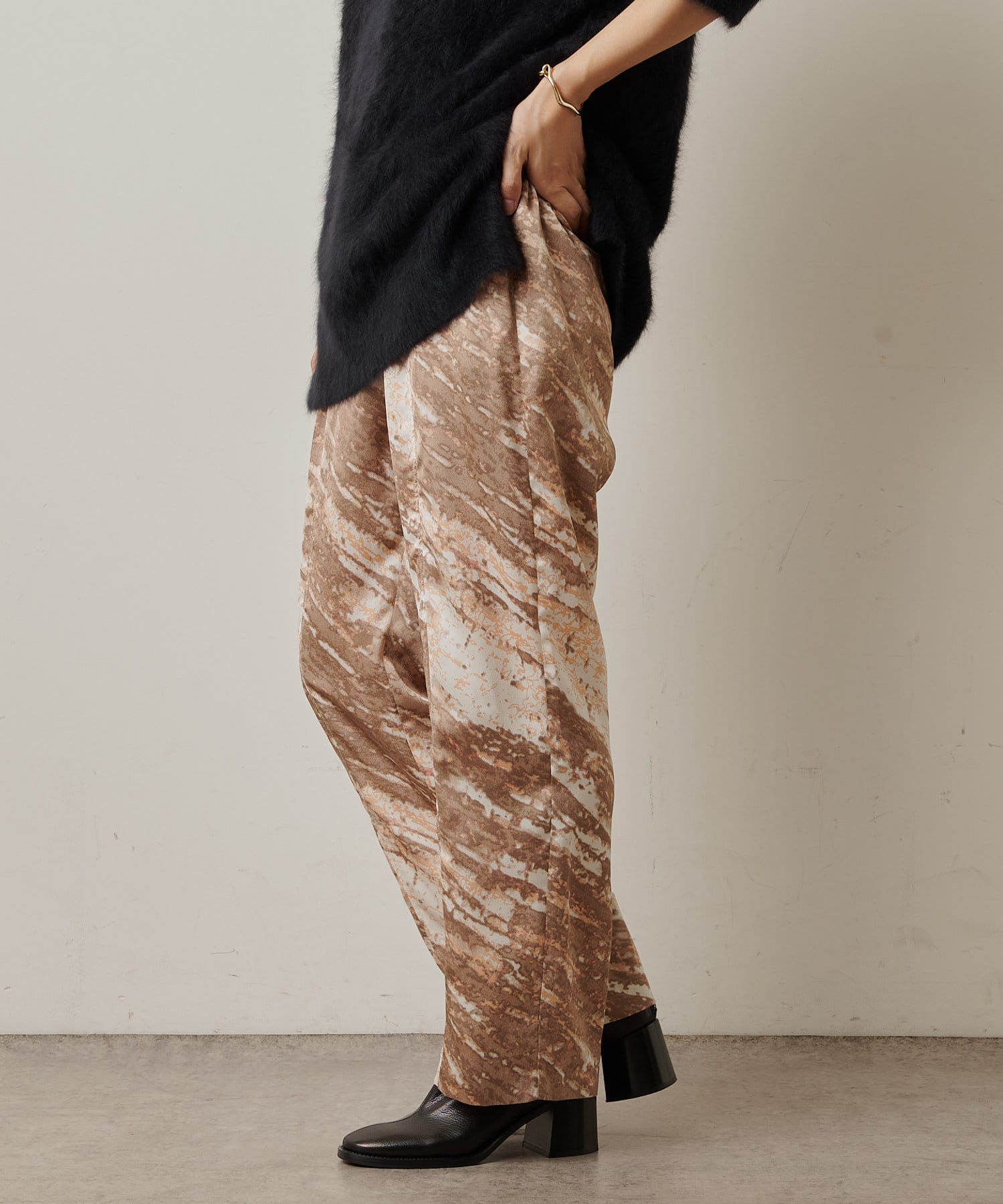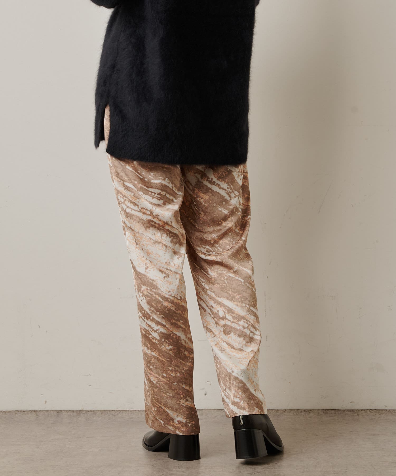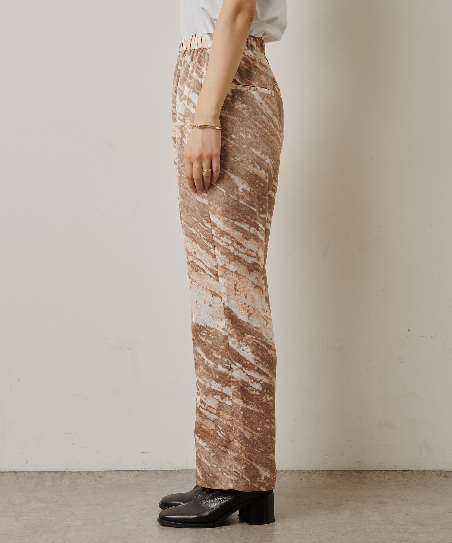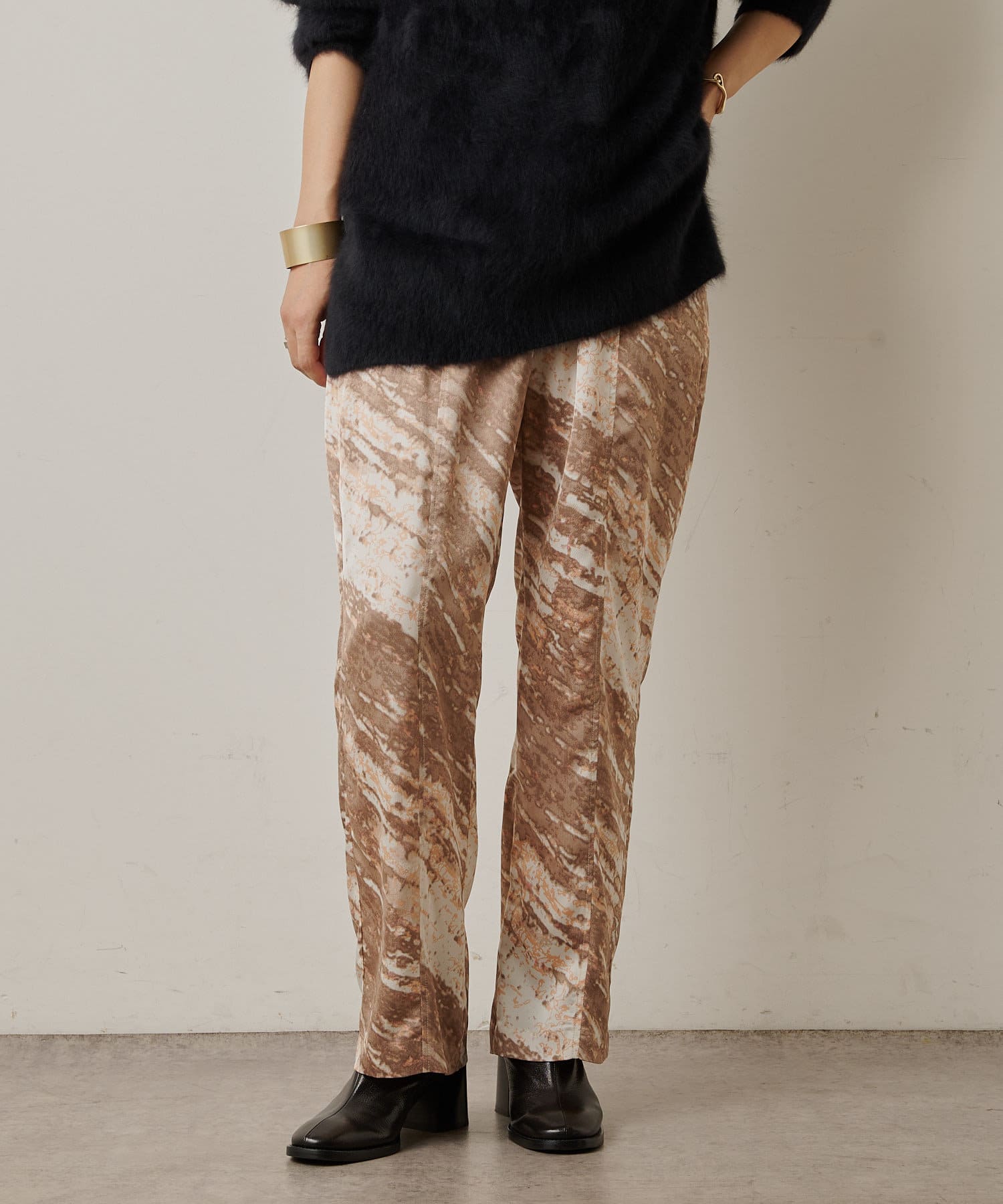 コーディネートの主役にしたいモードなプリント柄のイージーパンツ