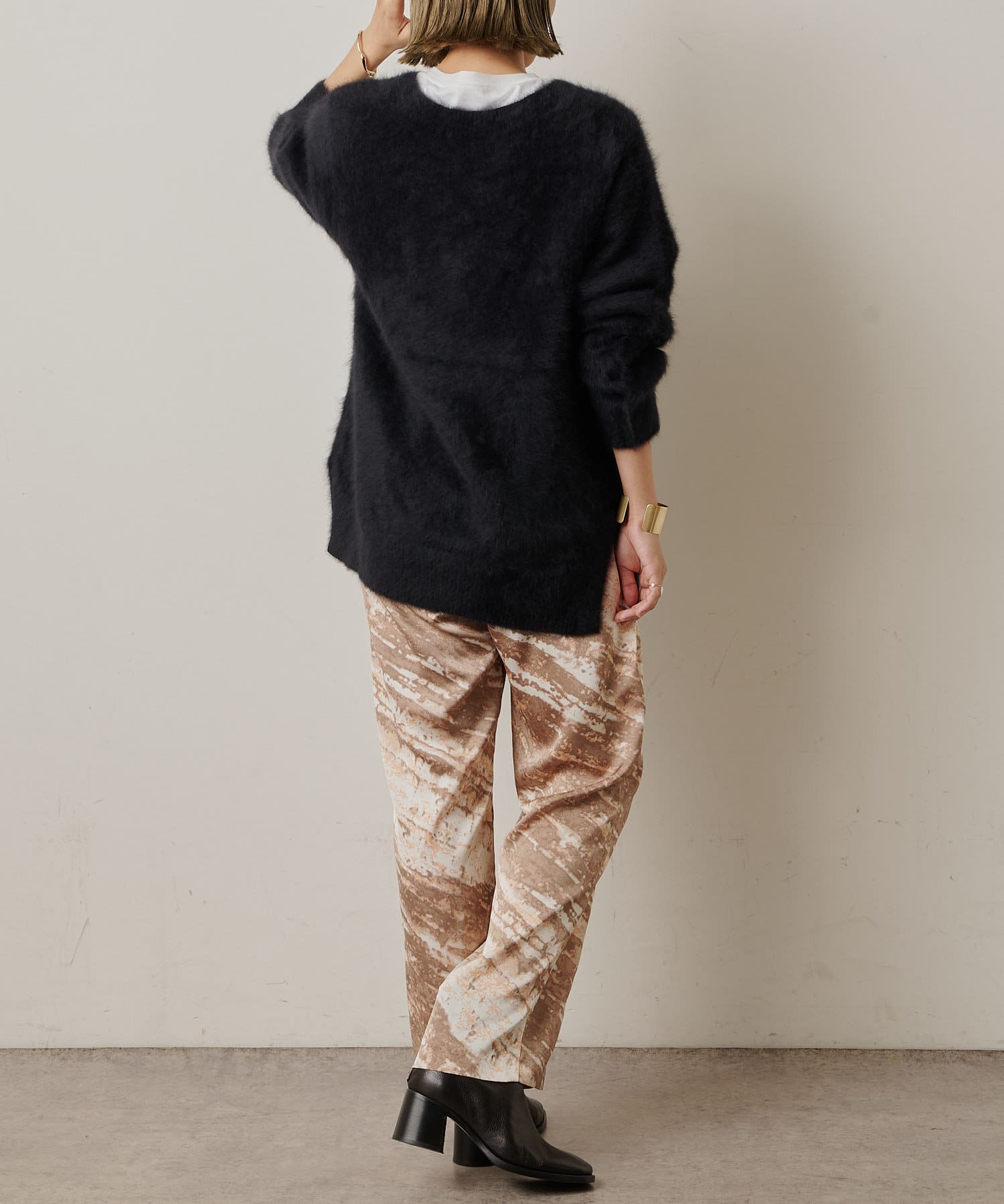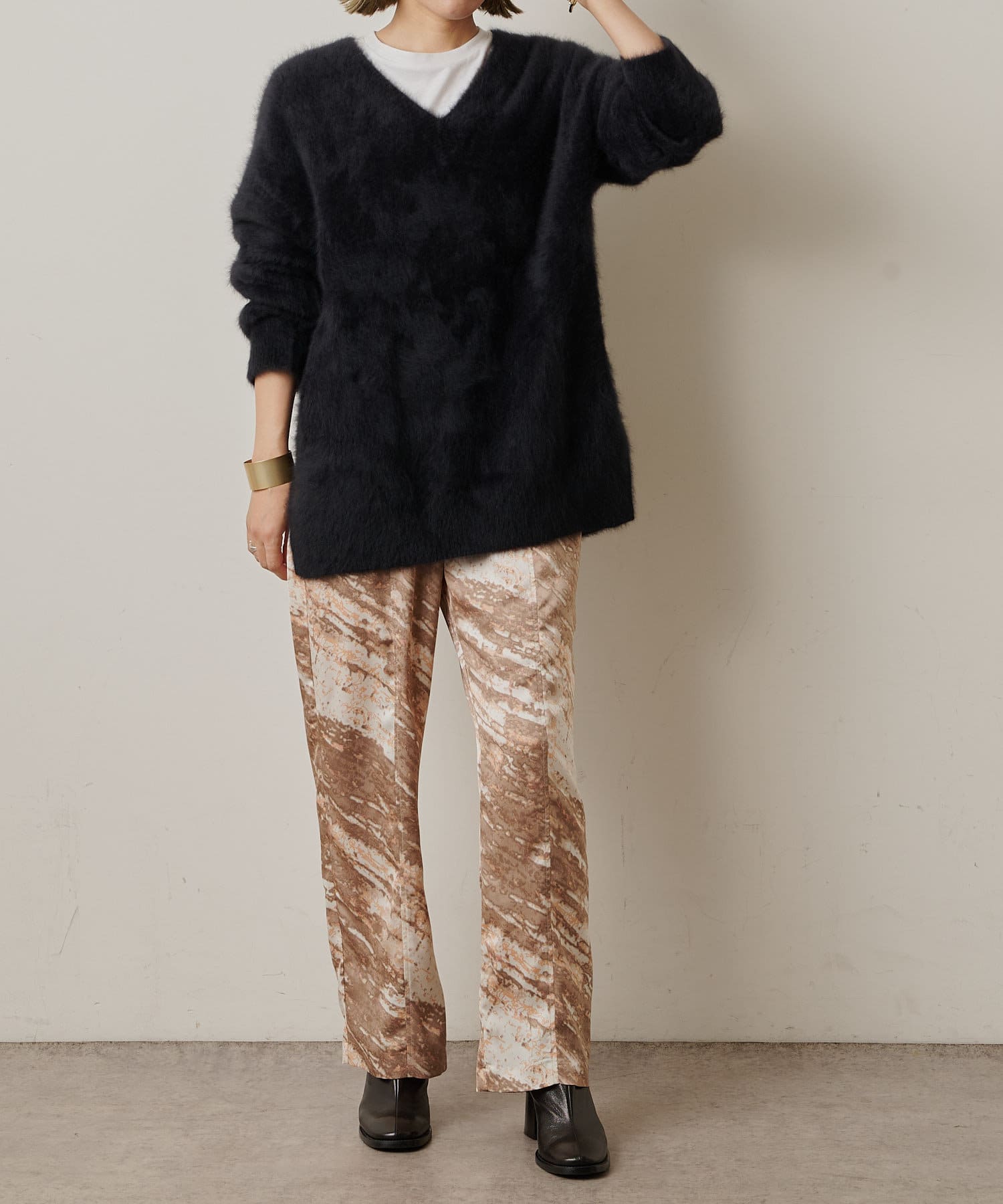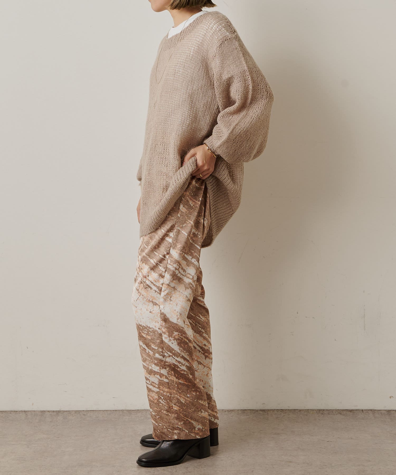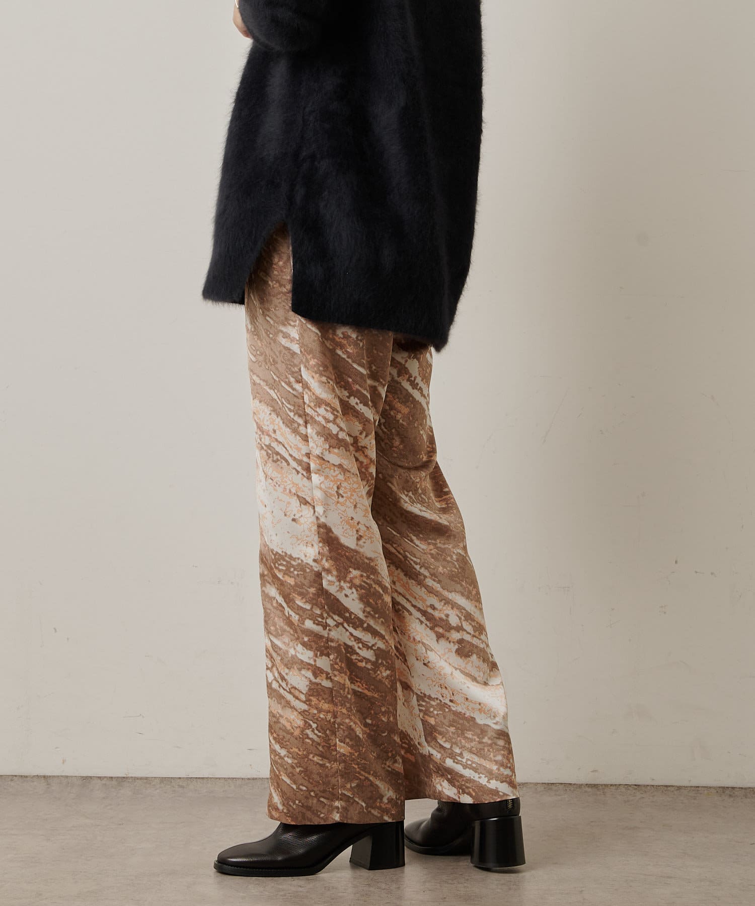 コーディネートの主役にしたいモードなプリント柄のイージーパンツ
