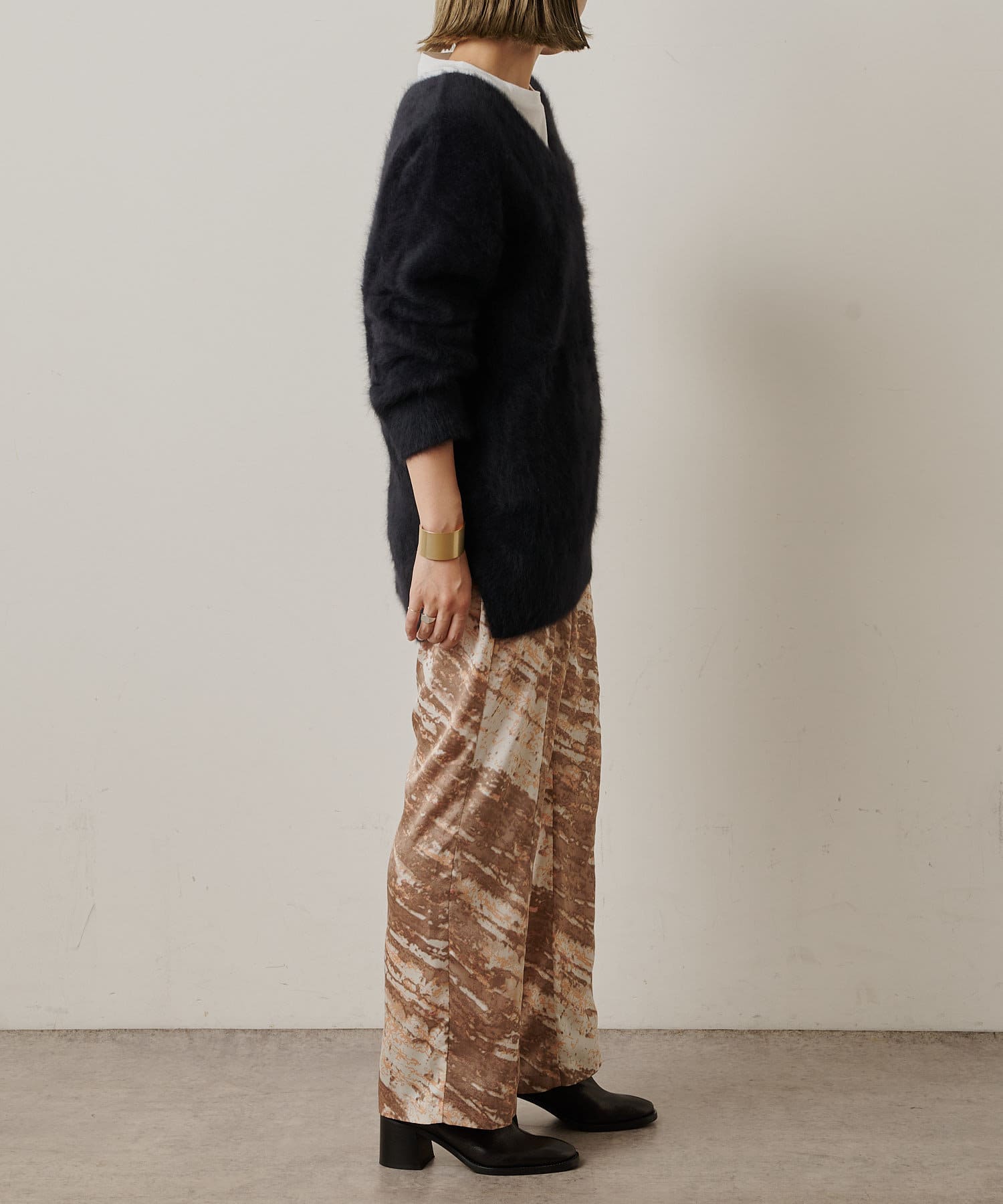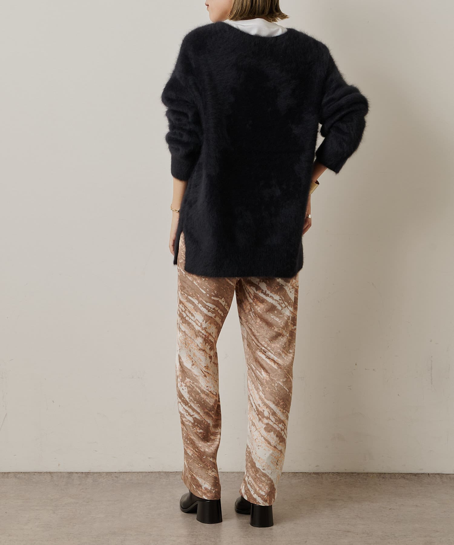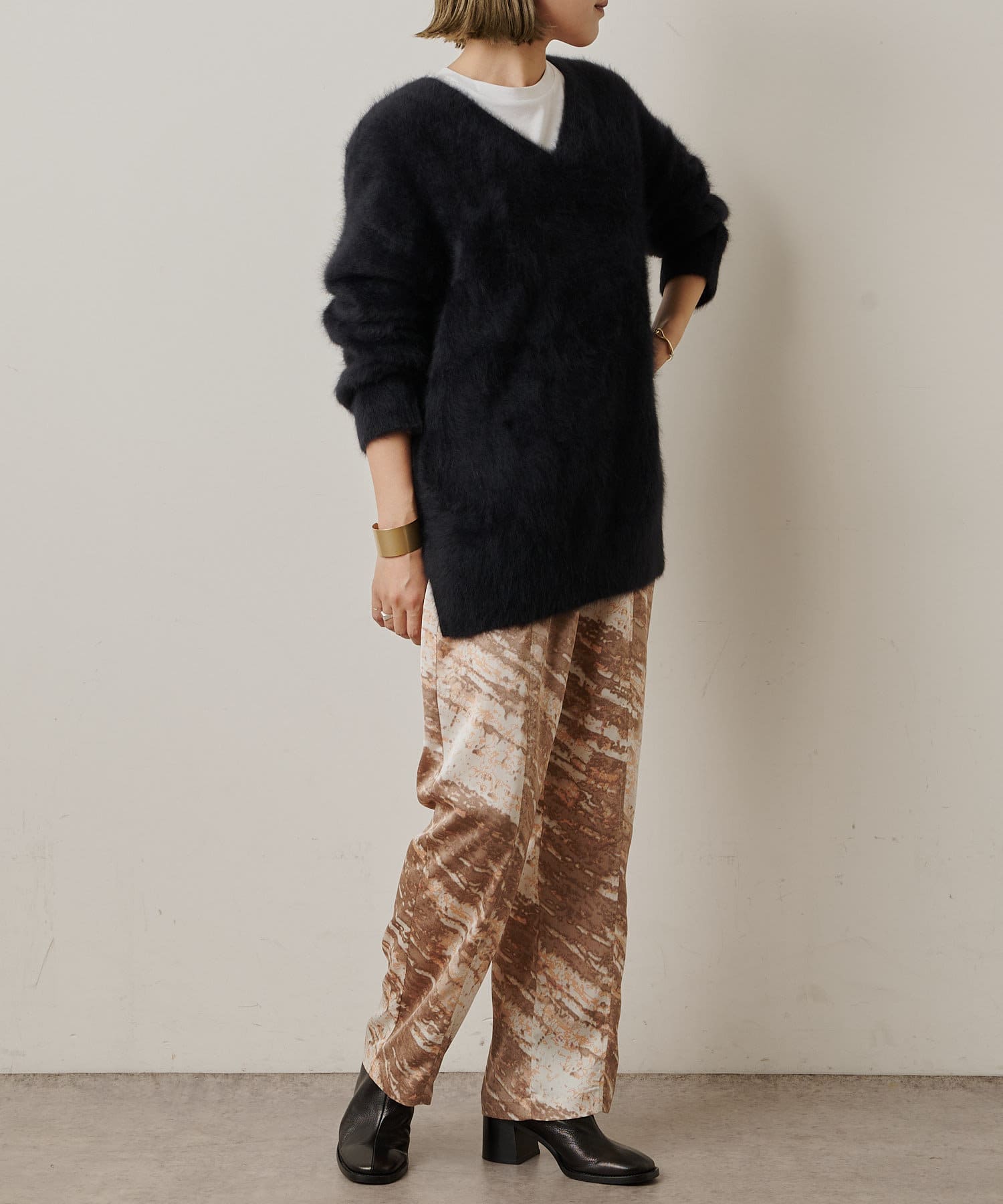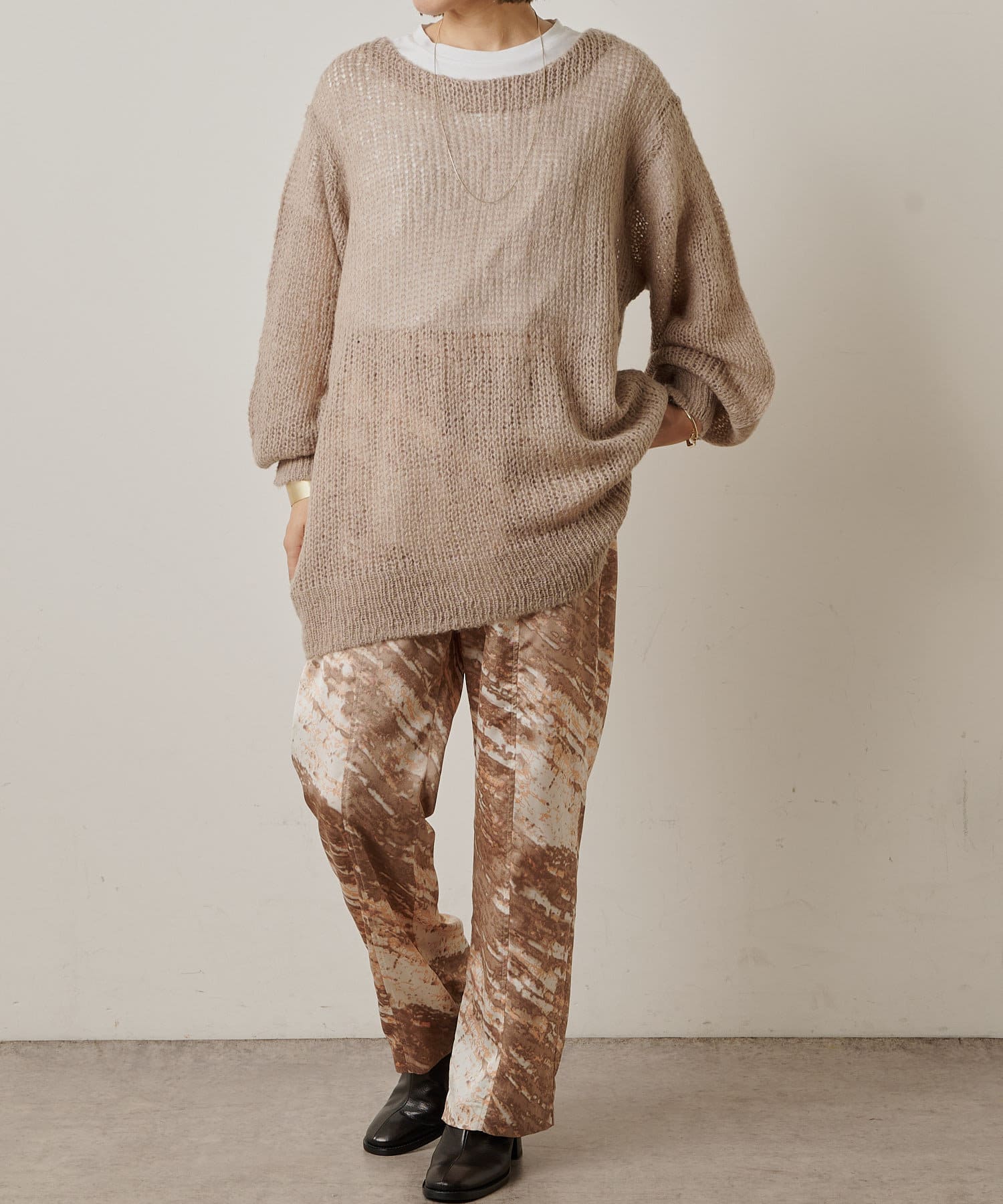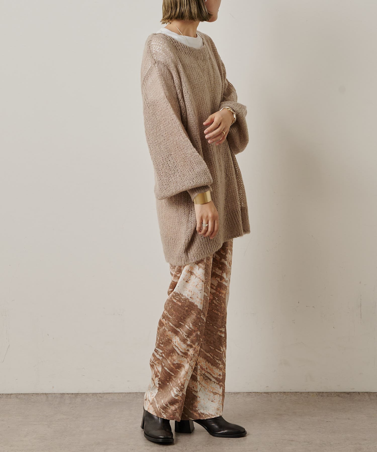 コーディネートの主役にしたいモードなプリント柄のイージーパンツ
