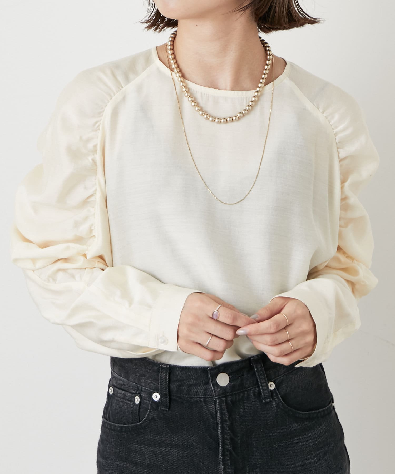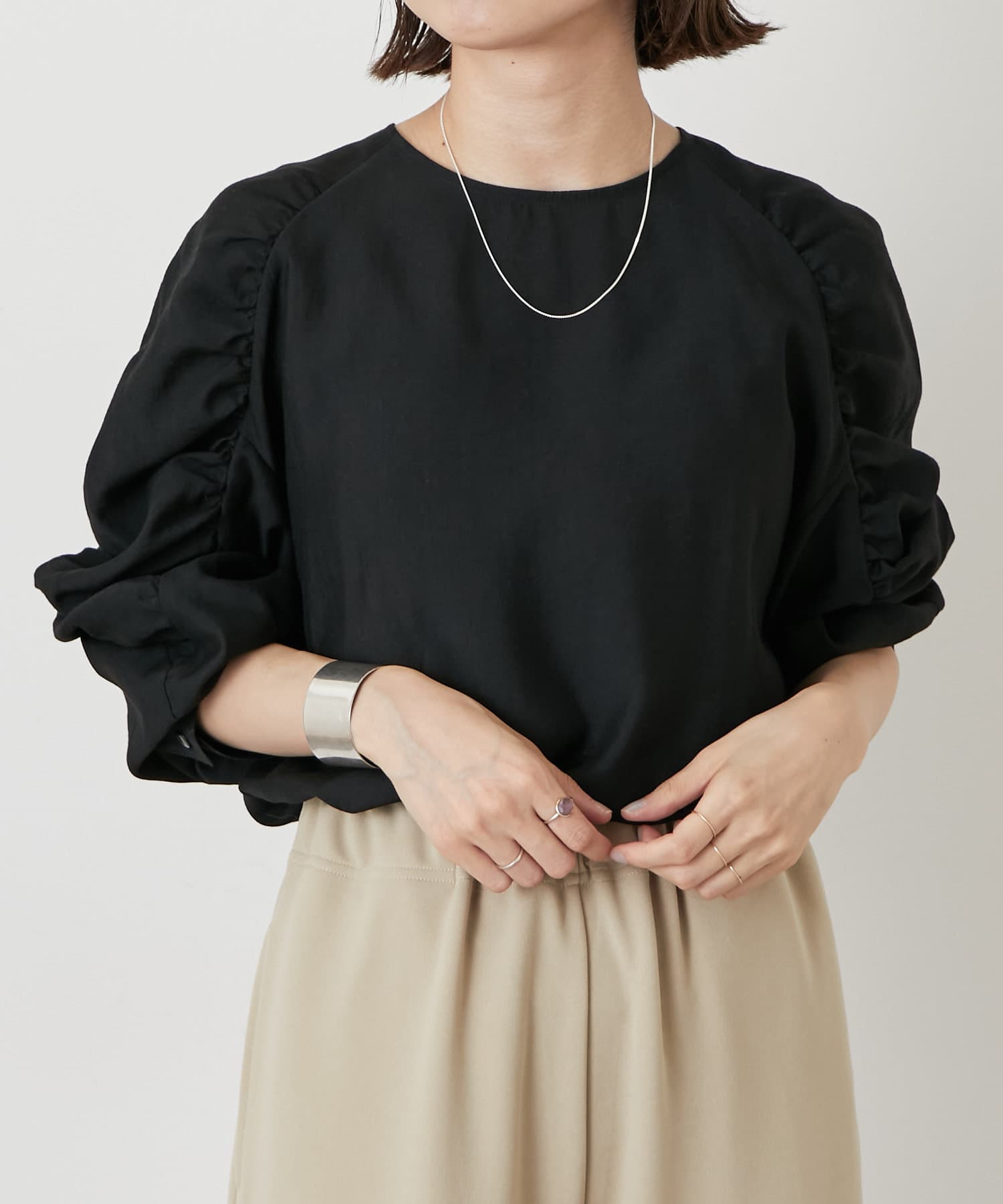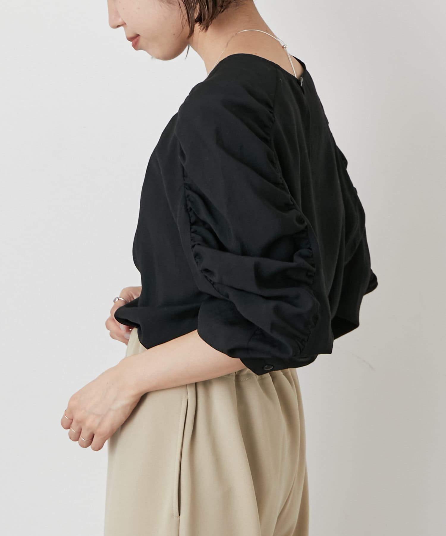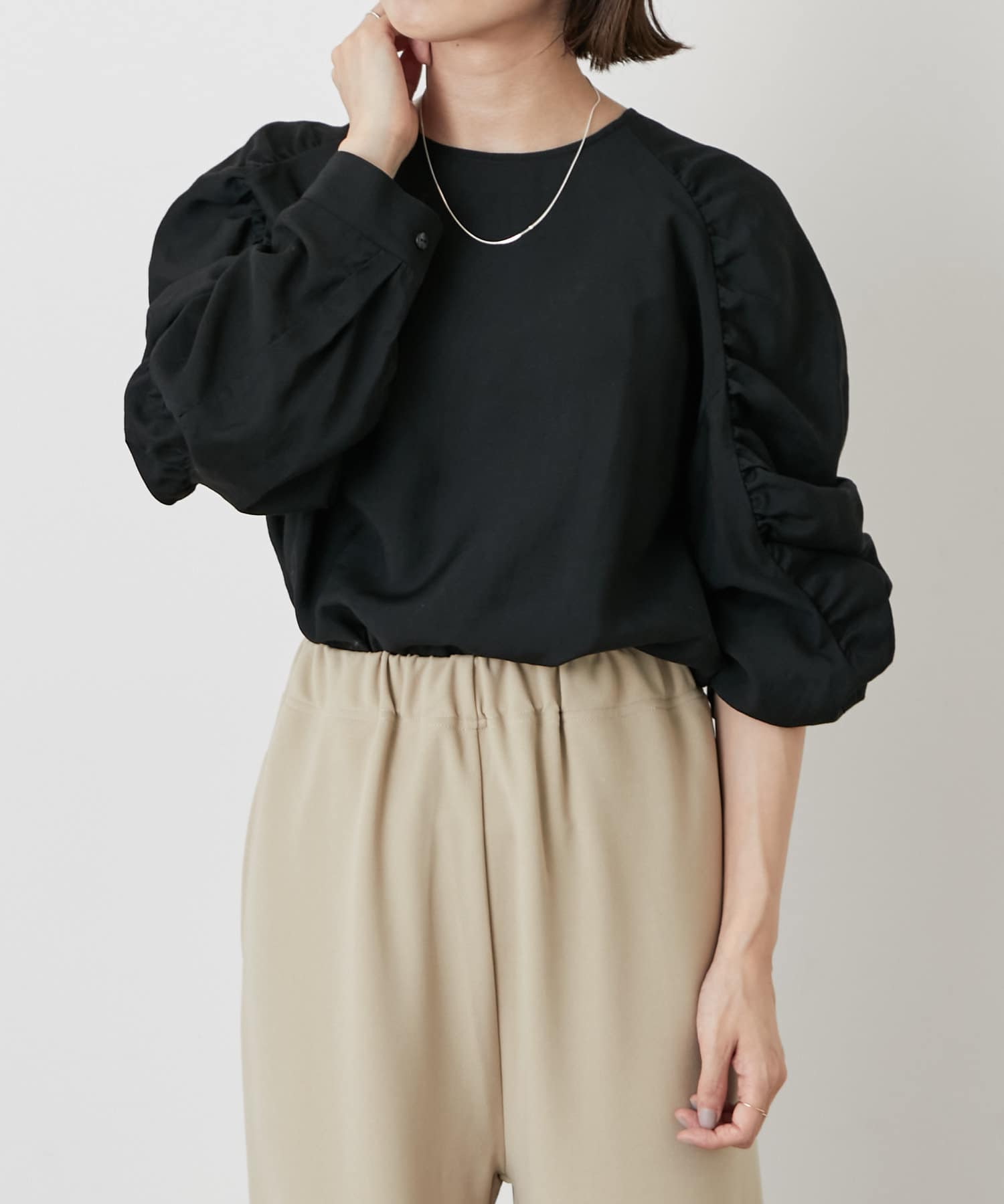 袖にたっぷりと施されたギャザーが華やかなブラウス