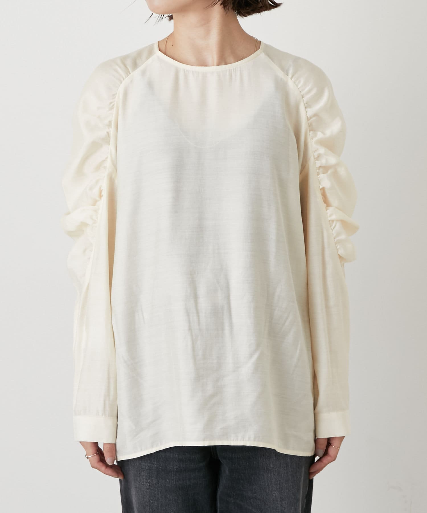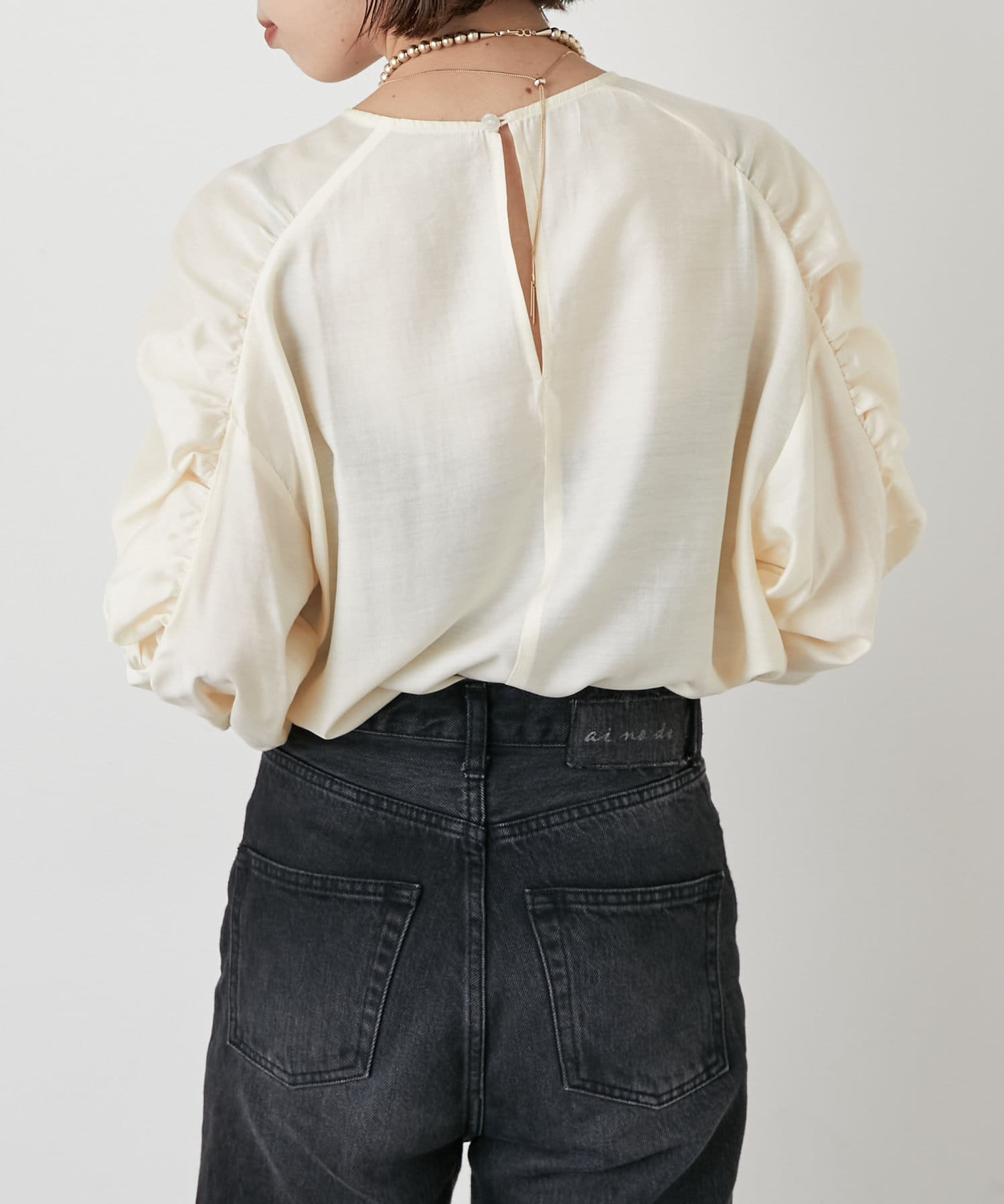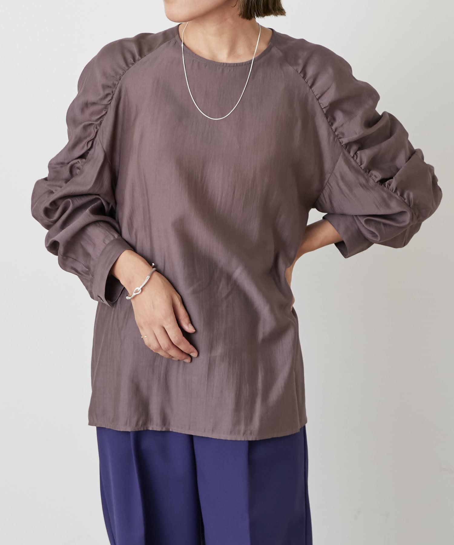 袖にたっぷりと施されたギャザーが華やかなブラウス