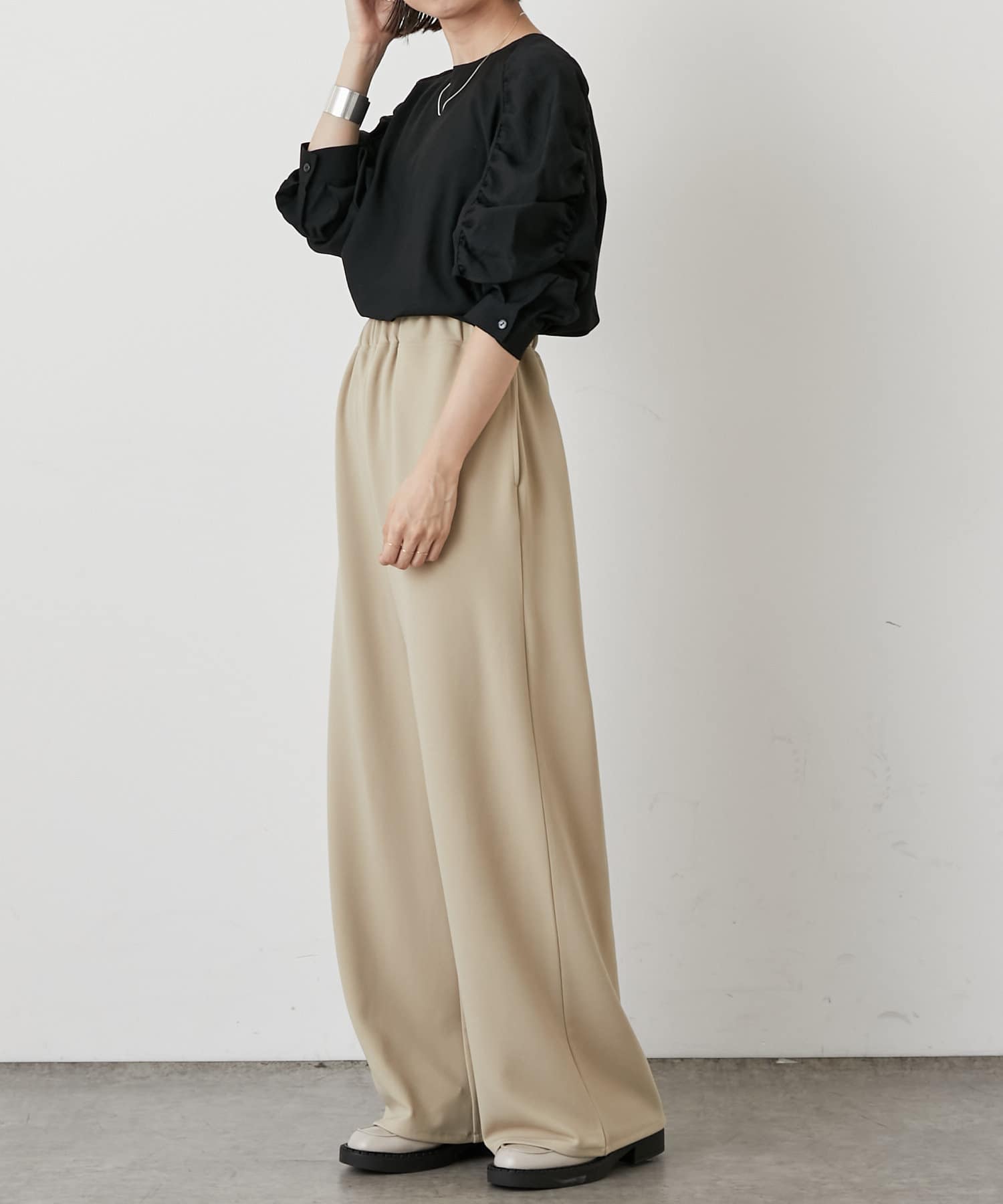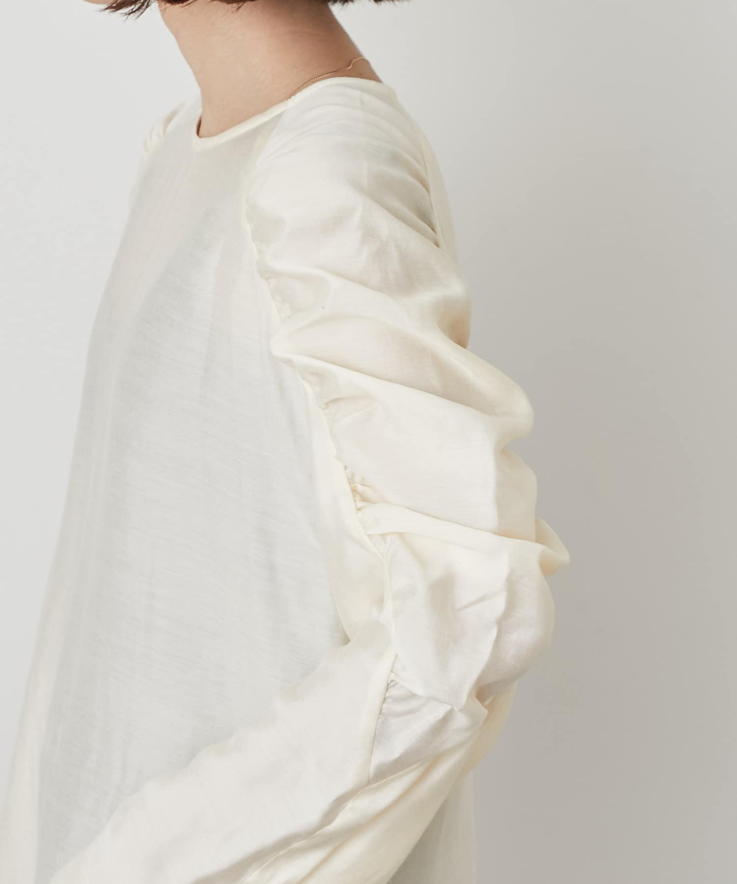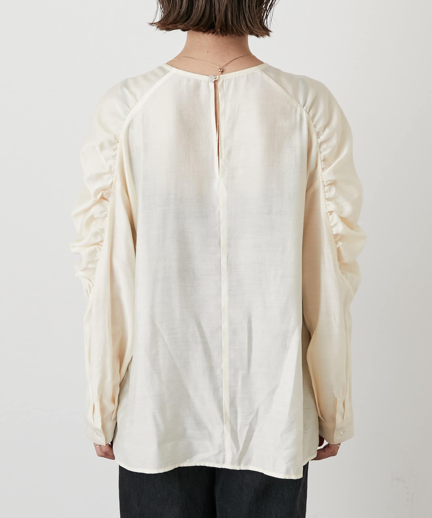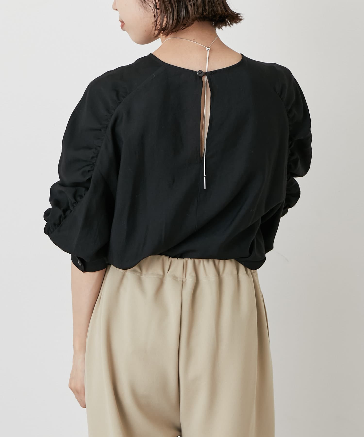 袖にたっぷりと施されたギャザーが華やかなブラウス