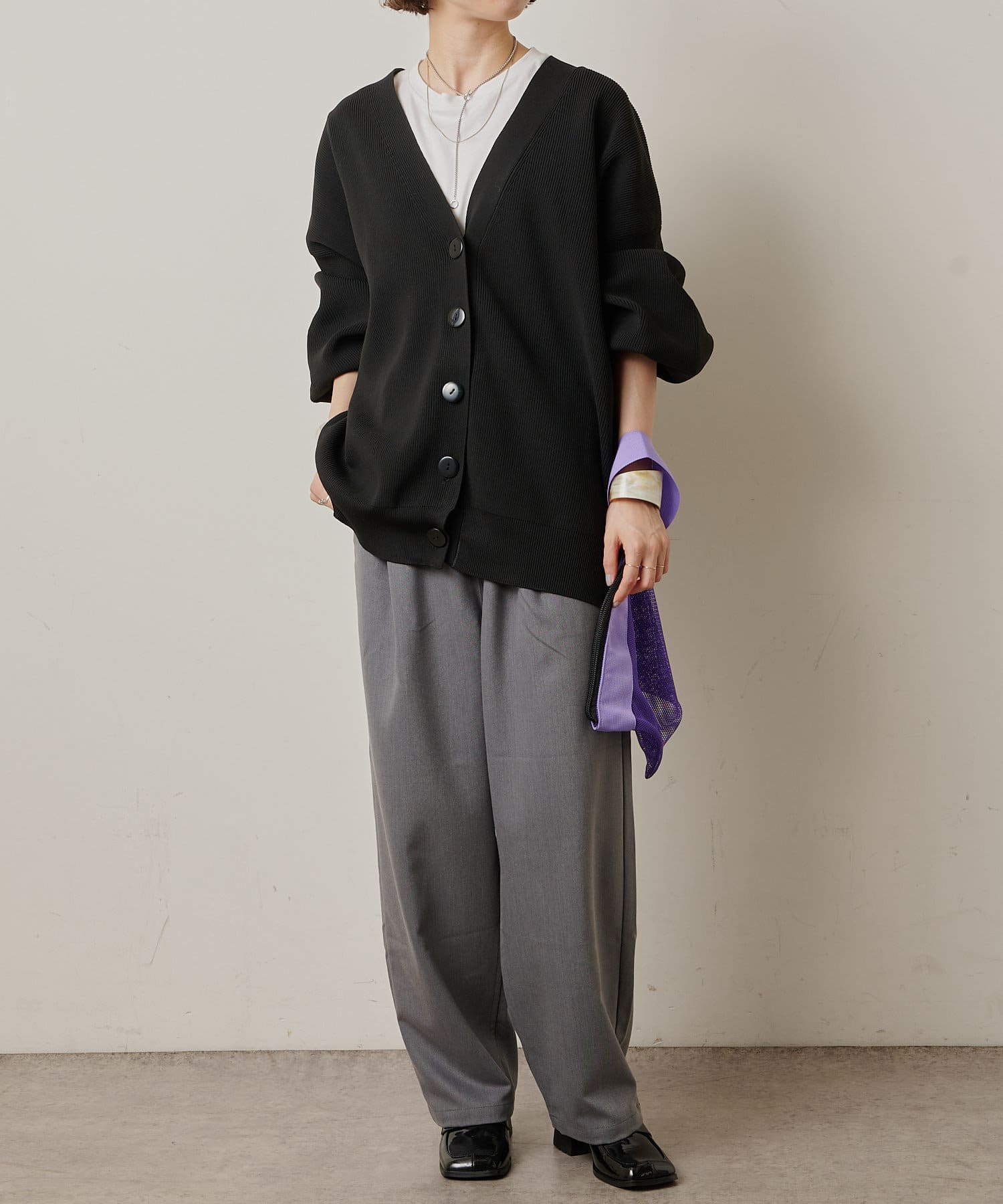 ・たっぷりとした身幅に丸みのあるシルエットが女性らしく、大きめのボタンもコーディネートのポイントに◎ ベーシックで合わせるアイテムも問わず、シンプルにスタイリングしても雰囲気のでるカーディガンです。