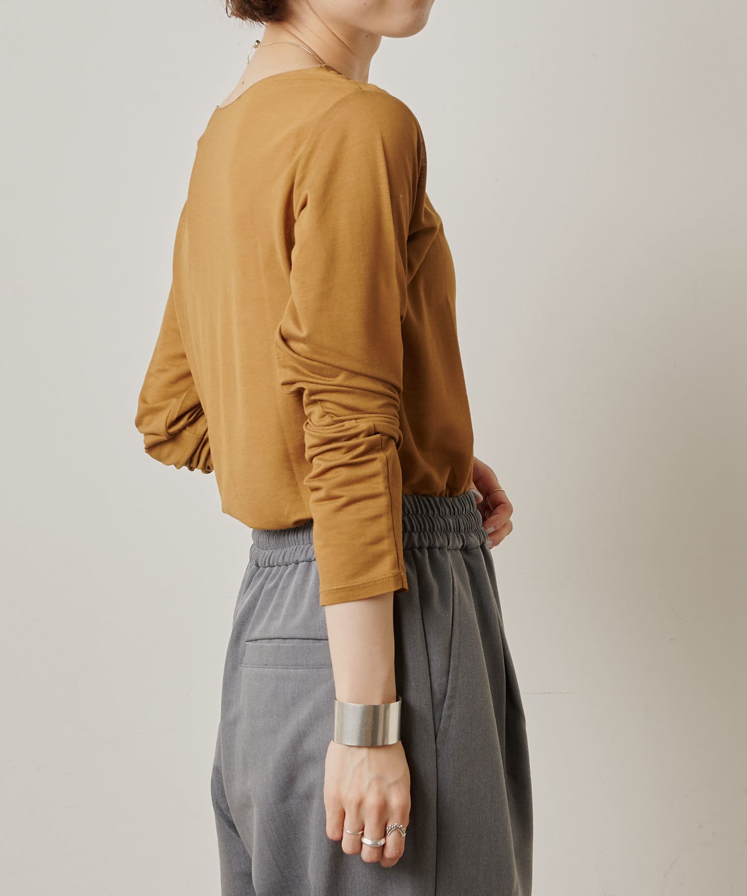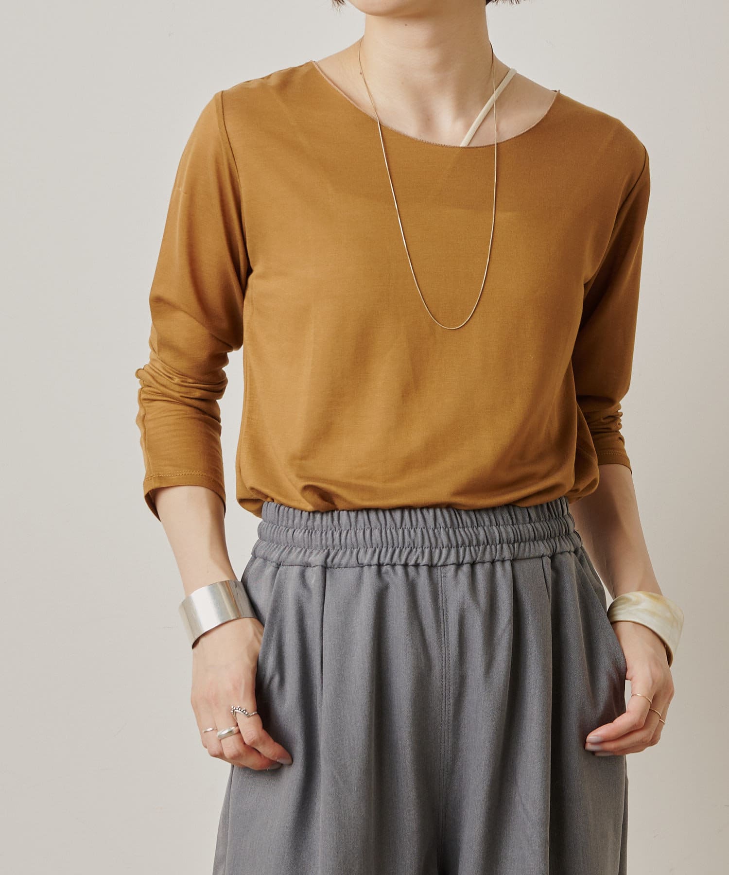 ・一枚ではもちろん、カーディガンやシャツなどのインナーに着用し、レイヤードを楽しんでいただけます。