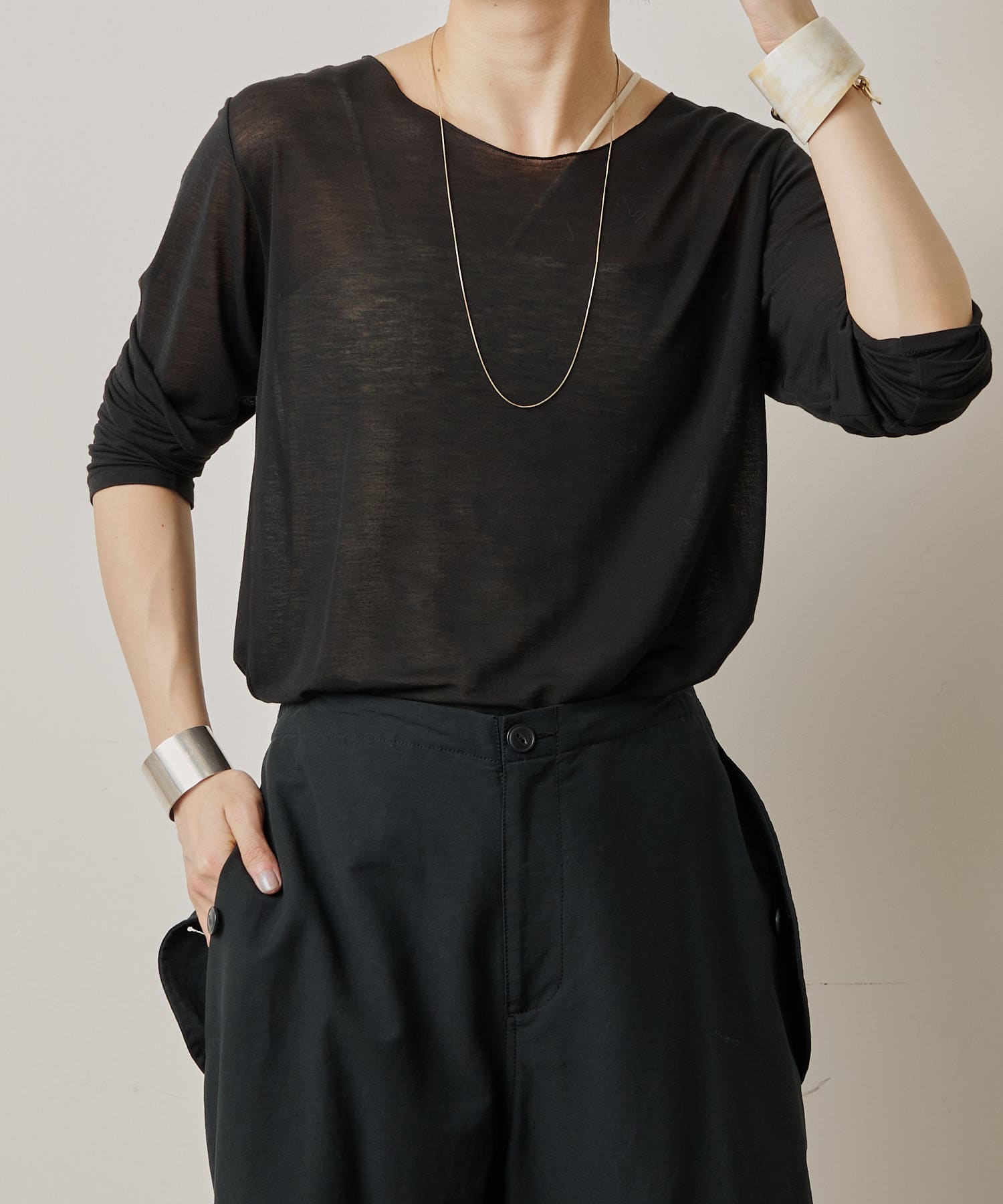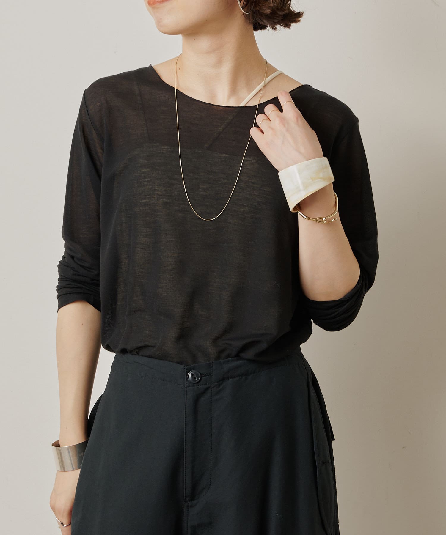 レイヤードに便利で着回し抜群のシアーロングプルオーバー