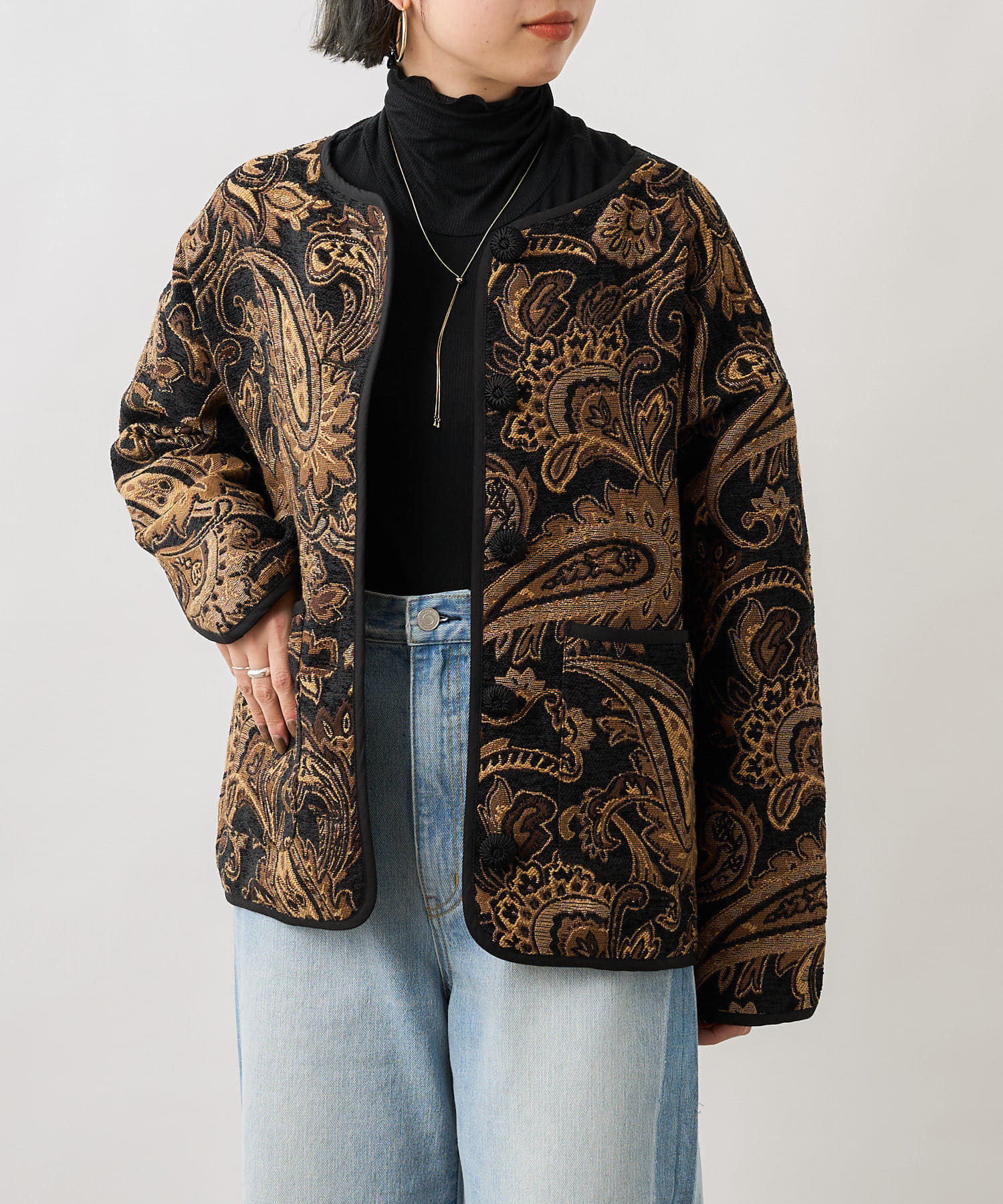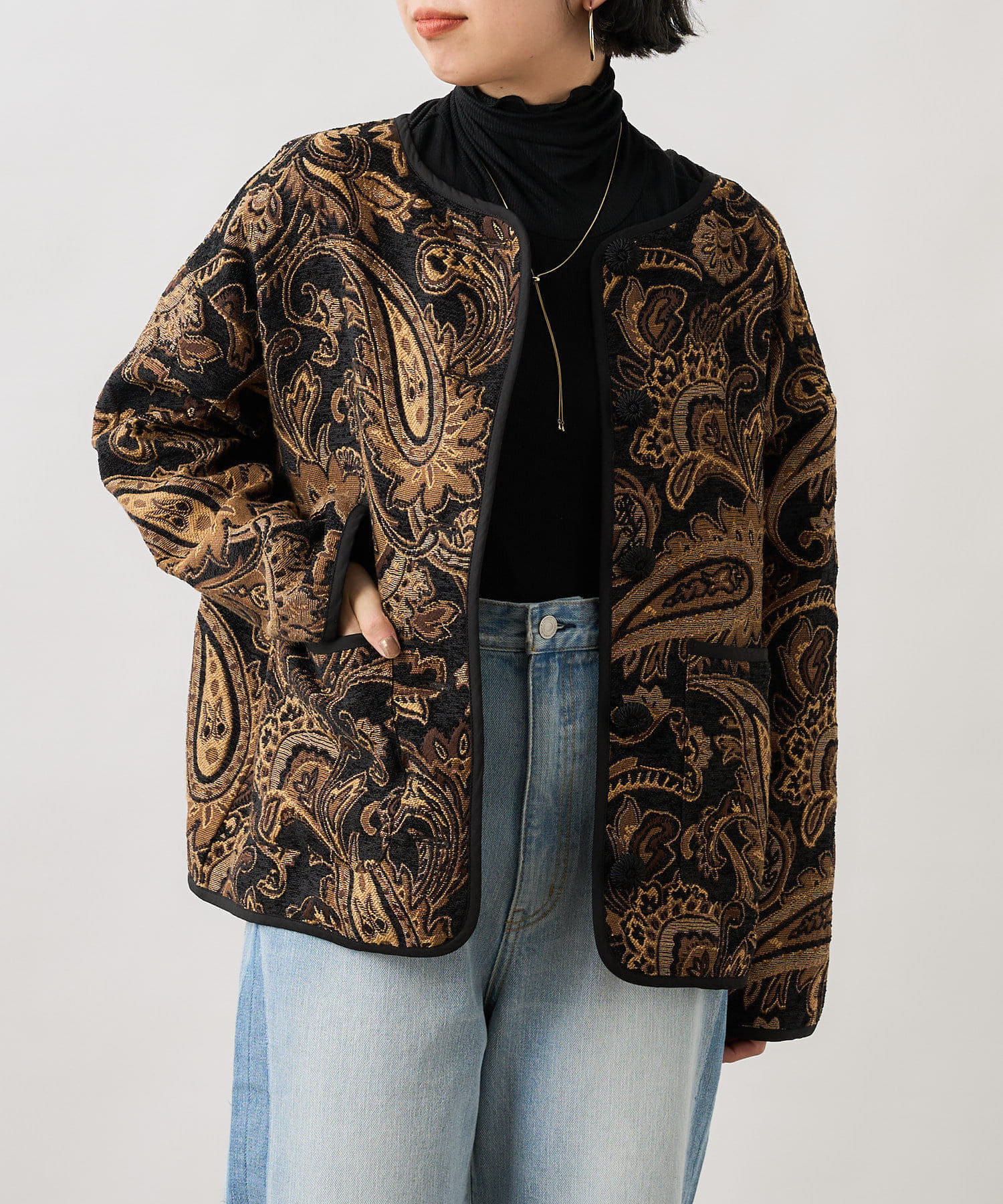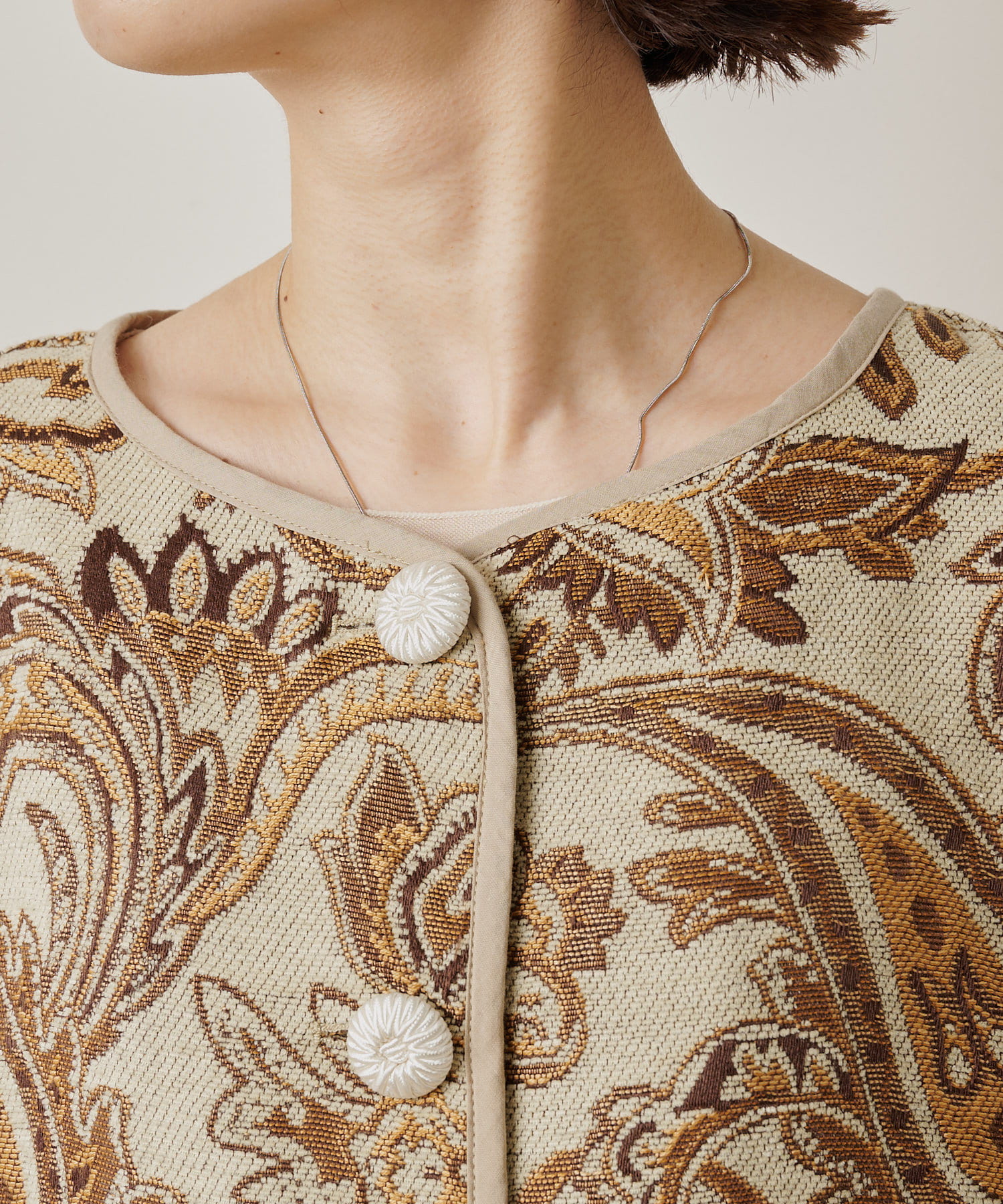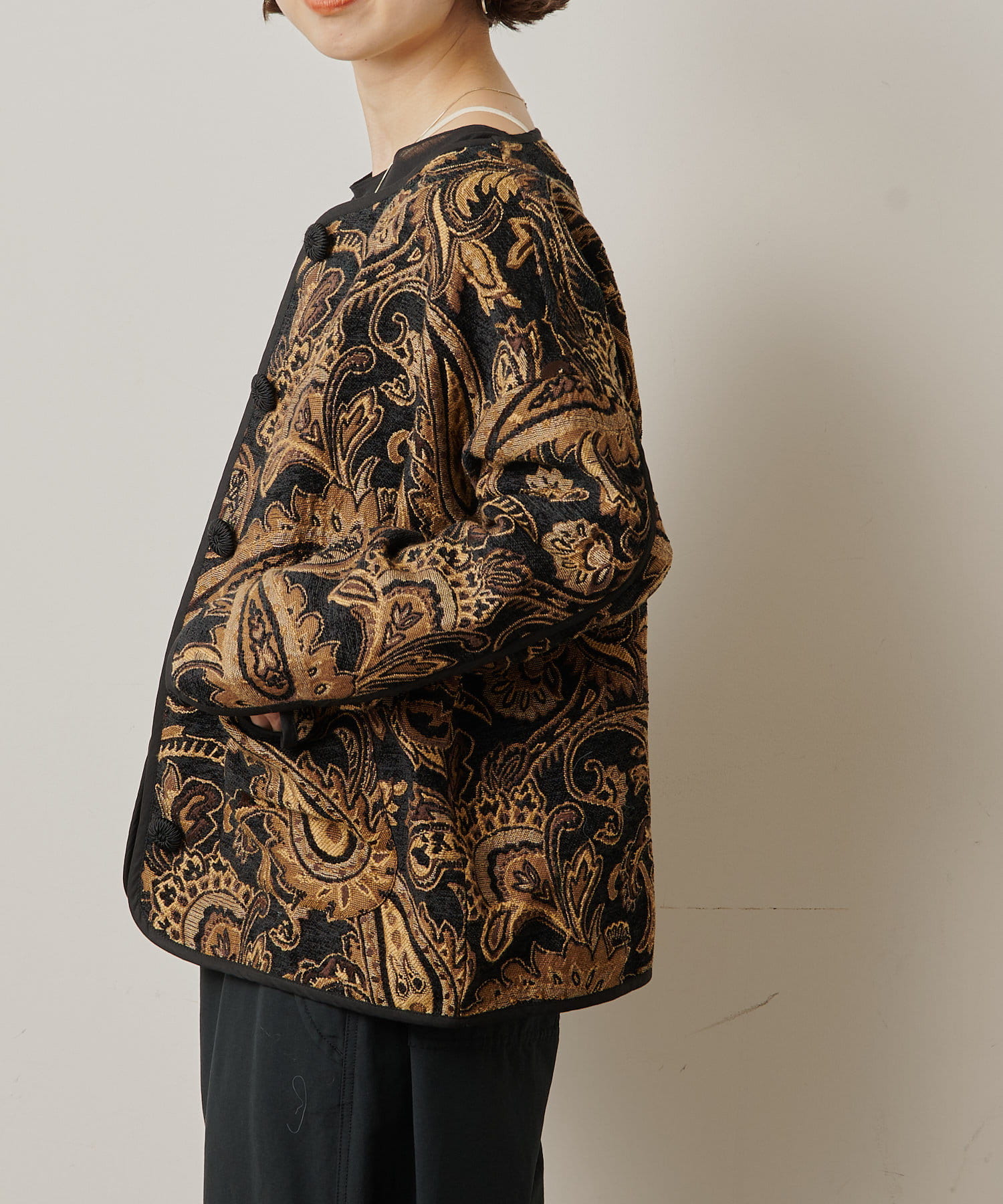 ・シックな絵画調のコブラン柄を、高見えするジャガード生地で仕上げたジャケット。