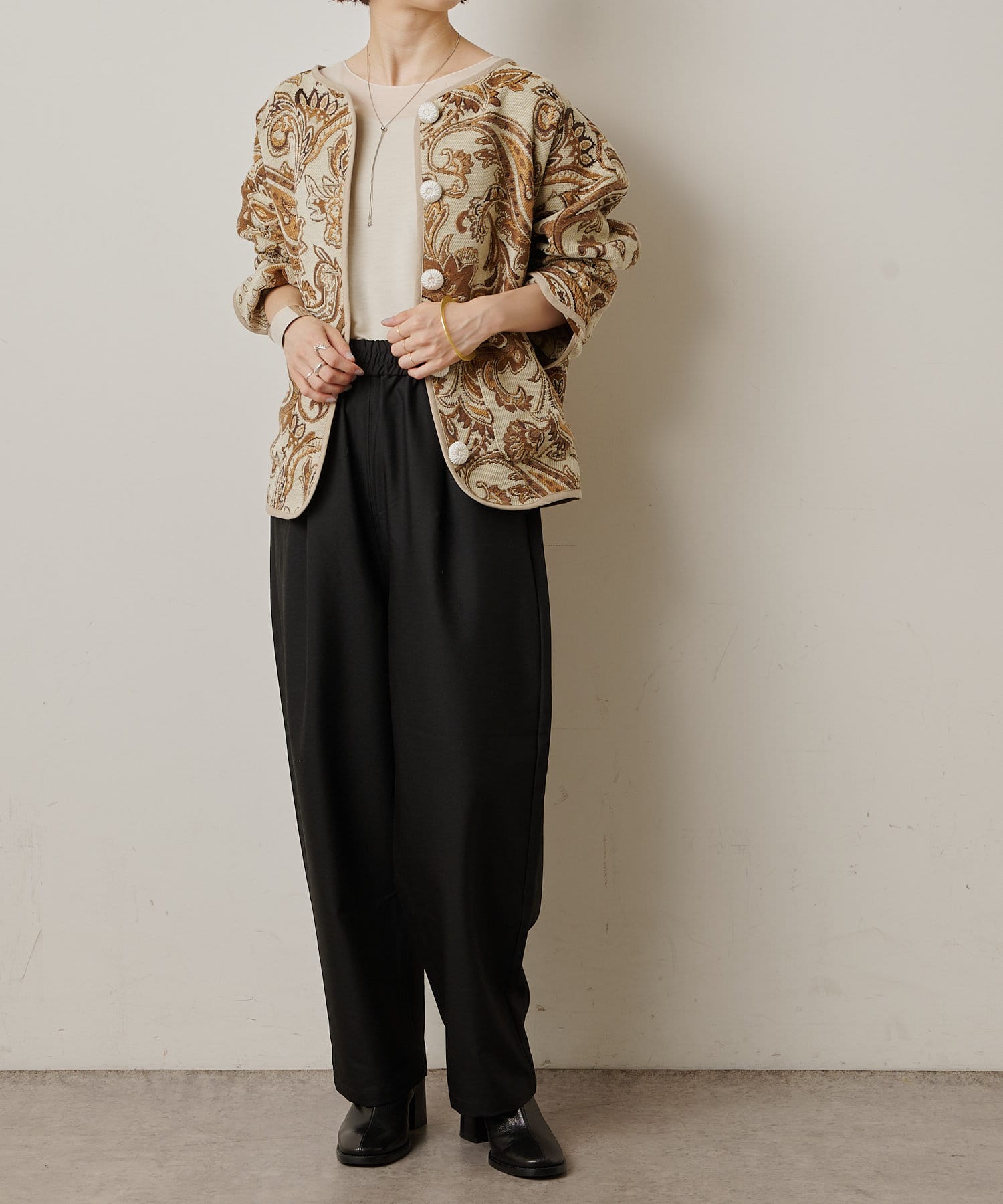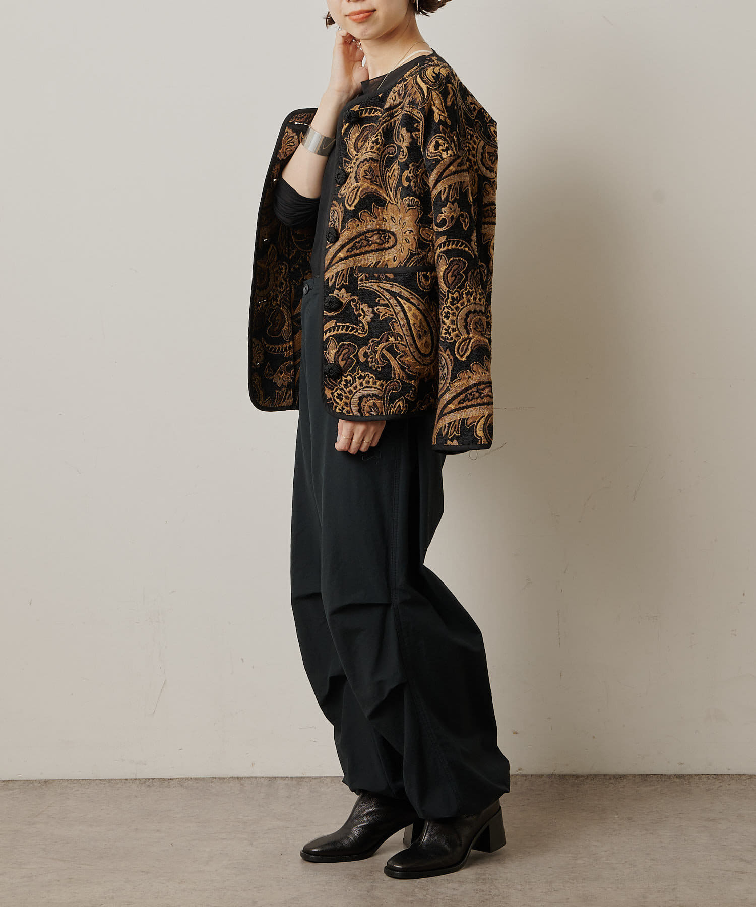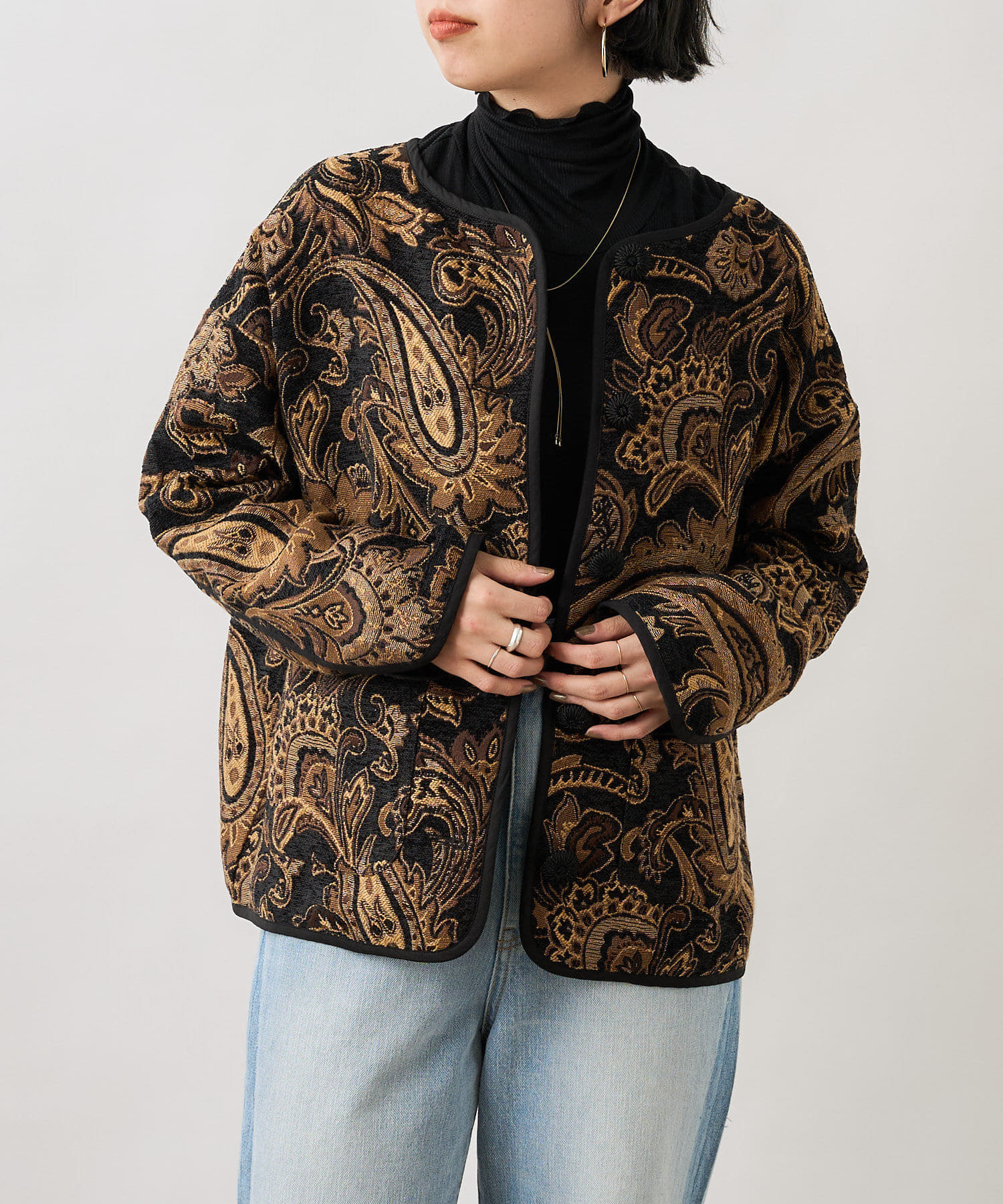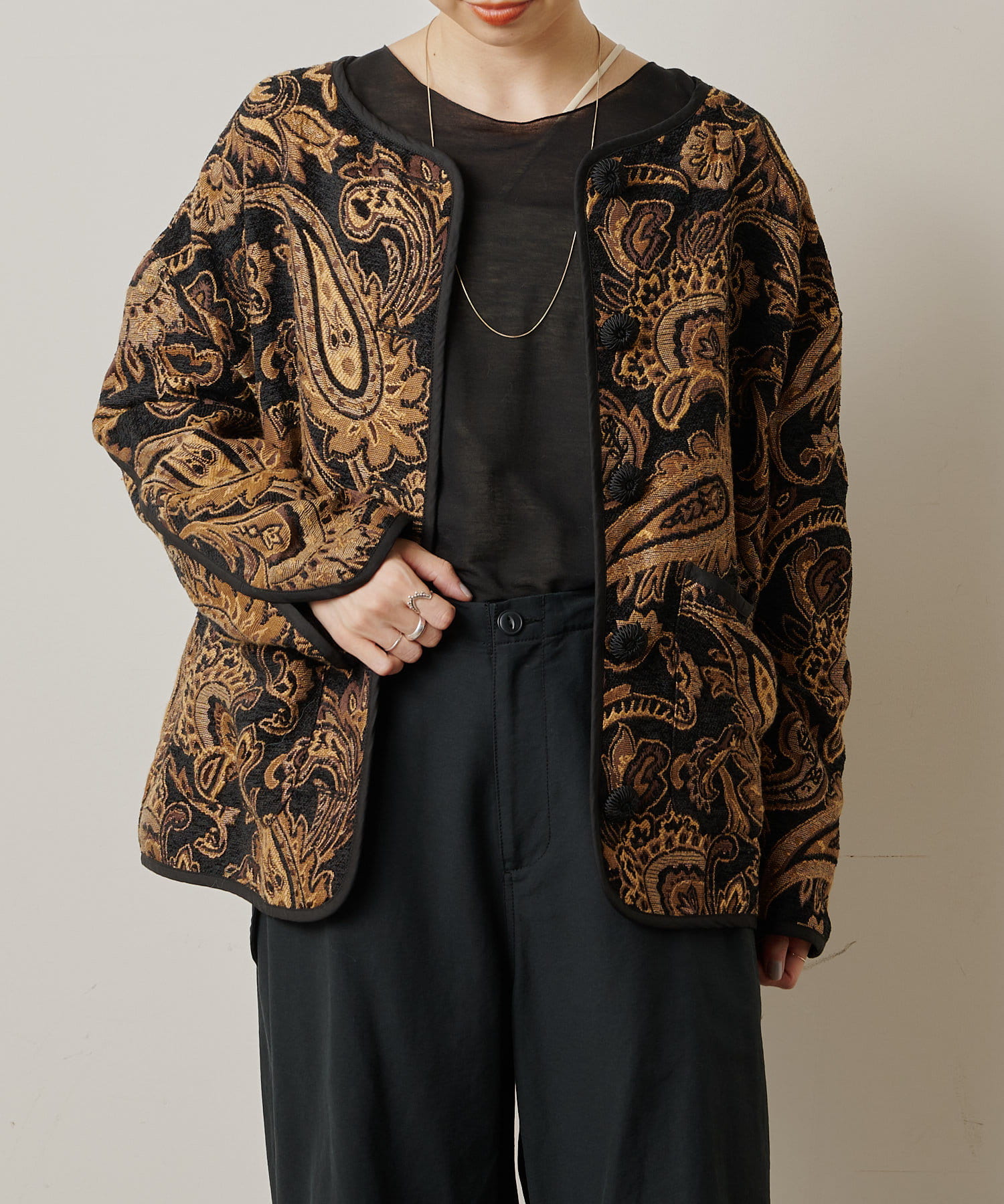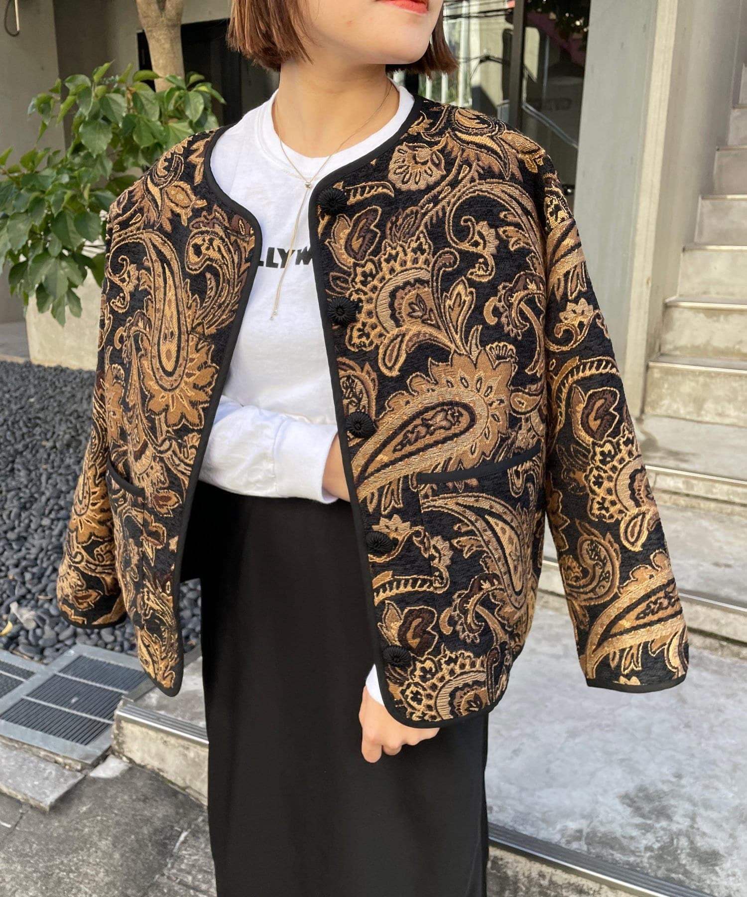 ・シックな絵画調のコブラン柄を、高見えするジャガード生地で仕上げたジャケット。