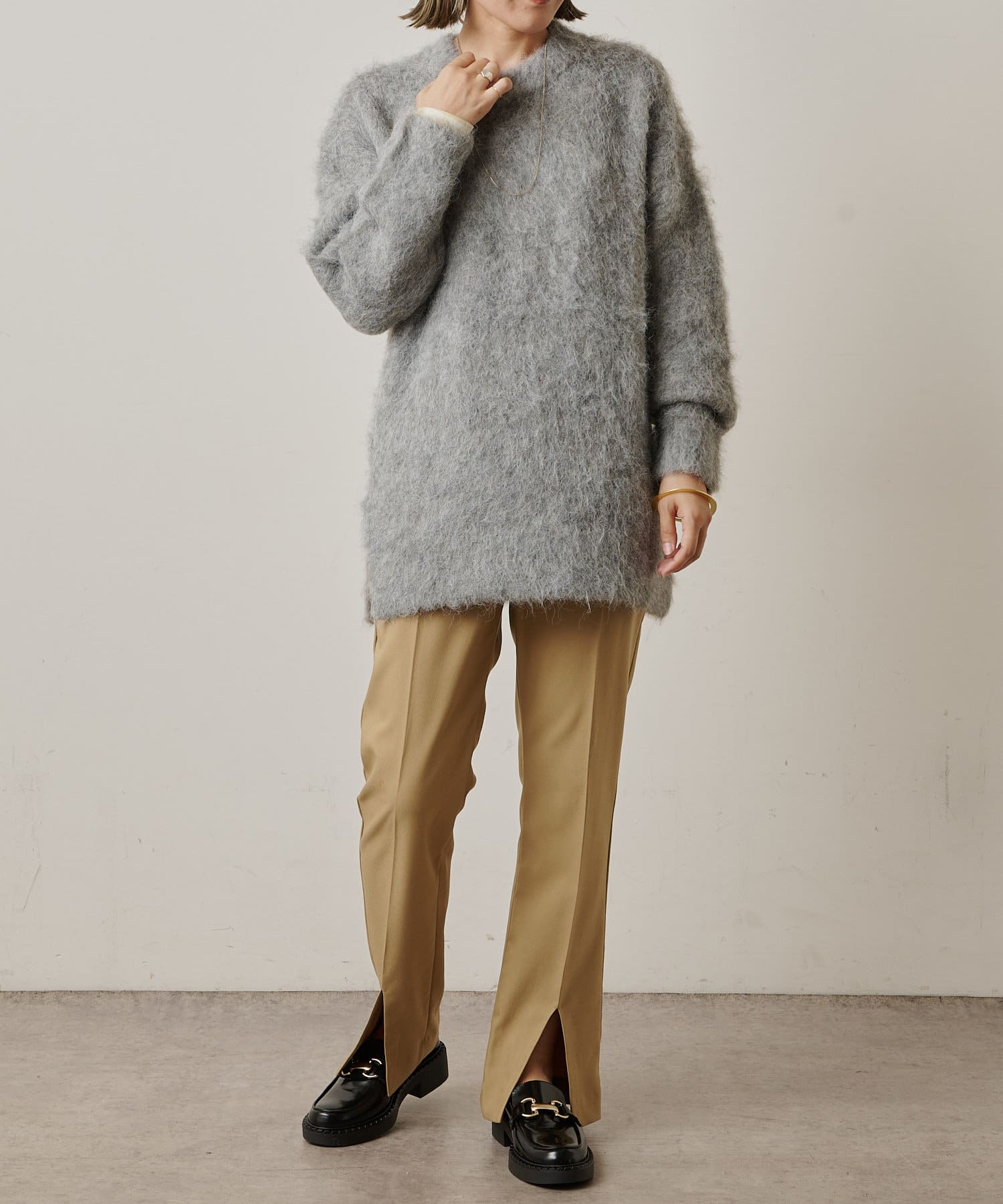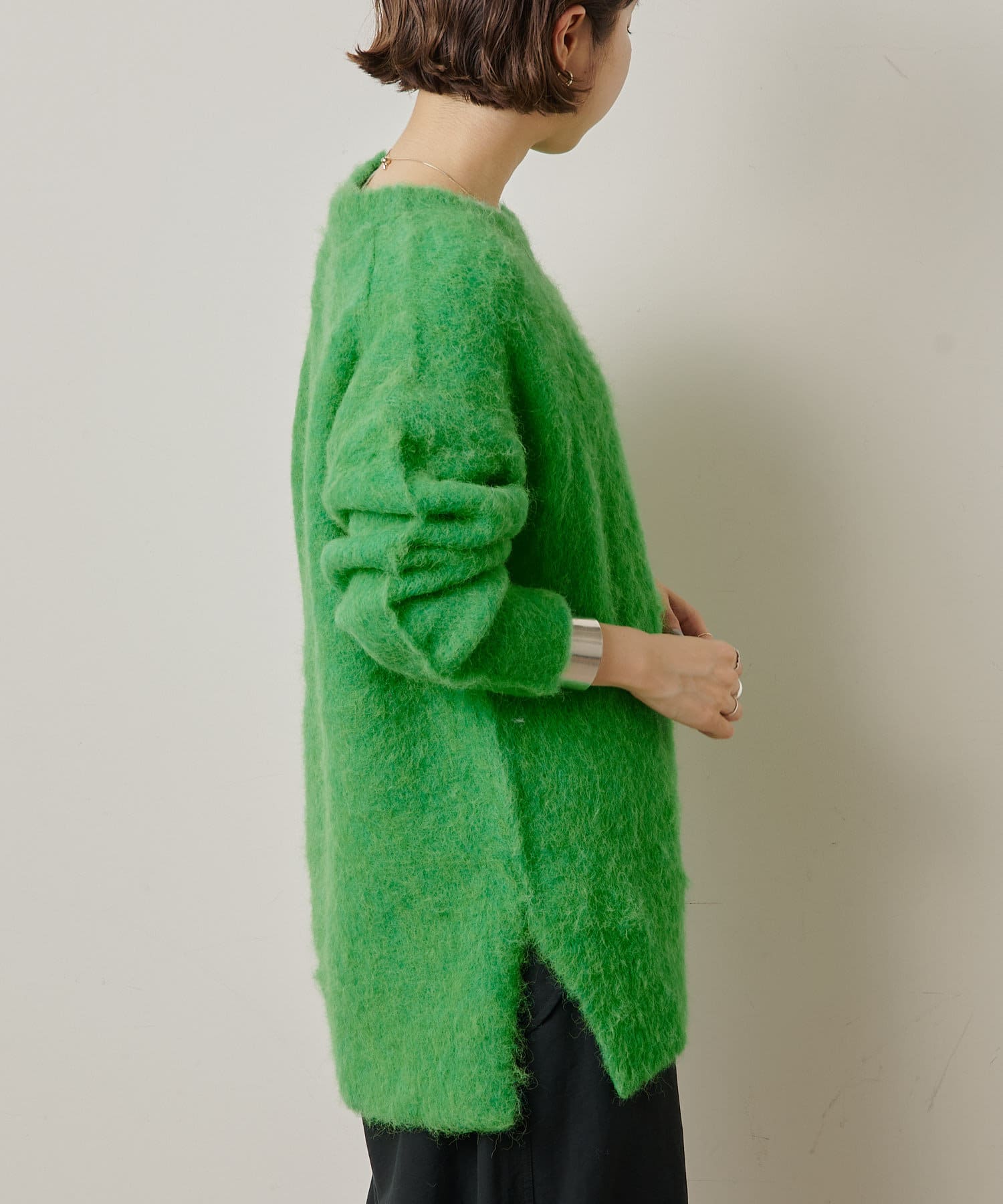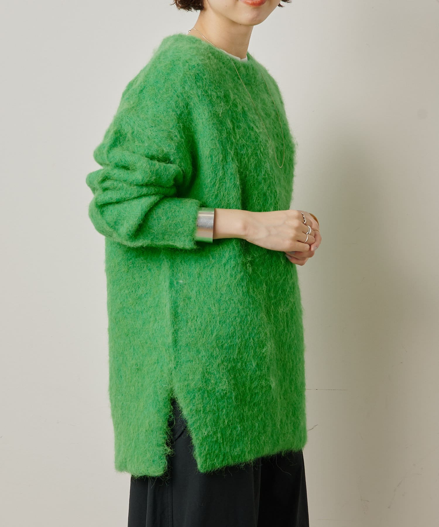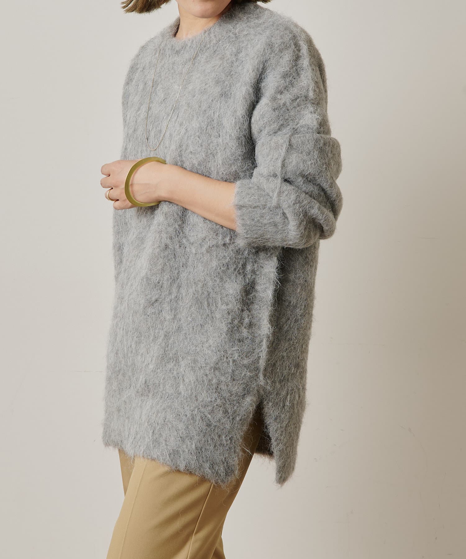 ・程よいボリュームと、表情が映えるヘアリーな風合いがニュアンス感ある雰囲気のニットです。