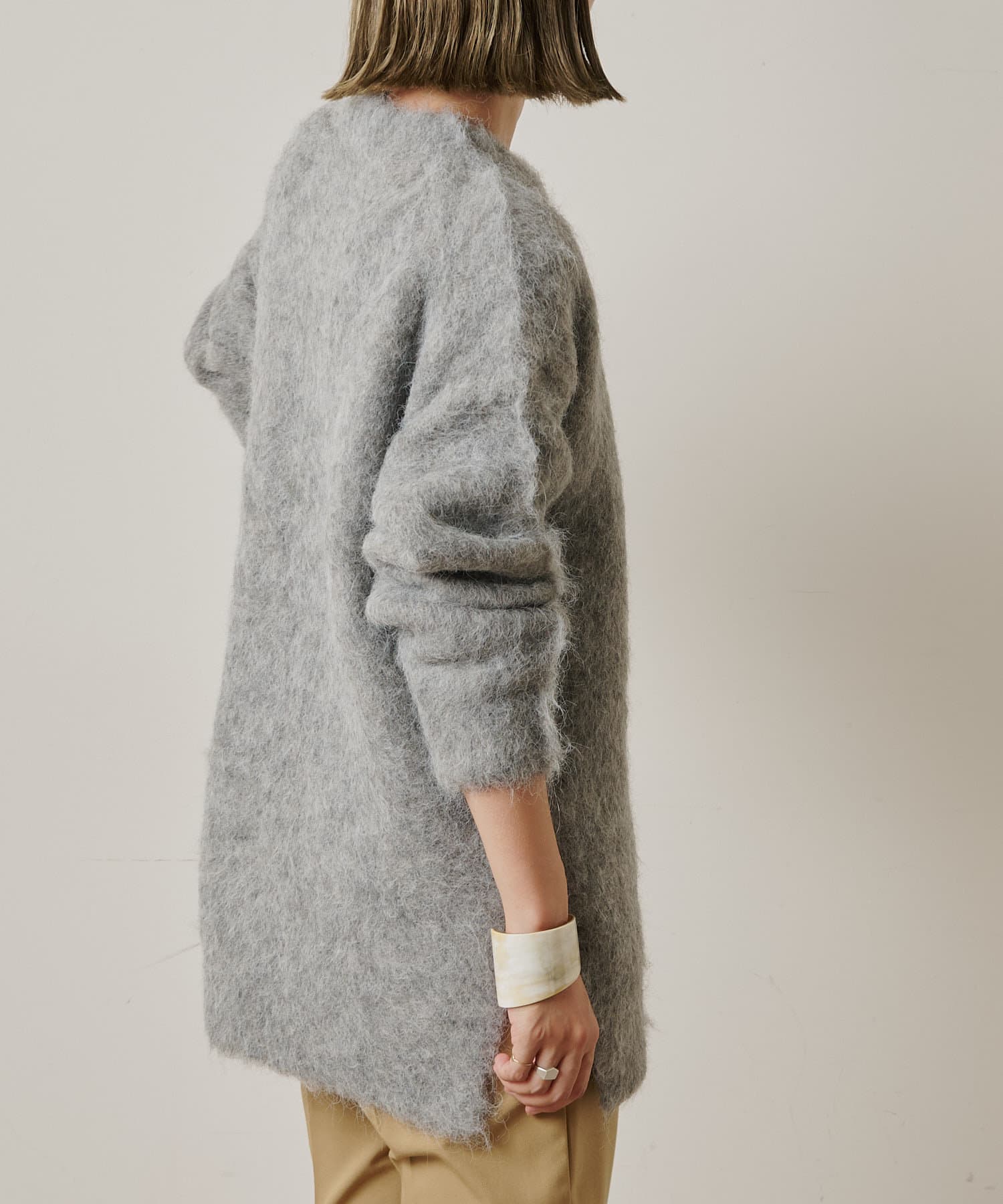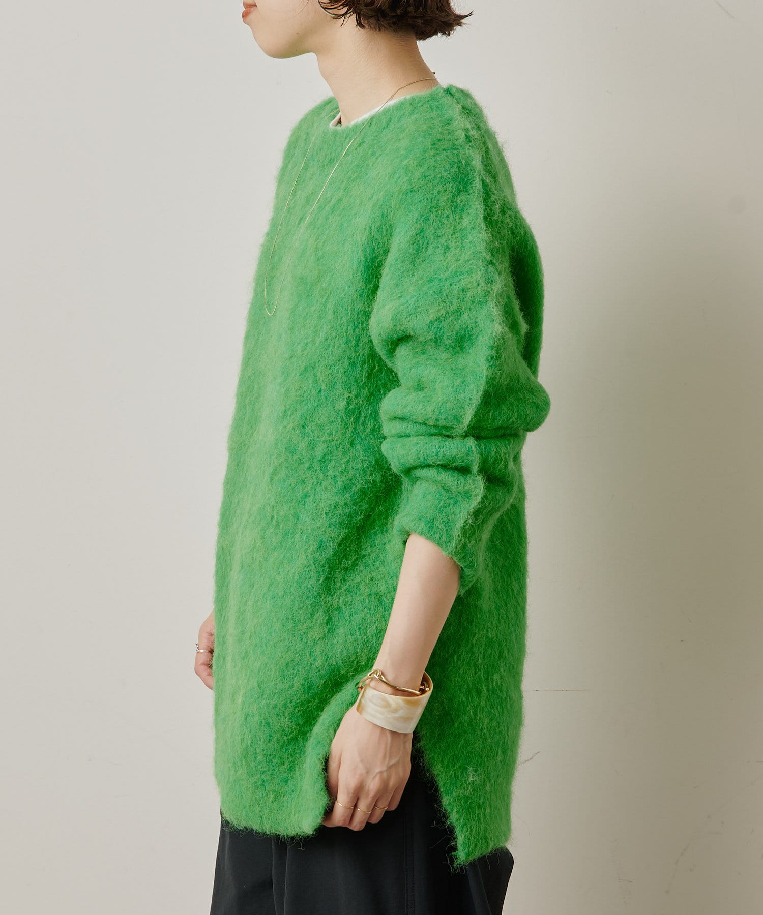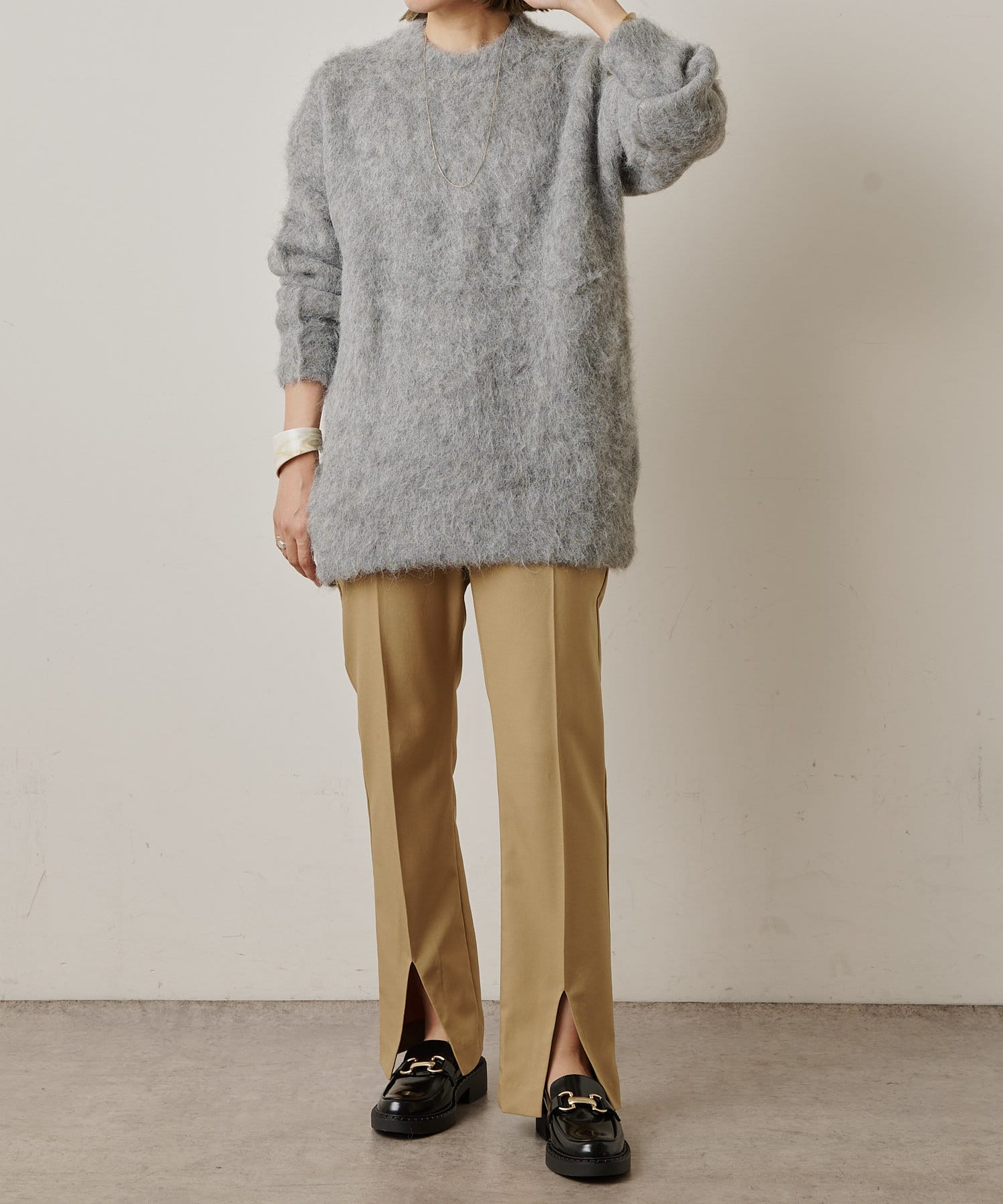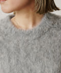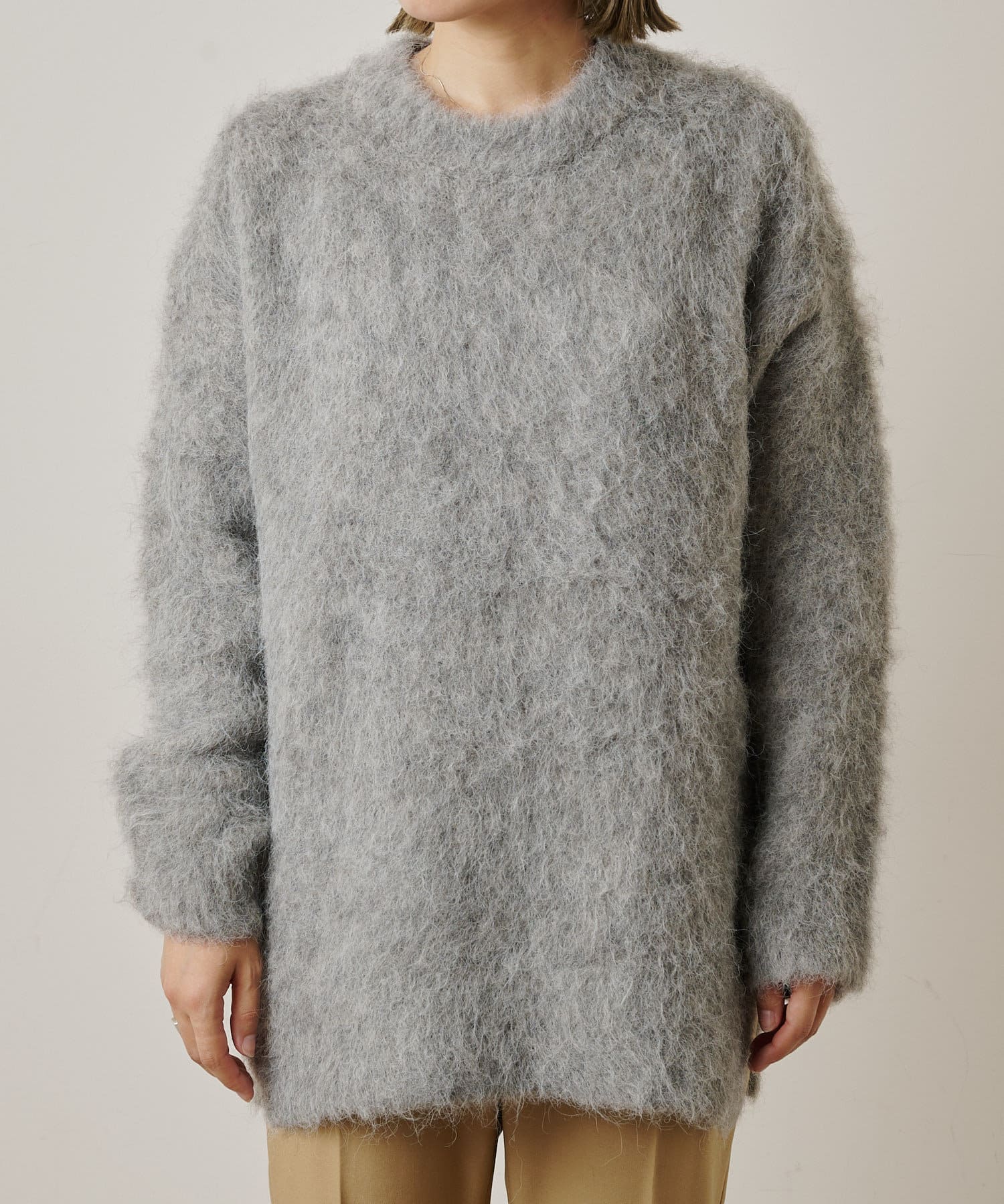 ・程よいボリュームと、表情が映えるヘアリーな風合いがニュアンス感ある雰囲気のニットです。