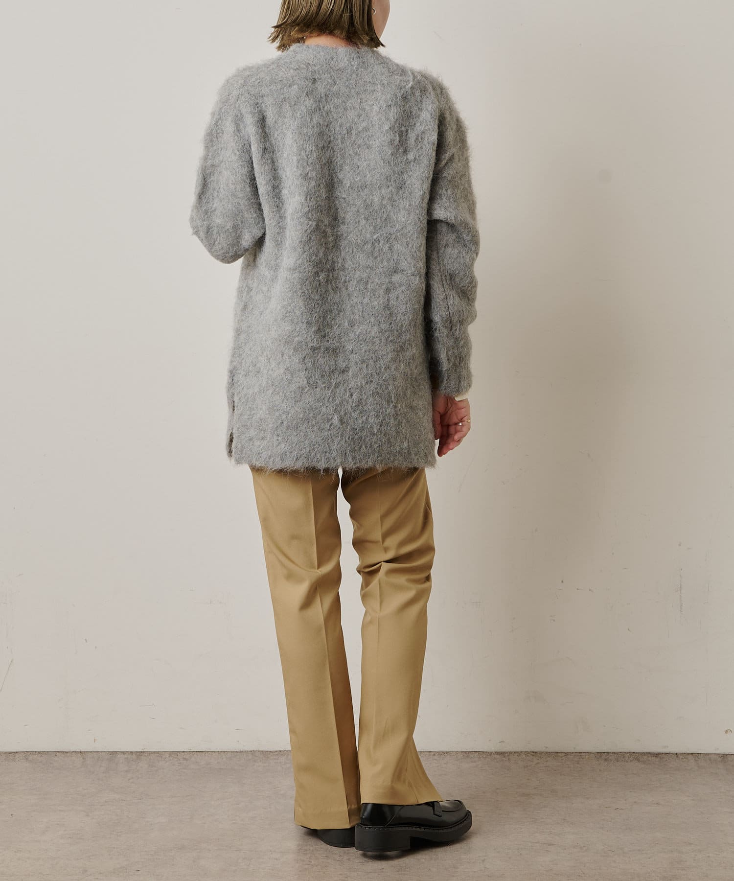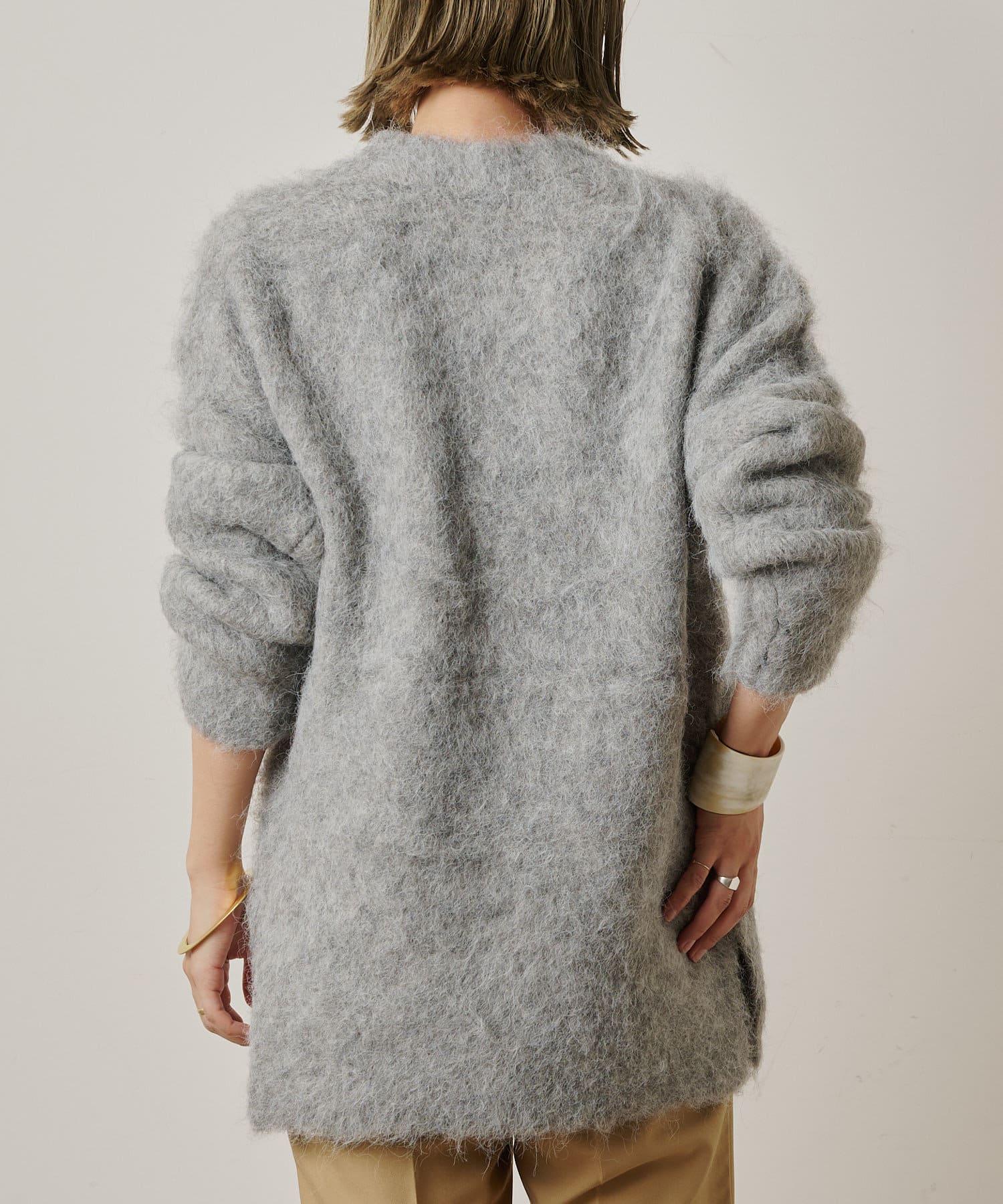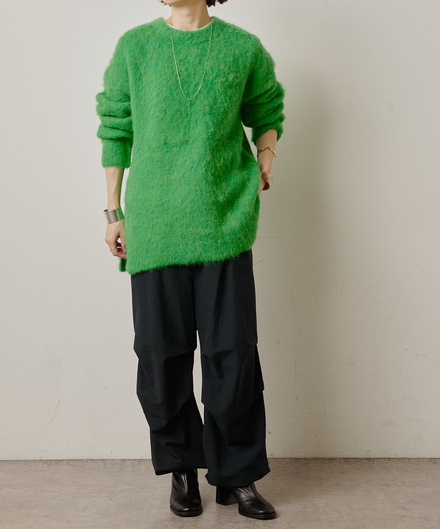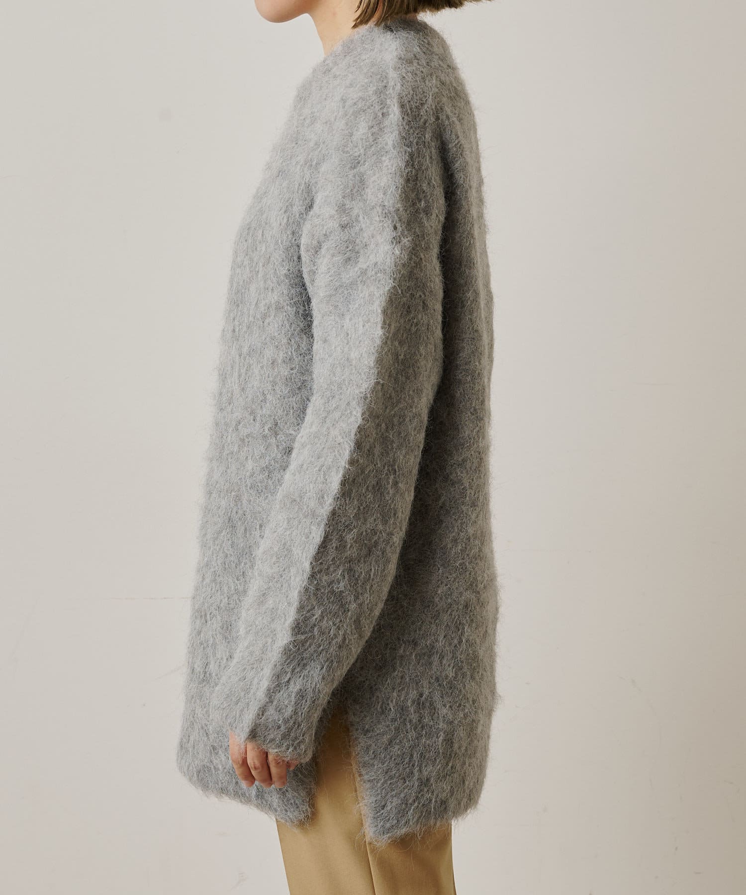 ・程よいボリュームと、表情が映えるヘアリーな風合いがニュアンス感ある雰囲気のニットです。
