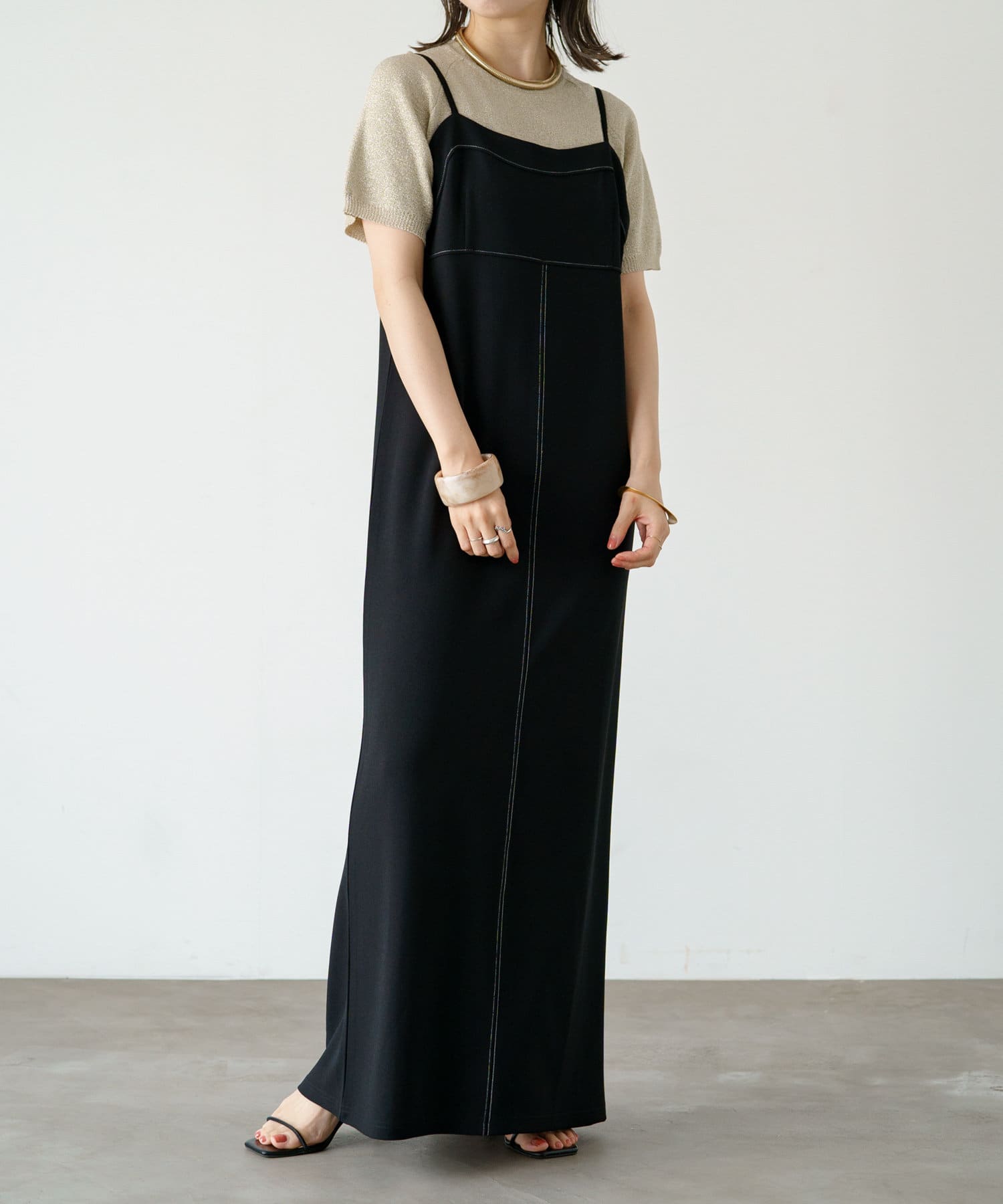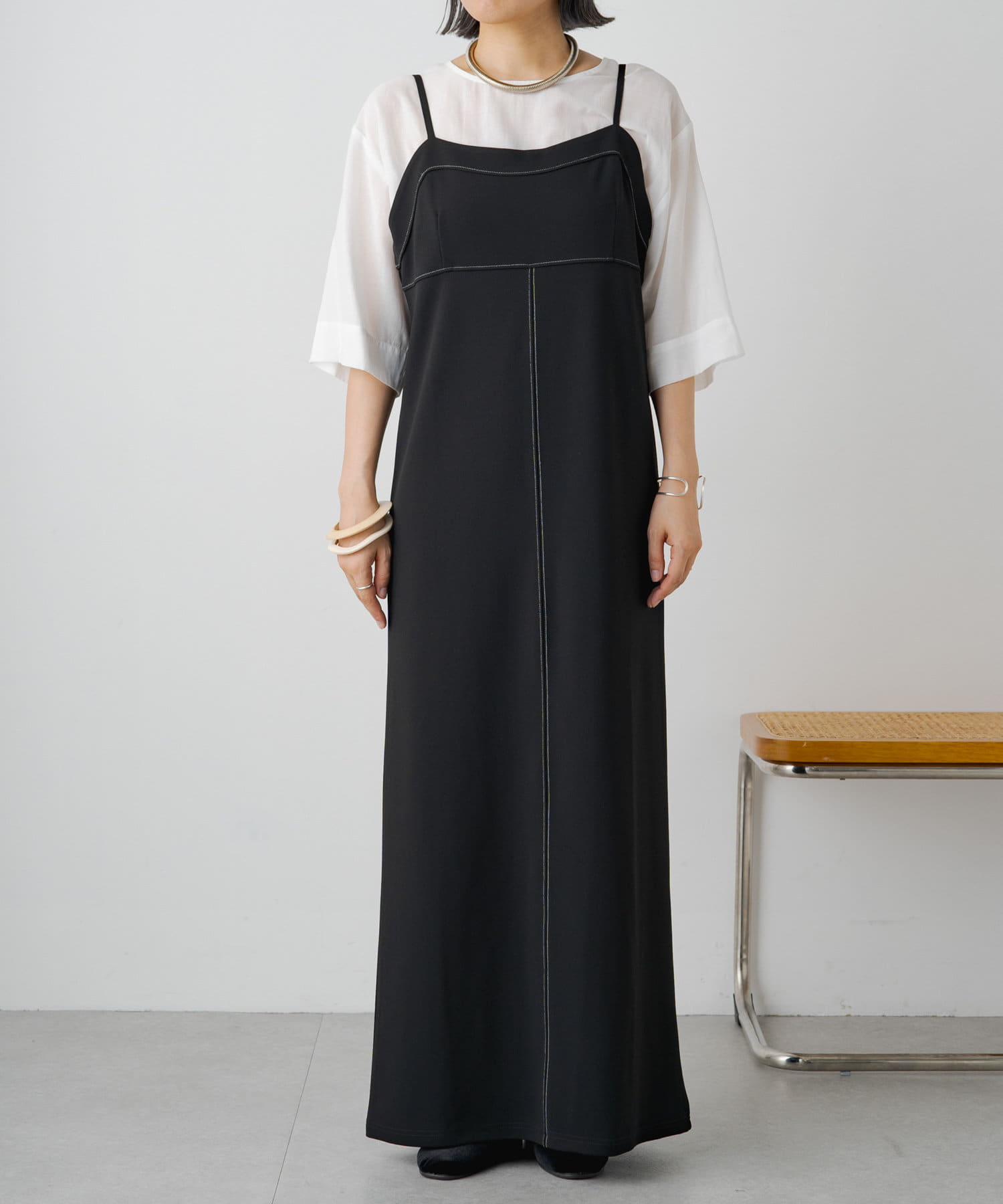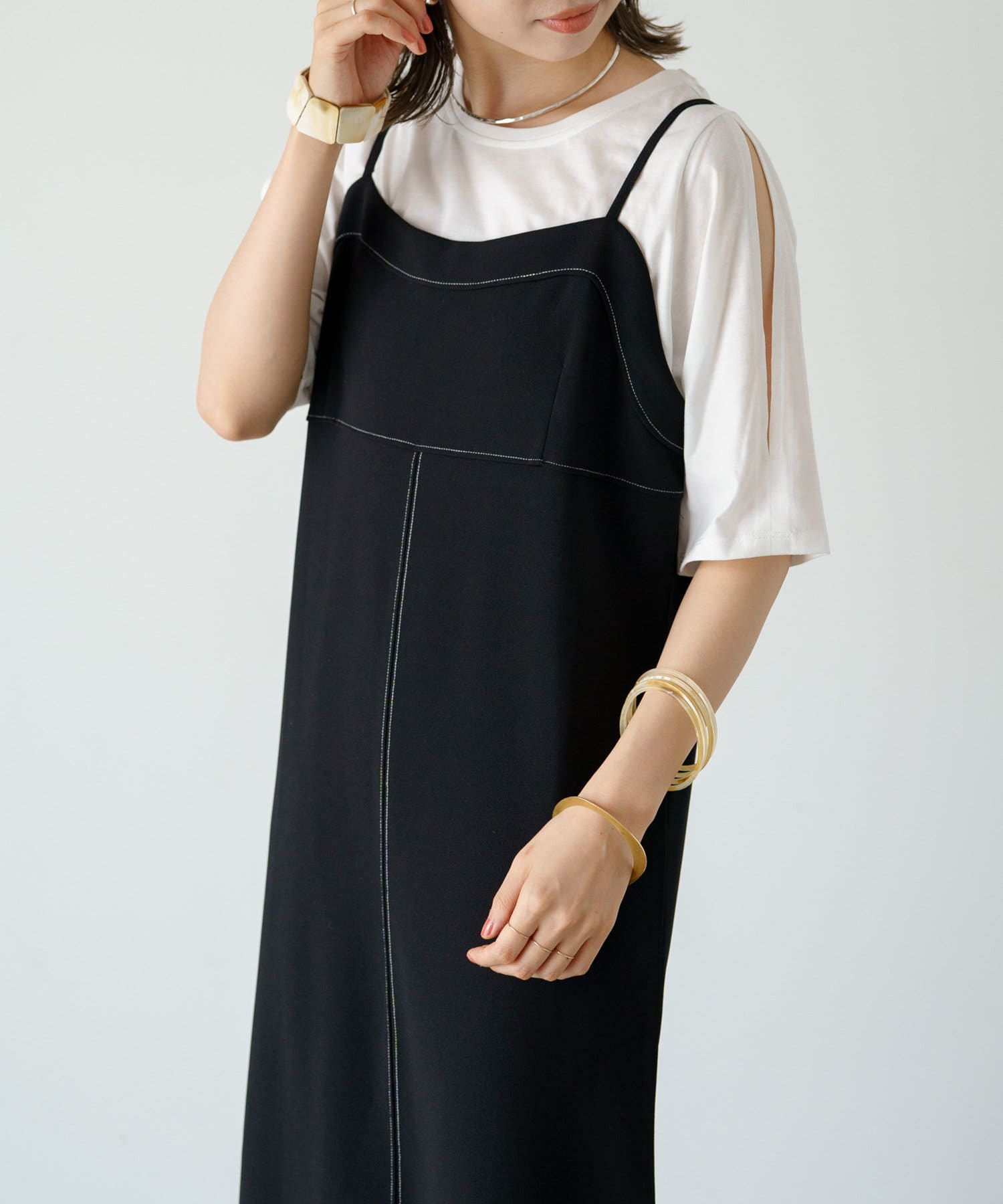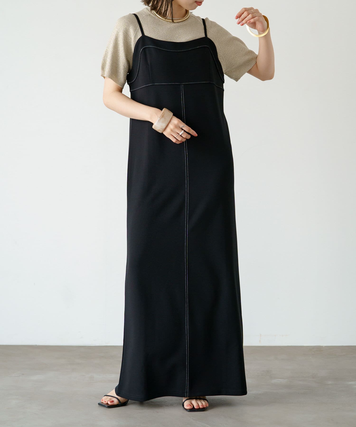 ステッチ使いがポイントの着回し抜群なキャミワンピース