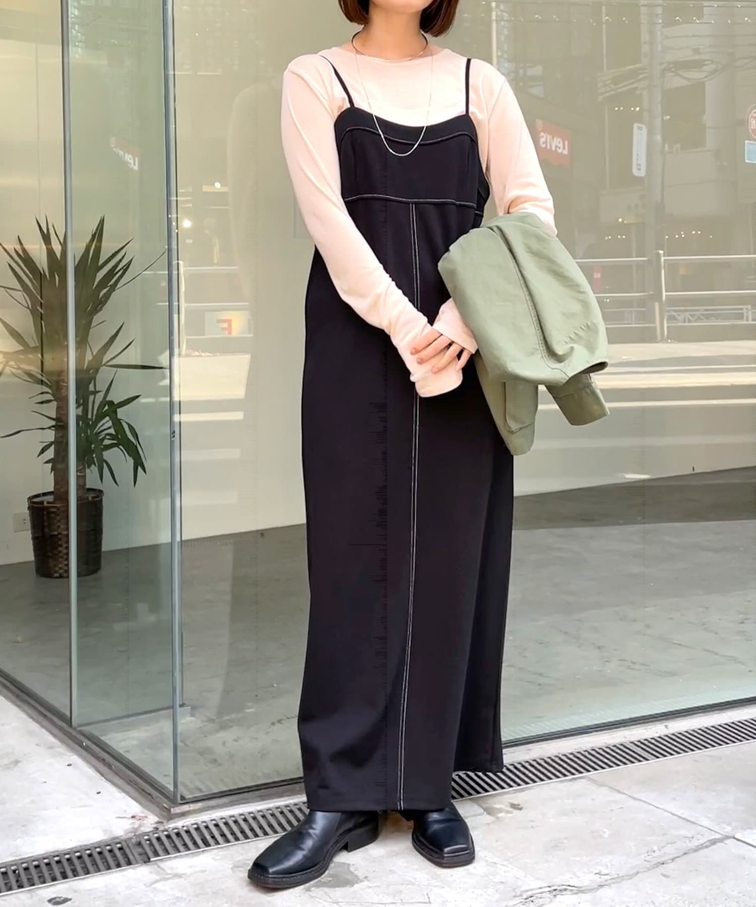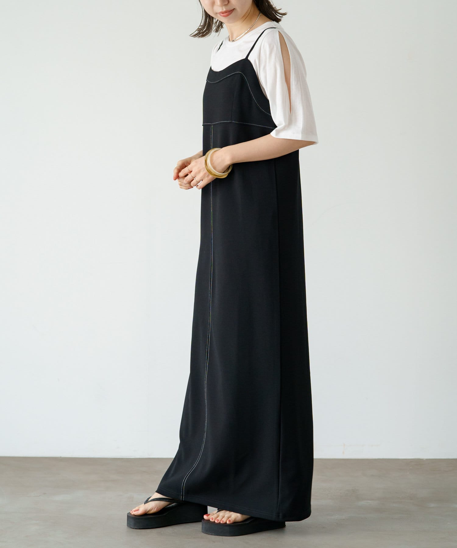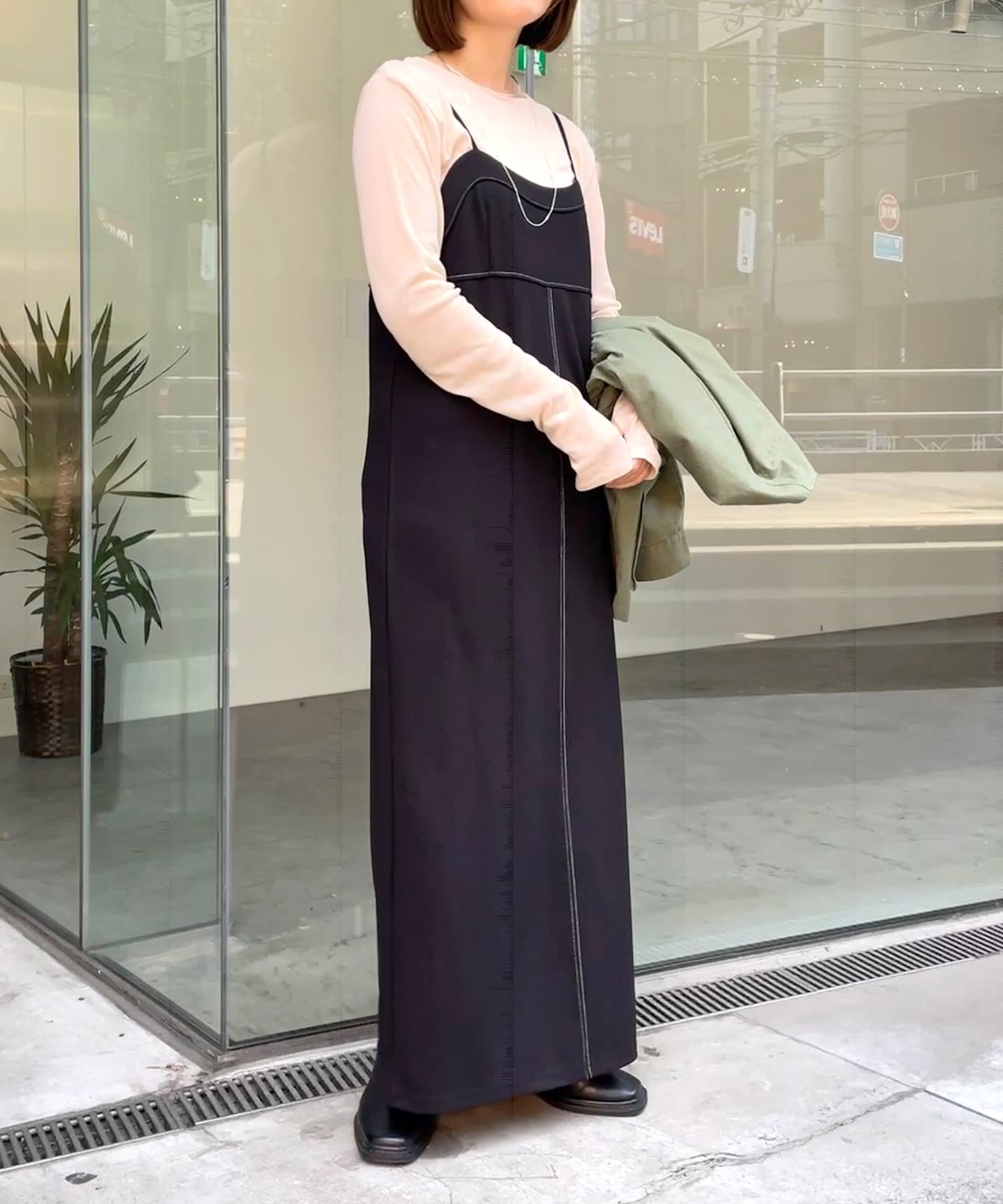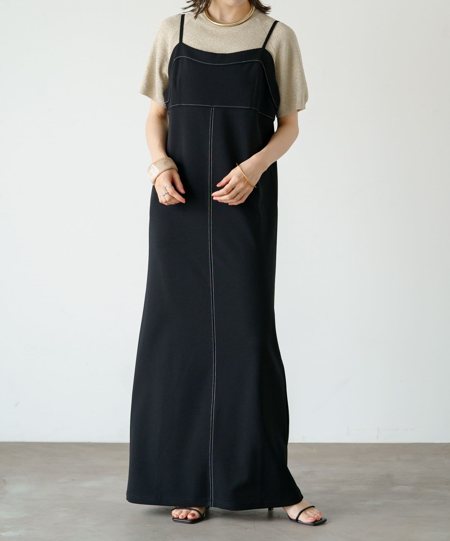 ステッチ使いがポイントの着回し抜群なキャミワンピース